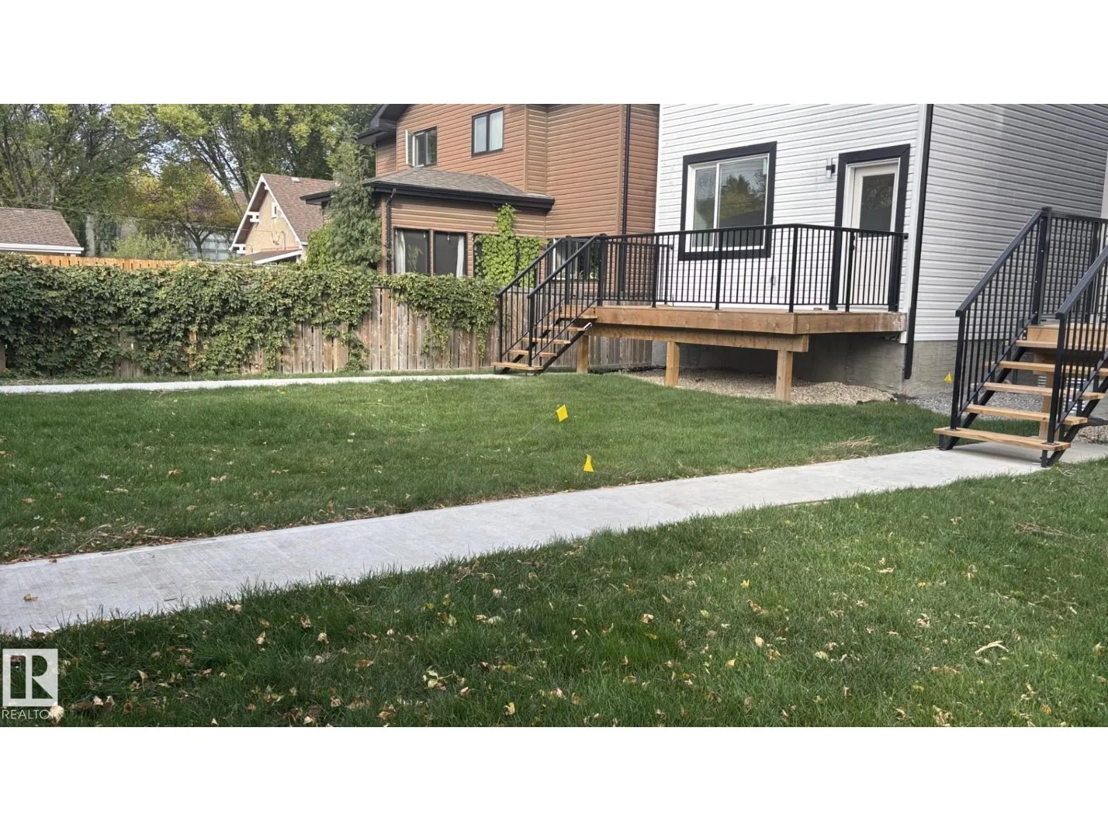 Stunning new inglewood infill with a legal 2-bedroom basement suite,this modern 2 story 1918 sqft, 5 bedroom,4-bath , Basement suite with 9' ceilings with own laundry.Minutes from downtown Edmonton.This upscale home offers an open-concept main floor layout with an elegant feature wall and fireplace.large chef's kitchen with quartz counter tops and waterfall island with 5 appliances. Side entry to basement is good for rental income.spacious dining area and bright family room facing the back deck.Upstairs you'll find three bedrooms with walk in closets,including a beautiful primary suite with sound system and spa-style en suite.Enjoy a large yard with fully landscaped/mud room off the deck and double garage with alley access. (id:27476)