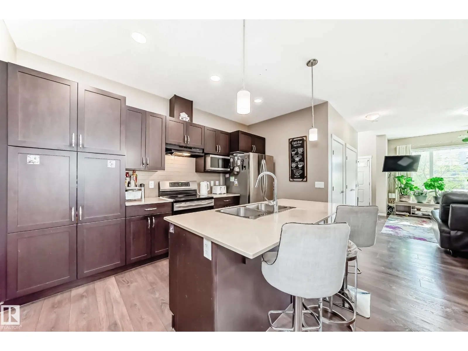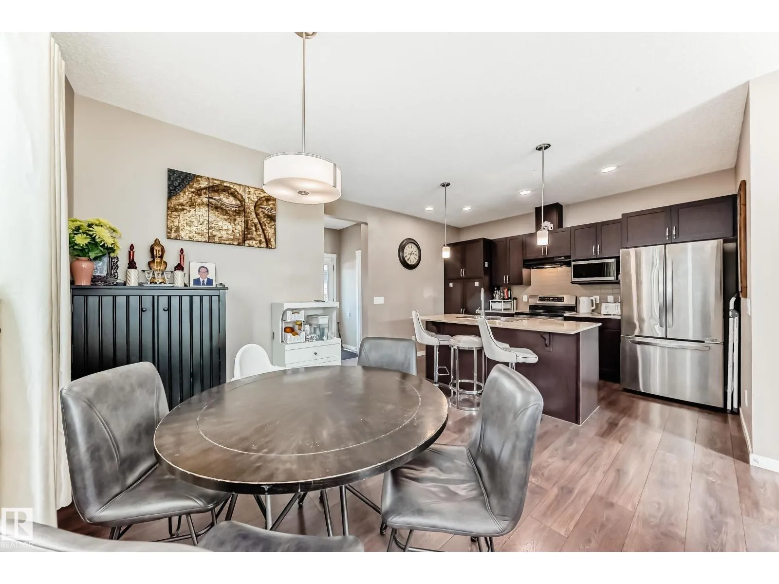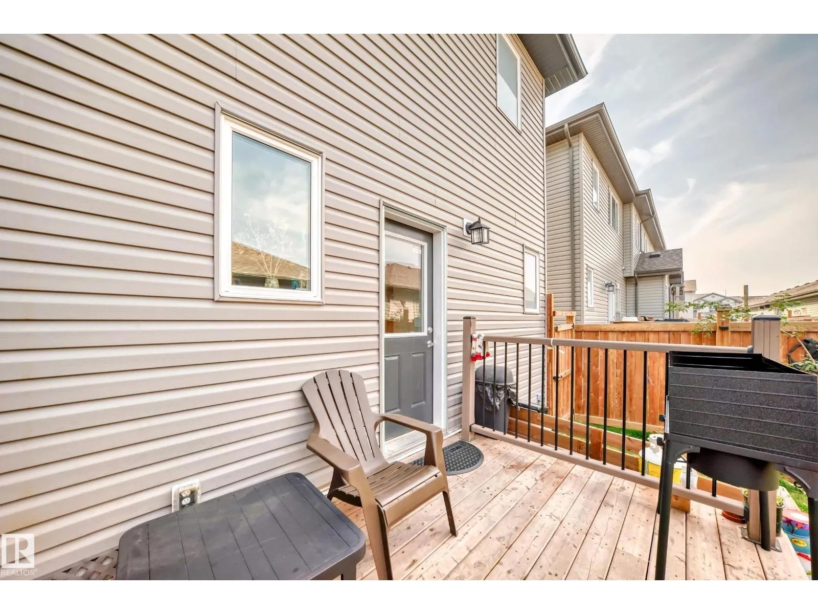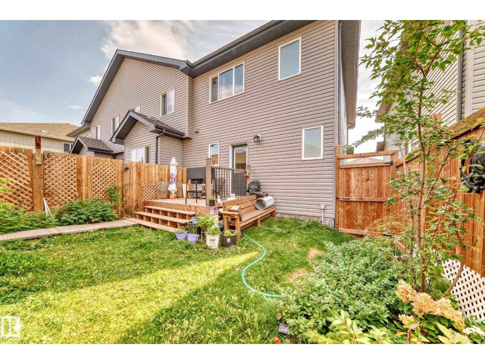 Welcome to this Stunning END UNIT, 2-storey Sterling Homes Situated in the desirable community of Tamarack! Features 1439 sqft of 4 bedrooms, 3.5 bathrooms & a double detached garage. Main floor offers open concept layout, living room w 9 ft ceilings/bright windows/upgrade laminate floorings throughout. a chef-inspired kitchen boasts modern cabinetries/backsplash tiles/pantry/quartz countertops/oversized c kitchen island w eating bar, adjacent to sizable dining area. Nook leads to back entrance to deck, prof landscaped & fenced yard, your private oasis for relaxation! Convenient main floor 1/2 bath & laundry rm. Upper floor has 3 generous bedrooms all w bright windows. King-sized master bedroom offers walk-in closet & a 4 pc en-suite bathroom, PLUS second 4 piece bathroom. Basement c/w vinyl plank flooring family room/4th bedroom/a 3pc bathroom & utility room. Back land to double car garage. Easy access bus route/school/playground/shopping & all amenities. Perfect for live in or investment! Don't miss! (id:27476)