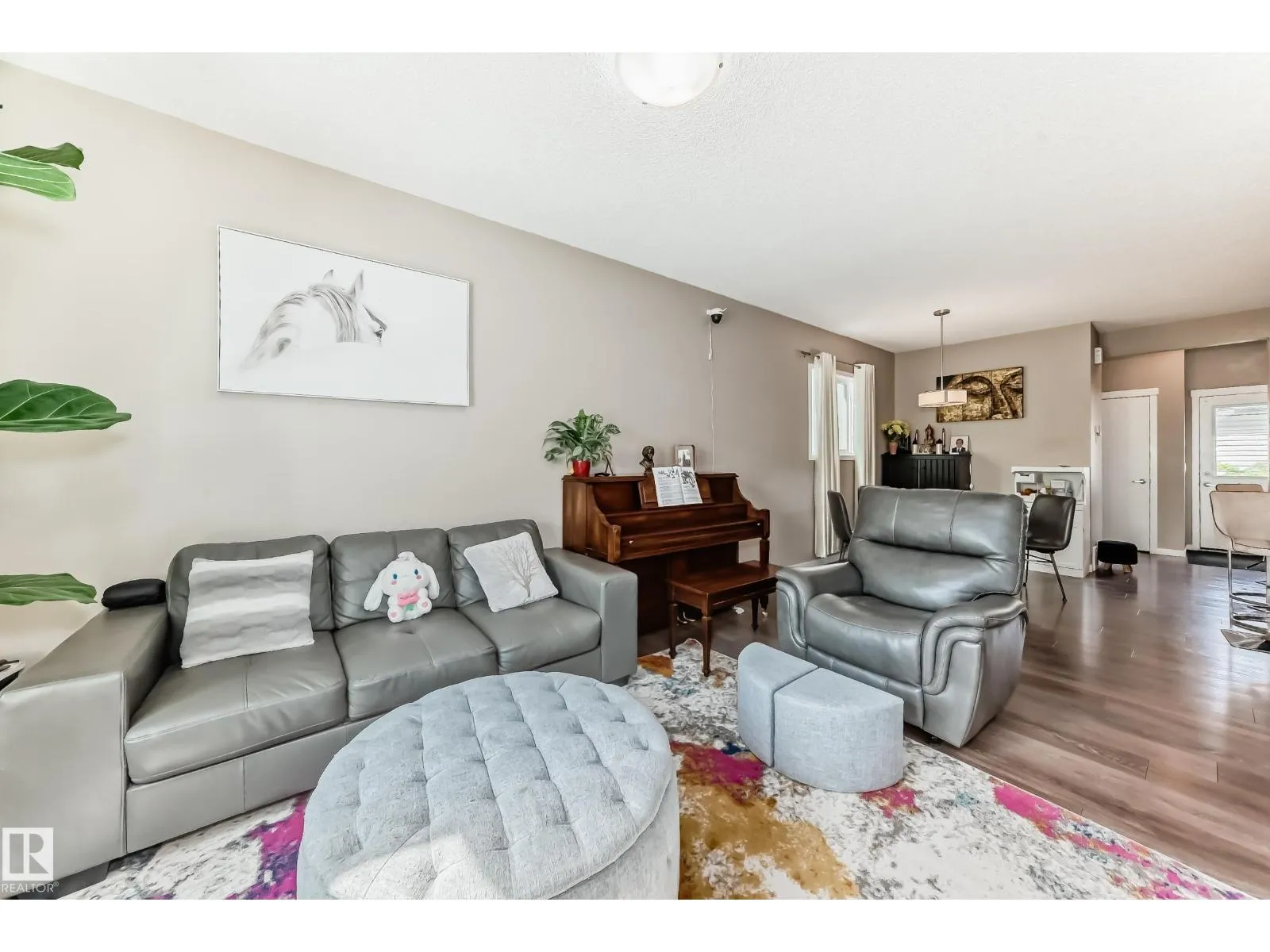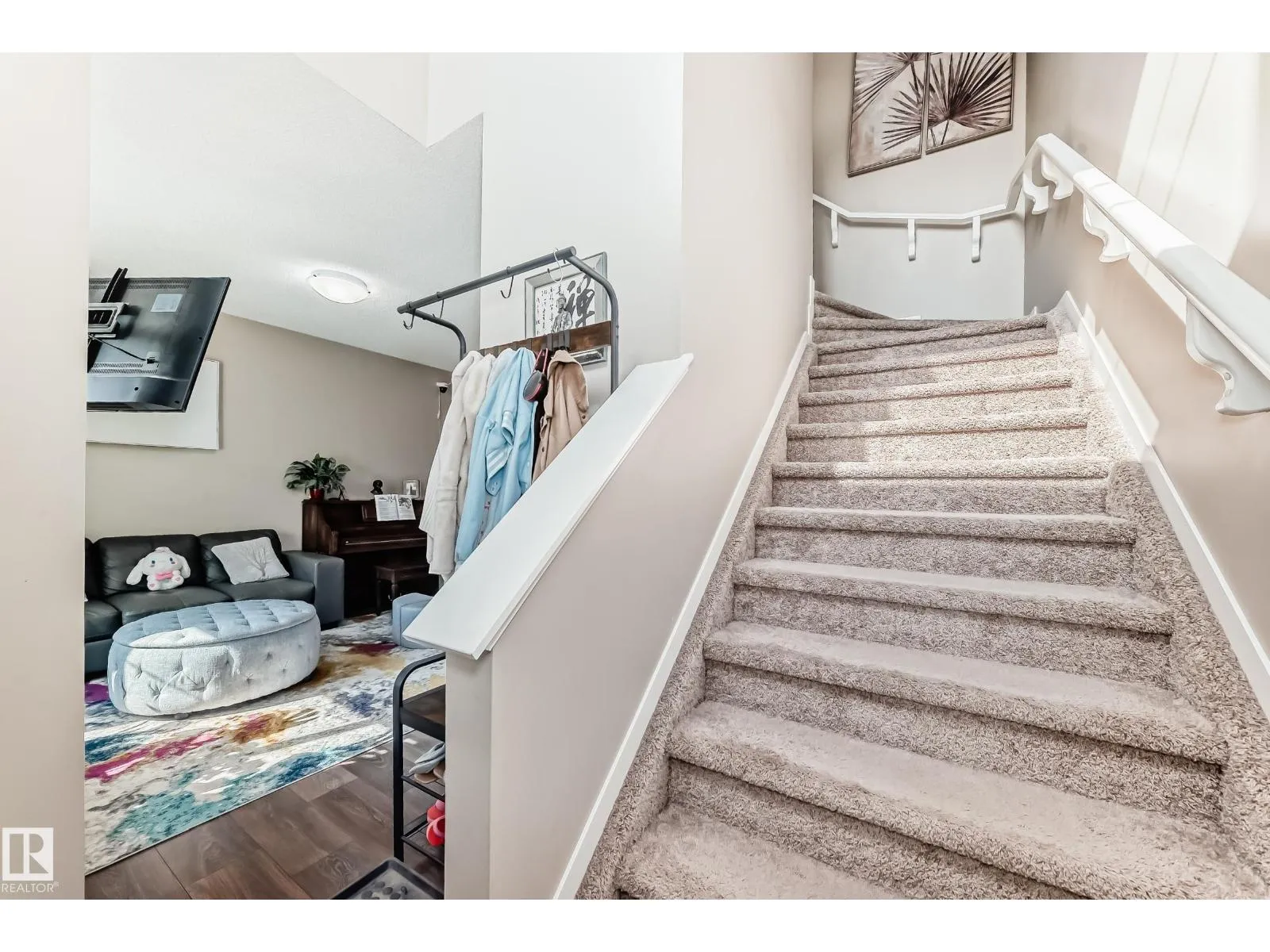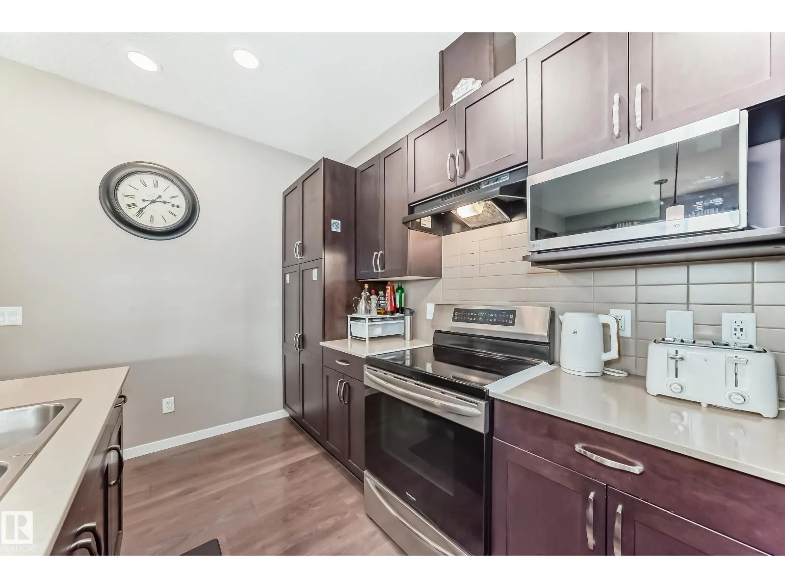 Welcome to this Stunning END UNIT, 2-storey Sterling Homes Situated in the desirable community of Tamarack! Features 1439 sqft of 4 bedrooms, 3.5 bathrooms & a double detached garage. Main floor offers open concept layout, living room w 9 ft ceilings/bright windows/upgrade laminate floorings throughout. a chef-inspired kitchen boasts modern cabinetries/backsplash tiles/pantry/quartz countertops/oversized c kitchen island w eating bar, adjacent to sizable dining area. Nook leads to back entrance to deck, prof landscaped & fenced yard, your private oasis for relaxation! Convenient main floor 1/2 bath & laundry rm. Upper floor has 3 generous bedrooms all w bright windows. King-sized master bedroom offers walk-in closet & a 4 pc en-suite bathroom, PLUS second 4 piece bathroom. Basement c/w vinyl plank flooring family room/4th bedroom/a 3pc bathroom & utility room. Back land to double car garage. Easy access bus route/school/playground/shopping & all amenities. Perfect for live in or investment! Don't miss! (id:27476)