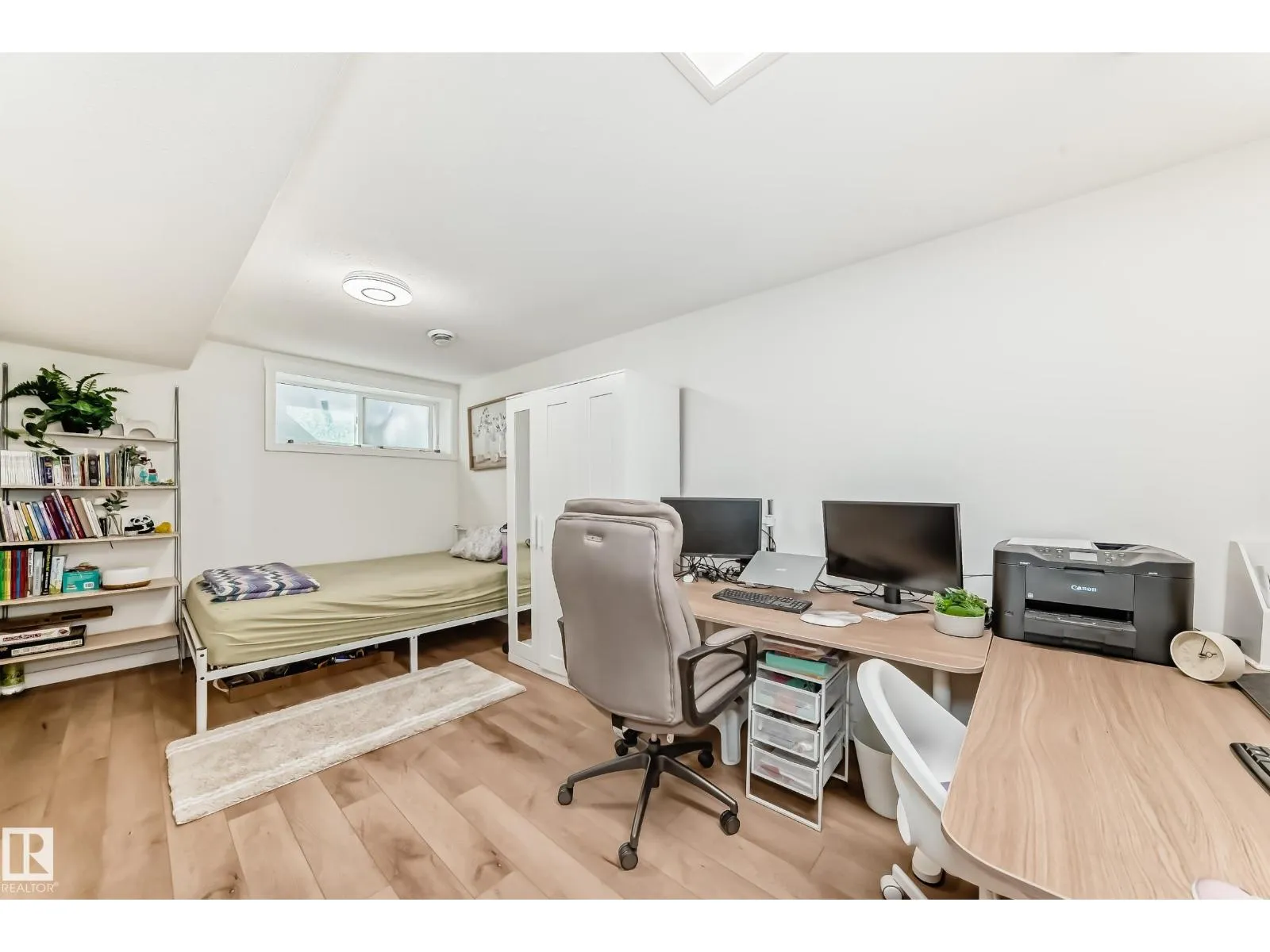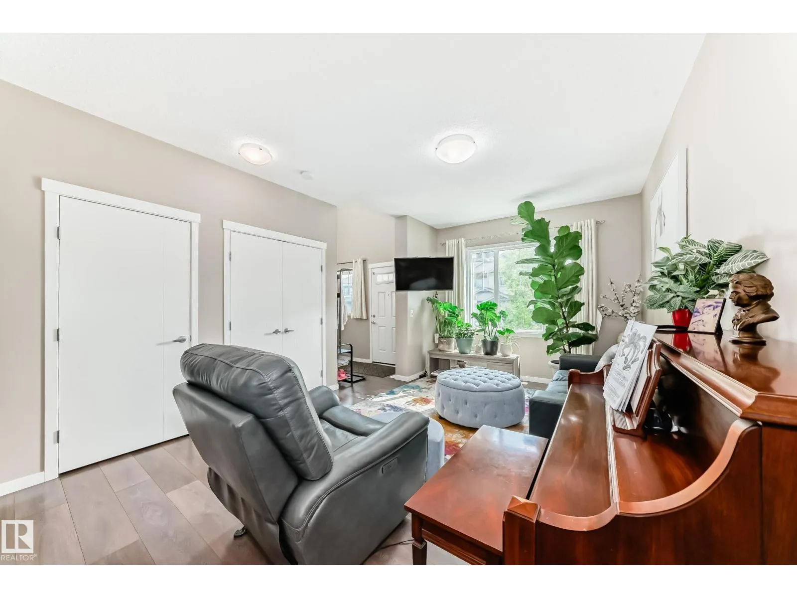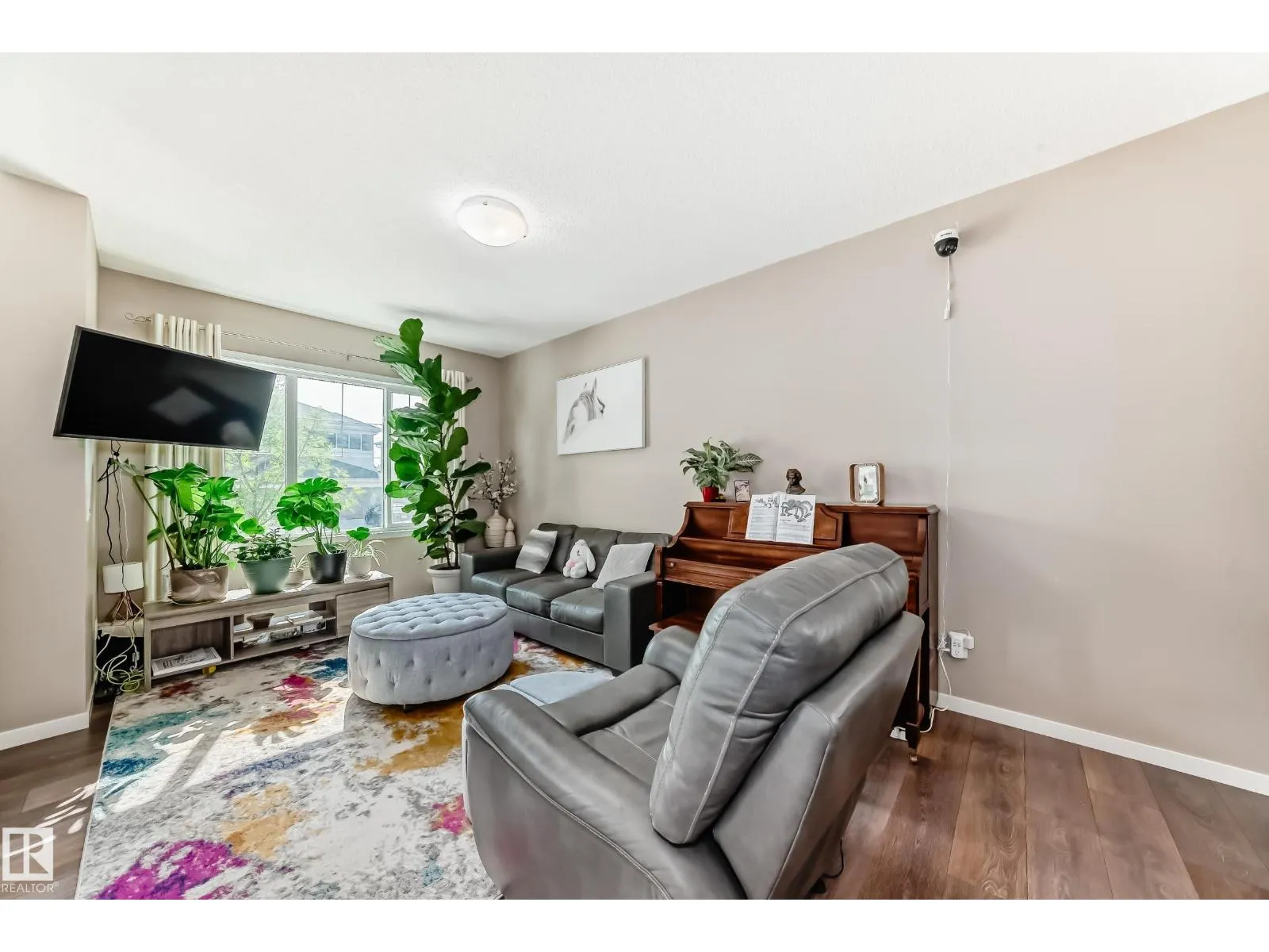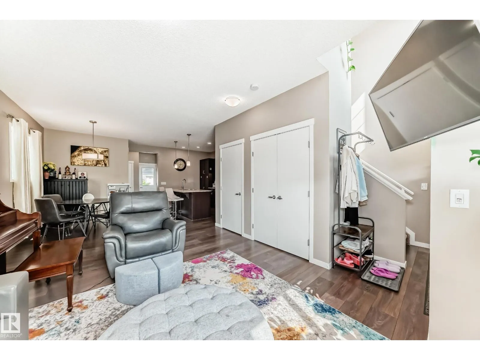 Welcome to this Stunning END UNIT, 2-storey Sterling Homes Situated in the desirable community of Tamarack! Features 1439 sqft of 4 bedrooms, 3.5 bathrooms & a double detached garage. Main floor offers open concept layout, living room w 9 ft ceilings/bright windows/upgrade laminate floorings throughout. a chef-inspired kitchen boasts modern cabinetries/backsplash tiles/pantry/quartz countertops/oversized c kitchen island w eating bar, adjacent to sizable dining area. Nook leads to back entrance to deck, prof landscaped & fenced yard, your private oasis for relaxation! Convenient main floor 1/2 bath & laundry rm. Upper floor has 3 generous bedrooms all w bright windows. King-sized master bedroom offers walk-in closet & a 4 pc en-suite bathroom, PLUS second 4 piece bathroom. Basement c/w vinyl plank flooring family room/4th bedroom/a 3pc bathroom & utility room. Back land to double car garage. Easy access bus route/school/playground/shopping & all amenities. Perfect for live in or investment! Don't miss! (id:27476)