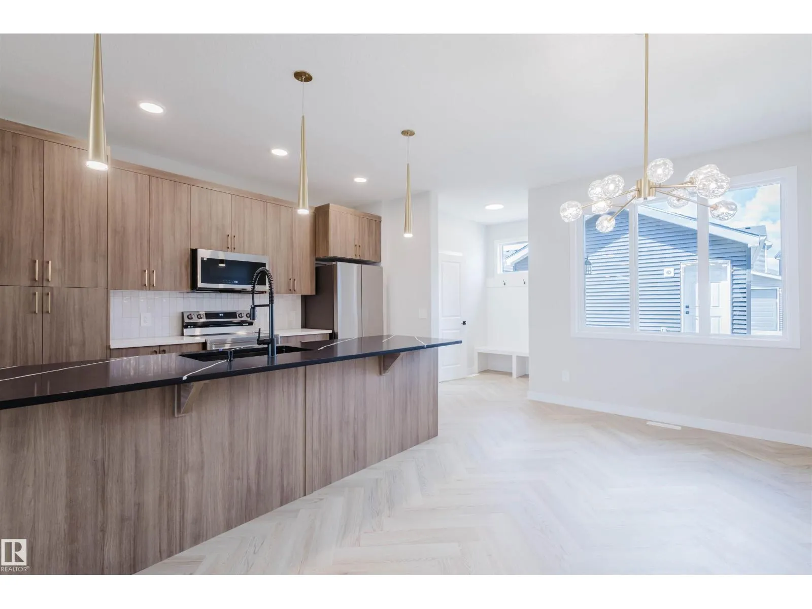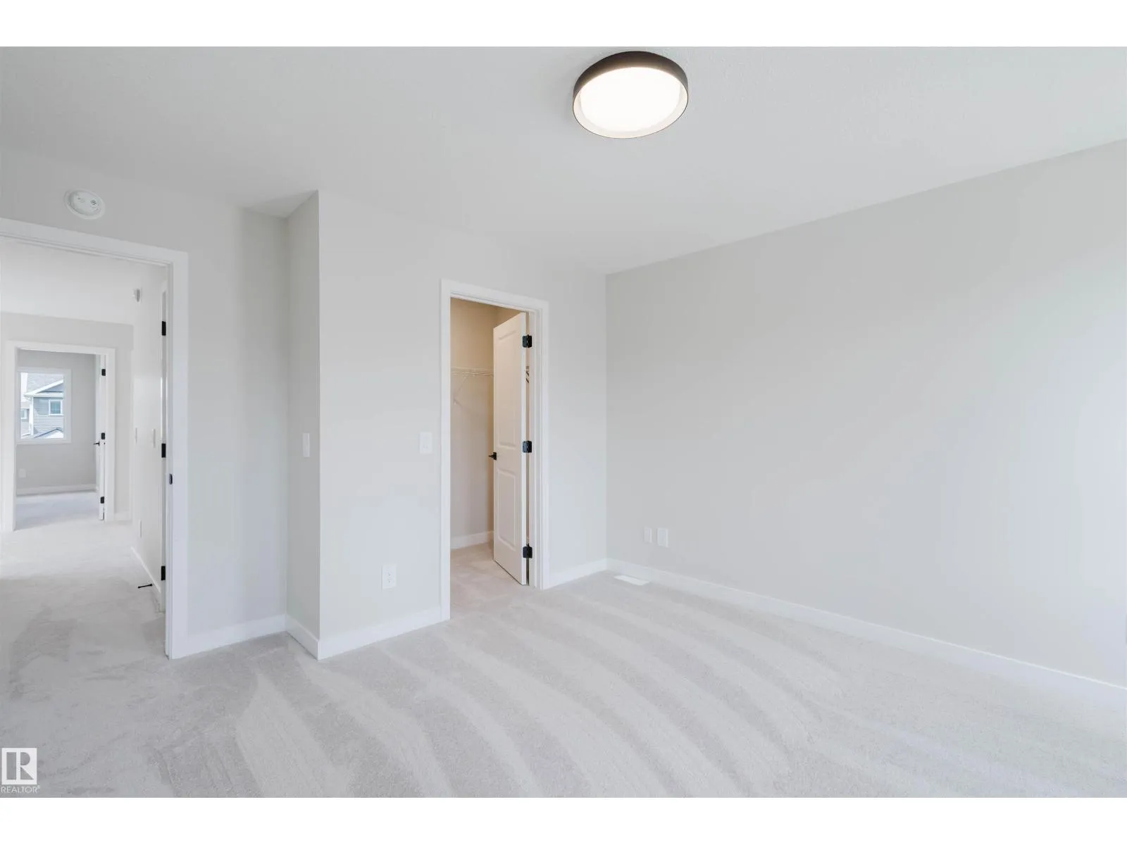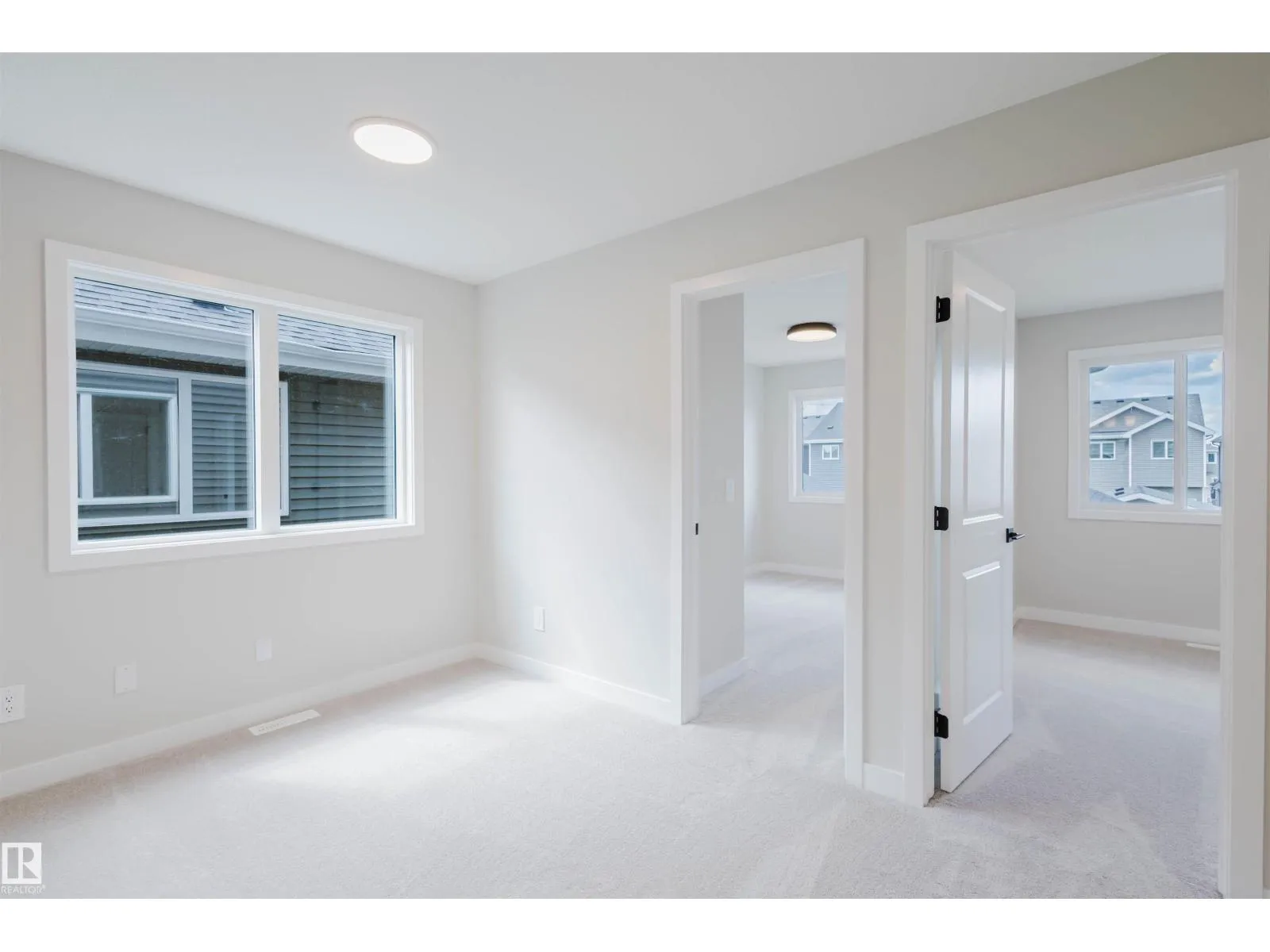 Nestled in a tranquil community surrounded by nature and trails, this stunning 3-bedroom, 2.5-bathroom duplex seamlessly blends style and functionality. The main floor boasts 9' ceilings and a convenient half bath, perfect for guests. The beautifully designed kitchen is a highlight, featuring 42 upgraded cabinets, quartz countertops, and a waterline to the fridge. Upstairs, enjoy the flex area, spacious laundry room, full 4-piece bathroom, and 3 generously sized bedrooms. The luxurious primary suite offers a walk-in closet and ensuite. The separate side entrance and legal suite rough-ins offer flexibility for future additional income or extended family. Other features include FULL LANDSCAPING, double parking pad, APPLIANCES INCLUDED, unfinished basement with painted floors, high-efficiency furnace, and triple-pane windows. Buy with confidence. Built by Rohit. QUICK POSSESSION! Photos may differ from actual property. (id:27476)