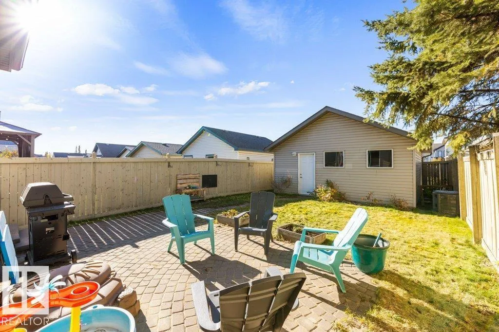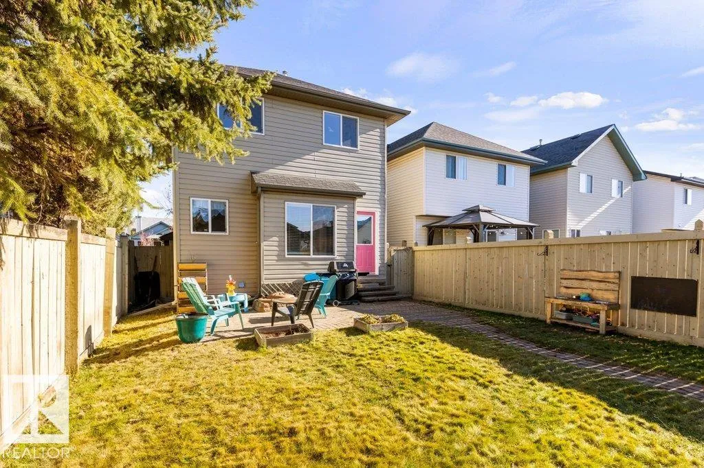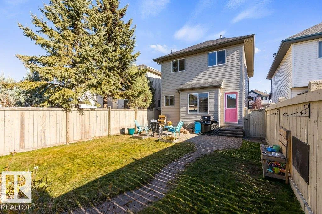 This 2004 built 3 Bed, 2.5 bath 2 storey is the ideal starter home. Central Air-Conditioning keeps you cool in the summer and the double garage ensures you won't be brushing off snow in the winter. The living room is cozy and includes a tile surround gas fireplace. Kitchen is spacious & open to eating nook & has convenient center island and loads of cabinets. Dining area overlooks the landscaped back yard with cobblestone patio and walkway. Fully finished basement has large rec room & huge laundry/storage space. This home is bright and has been well maintained. Recent up grades include shingles, hot water tank, and oven. Parking is easy with the back lane accessed double detached garage. For kids, pets, or just relaxing the lot is fully landscaped and fenced. Close to all amenities, schools, and transit. Amazing value! (id:27476)