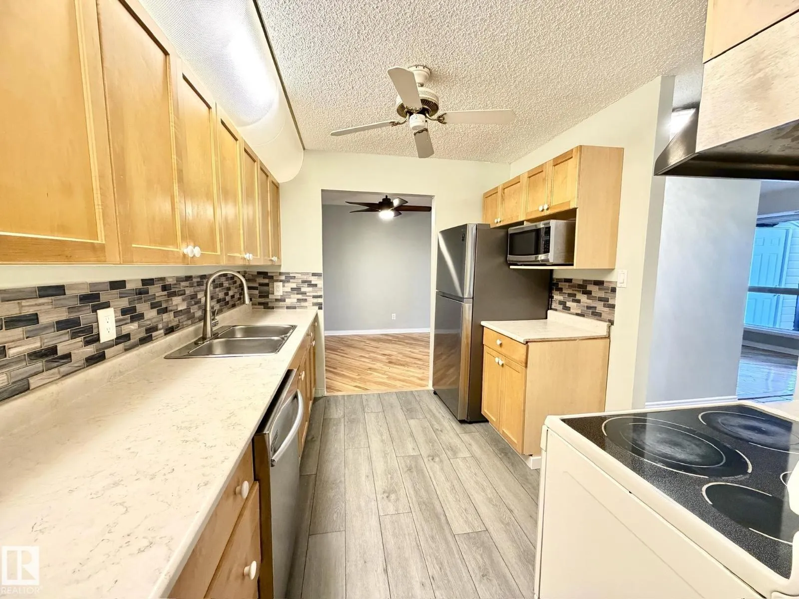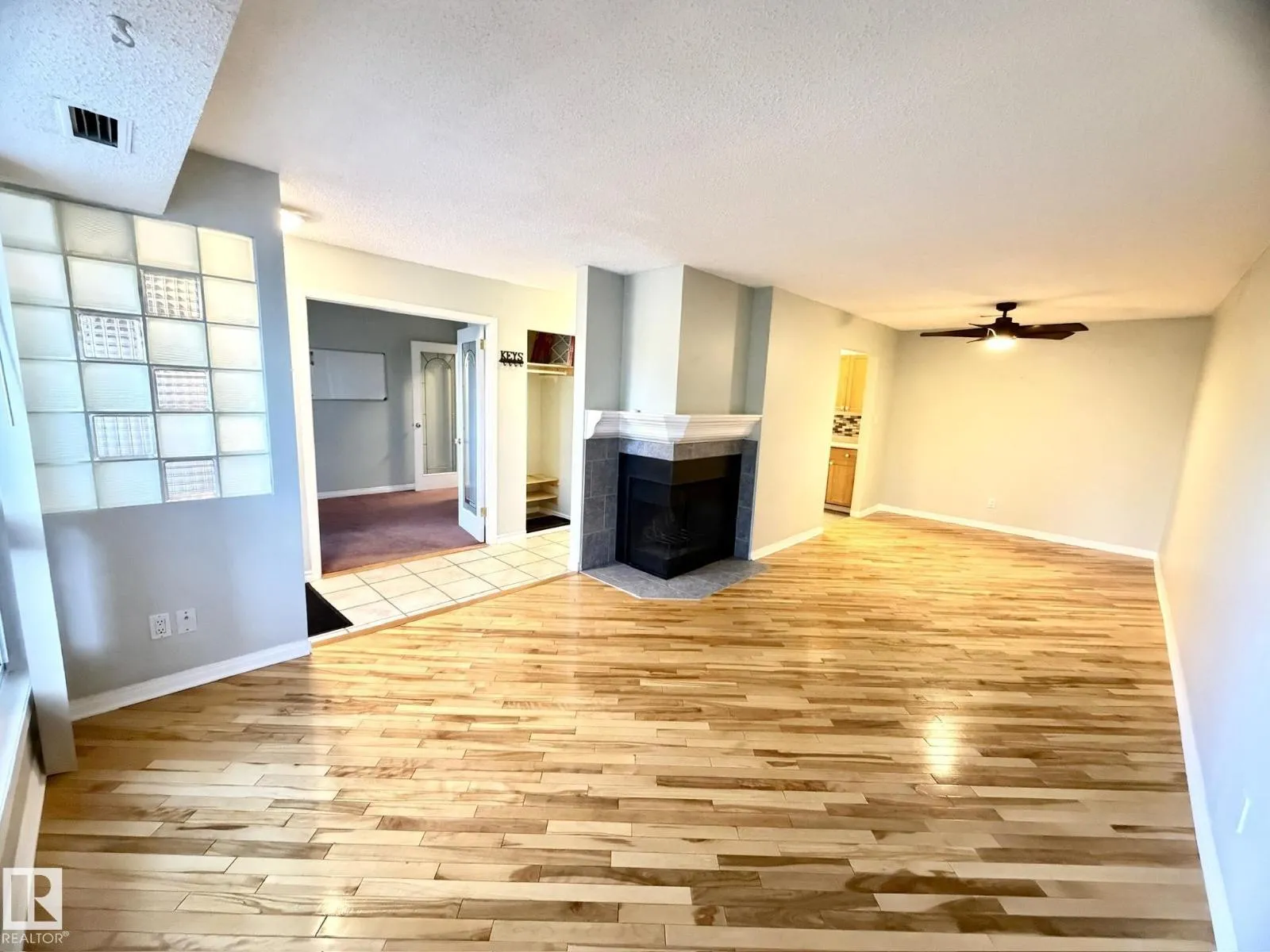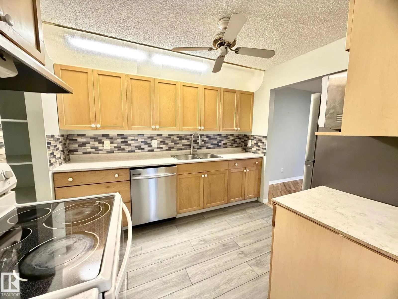 Welcome to this bright & beautifully maintained 2-bedroom carriage-style condo in the desirable community of Skyrattler! Close to parks, schools and the LRT system! Perfectly located in Hunterâs Run, this TOP FLOOR, west-facing unit offers peace, privacy, and loads of natural light. The spacious living and dining areas feature gleaming hardwood floors and a cozy tiled-surround wood fireplace, while the modern kitchen shines with maple cabinets, subway tile backsplash, and new vinyl plank flooring. The massive walk-in pantry adds incredible storage! The large primary bedroom includes a walk-through double closet with wardrobes and private access to the updated 4-piece bath. The second bedroomâwith elegant French doorsâoffers flexibility as a guest room, home office, or studio. Enjoy your private balcony surrounded by mature trees, complete with a huge outdoor storage area. With in-suite laundry, a newer high efficiency furnace, assigned parking, and a pet-friendly policy, this condo is the total package! (id:27476)