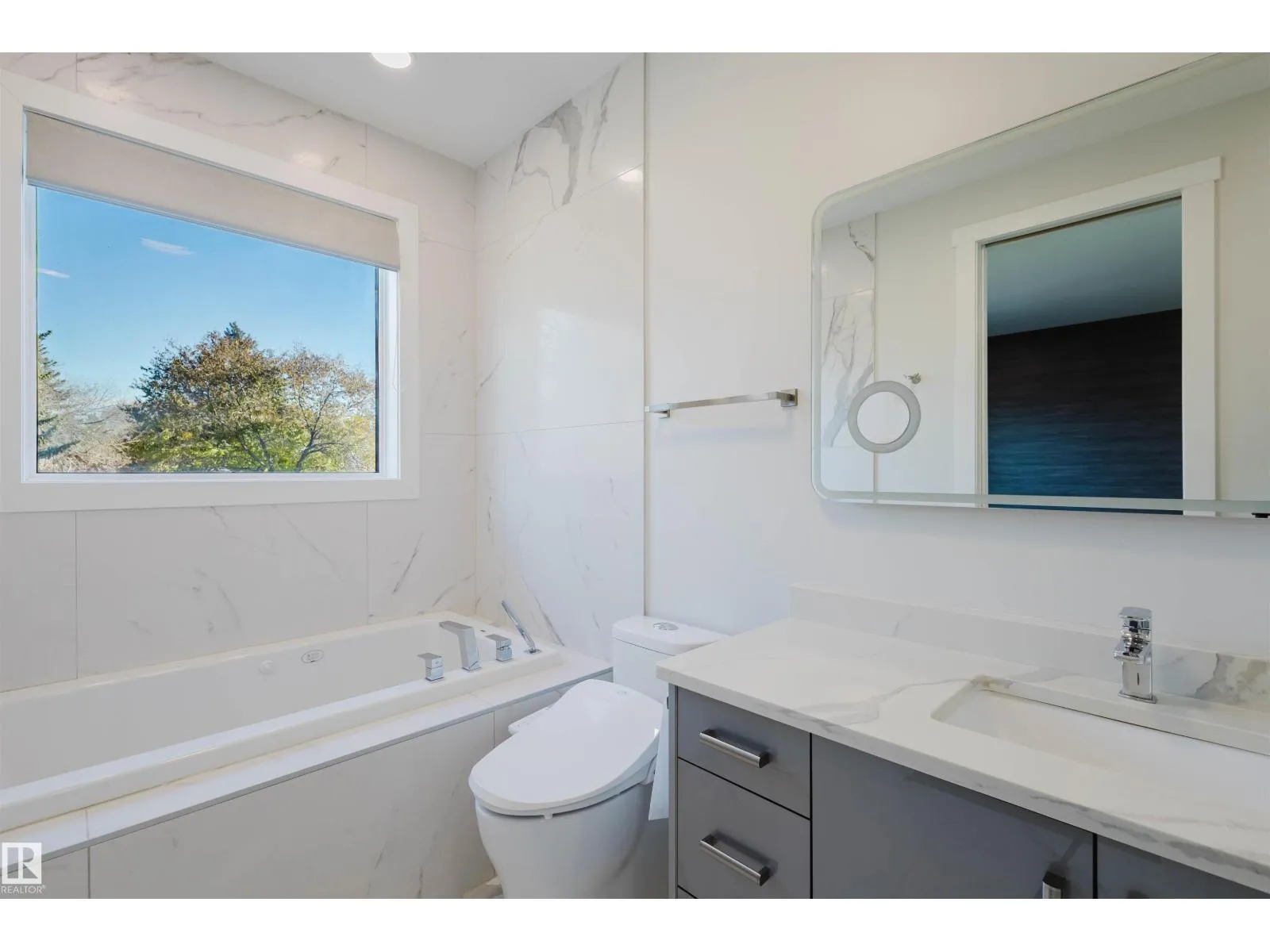 Modern living in Grandview Heights! WALKING DISTANCE TO TOP-RANKED Grandview Heights School (Gr. 1-9)! & right across from GREENSPACE, this air conditioned custom built 2 storey home boasts 2,028 sqft, 5 bedrooms & 3.5 baths. Open concept main floor features 10â ceiling & tile & vinyl plank flooring throughout;West facing living room overlooking greenspace. Modern kitchen boasts two tone cabinets, quartz ctps, high end SS appliances, large island & corner pantry. Upstairs features 9â ceiling, 4 bdrm, laundry rm & 2 SKYLIGHTS. Primary has a large W/I closet and a retreat w/ a luxury 4 pc ensuite featuring a Jacuzzi soaker tub & customer shower. F/F basement has a legal suite potential with separate entrance, separate furnace/HRV, a large entertainment room, a 5 bedroom & a fully bath.Fully fenced & landscaped PRIVATE back yard has 13âX20â maintenance free deck & oversized 20X22 garage.Grandview Heights is a wonderful community to live in w/ great access to trails/River Valley/UofA. (id:27476)