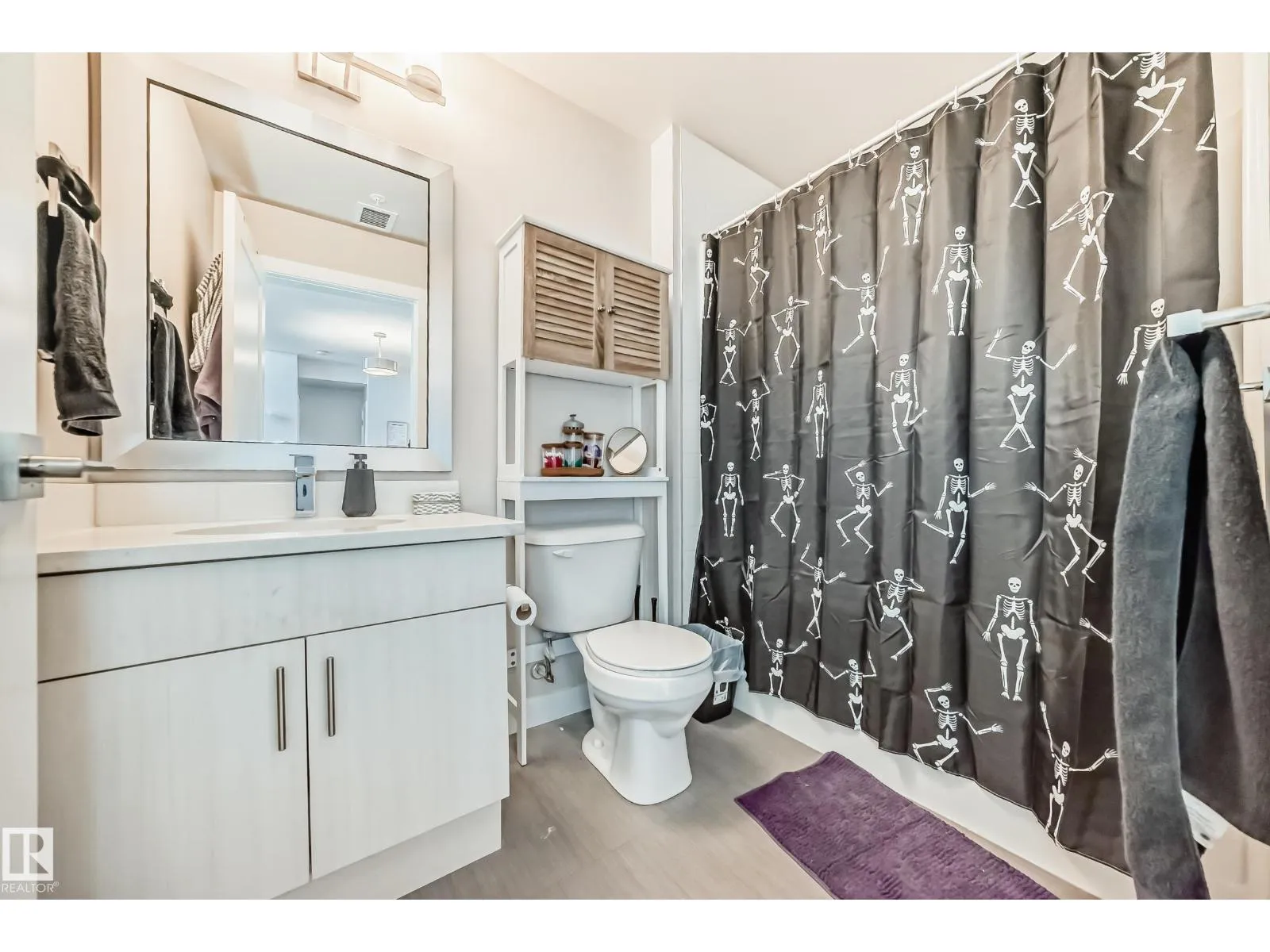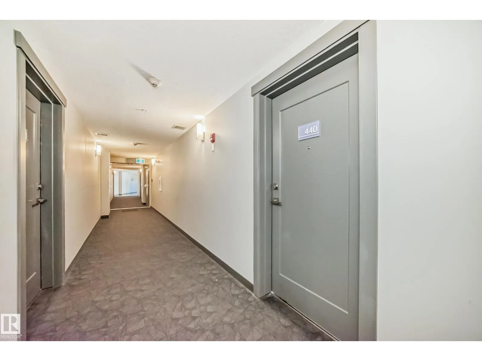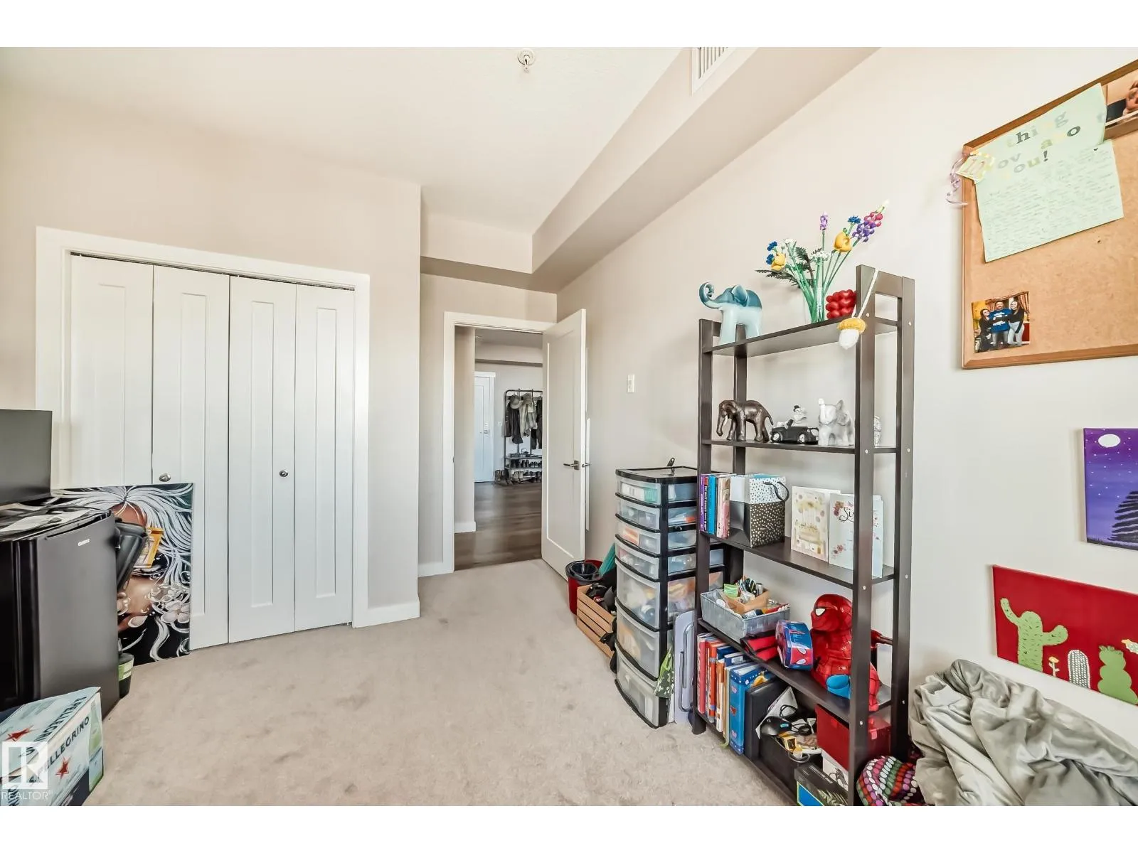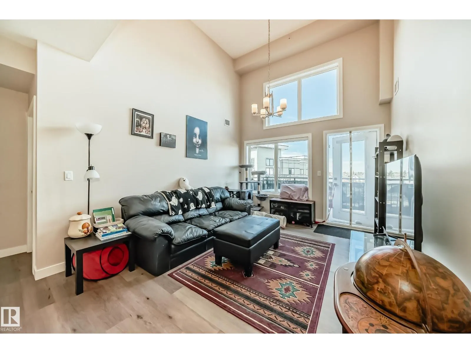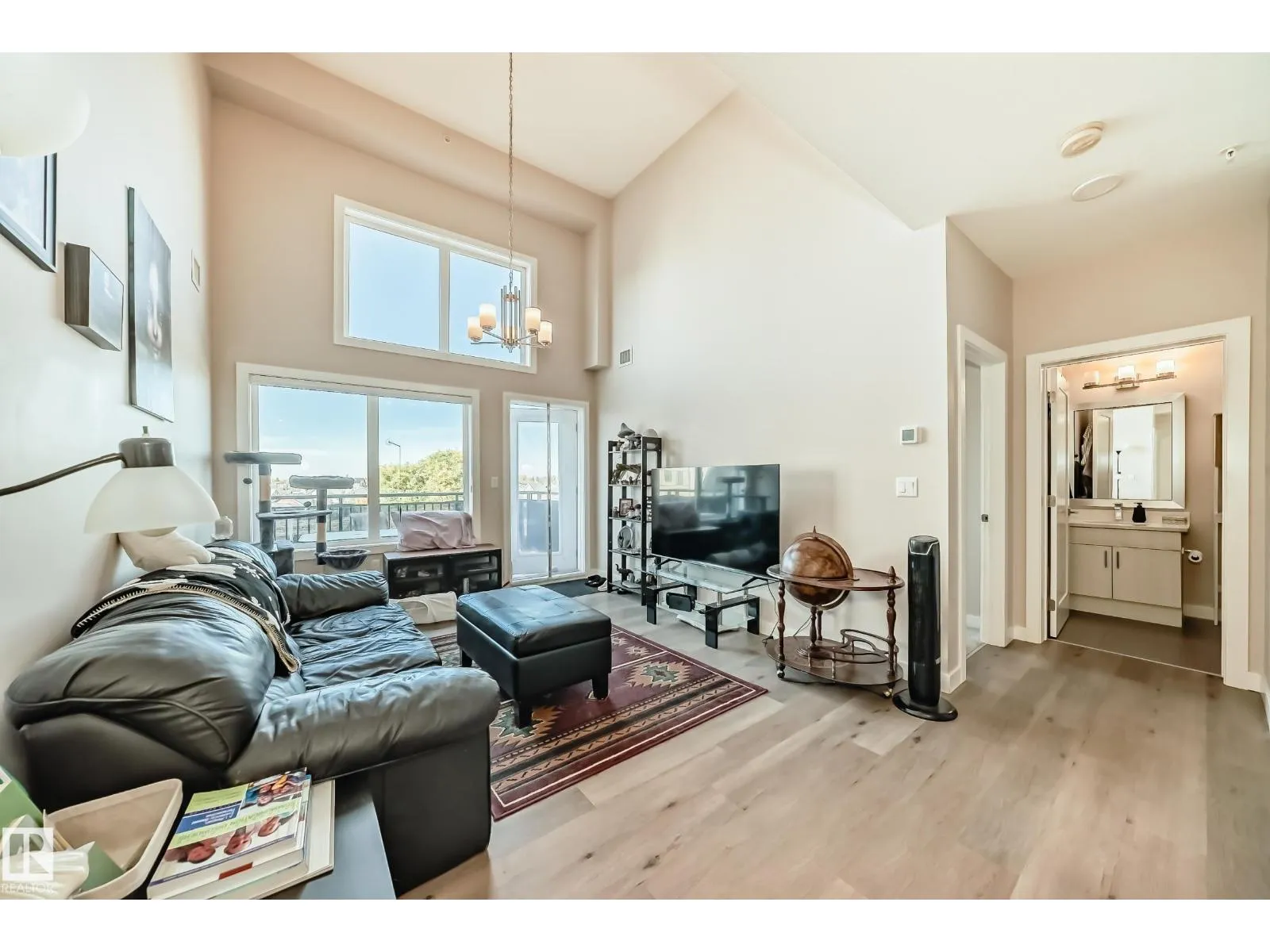 The Connaught at Griesbach - Welcome home to this stunning top-floor, north-facing 2 bedroom, 2 bathroom suite featuring a bright open-concept design and modern finishes throughout. With a builderâs size of 1,000 sq. ft., this suite offers quartz countertops, soft-close cabinetry, and low-maintenance vinyl plank flooring in the main living areas, complemented by plush carpet in the bedrooms. The impressive two-storey living room is filled with natural light from expansive windows, with a bedroom conveniently located on each side for added privacy. Step out onto the spacious deck, complete with a natural gas hookup for barbecuing. Enjoy the many building amenities, including a fitness centre, social/amenity room, library, car wash bay, and secure key fob access. Additional features include Hunter Douglas window coverings, stainless steel appliances, in-suite laundry with stacking washer and dryer, and one underground parking stall. Building was treated with fire retardant spray during construction. (id:27476)