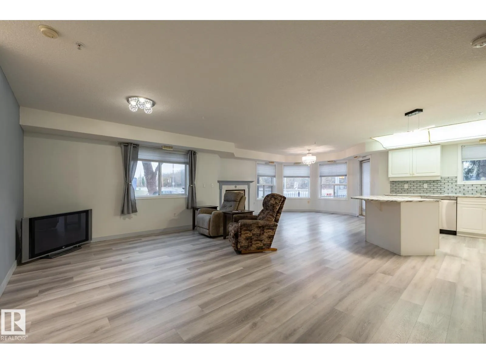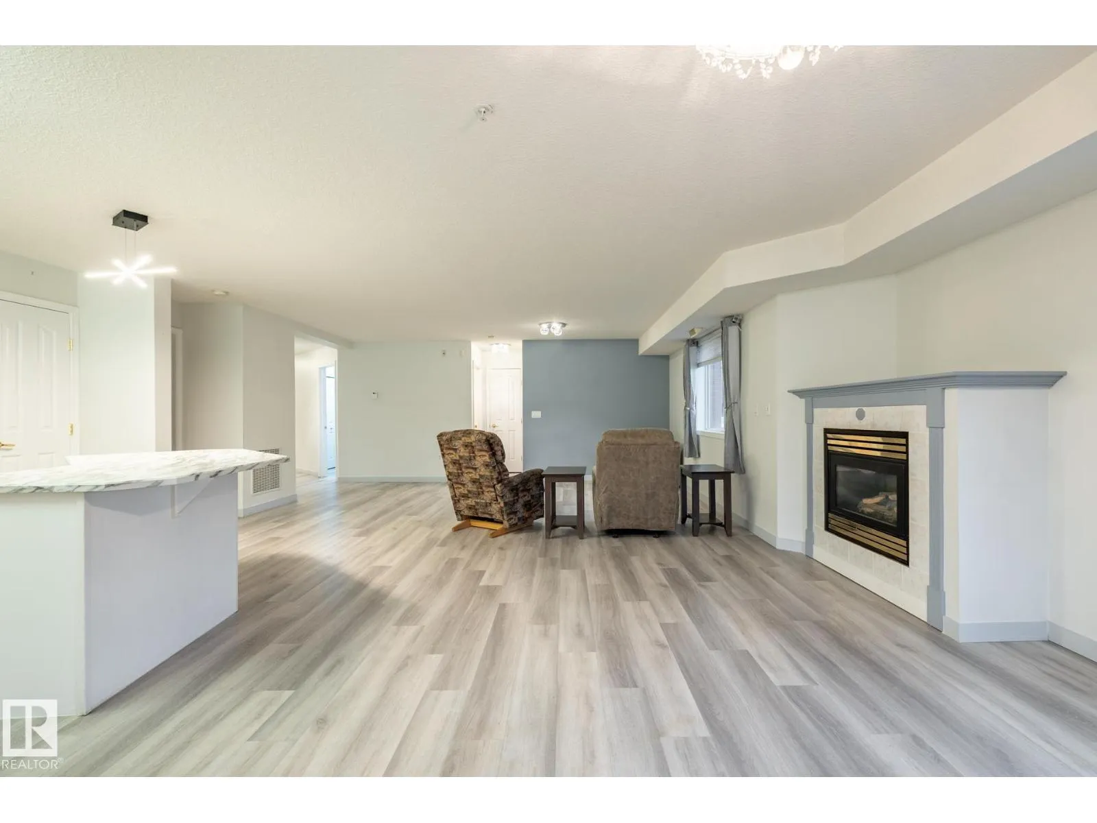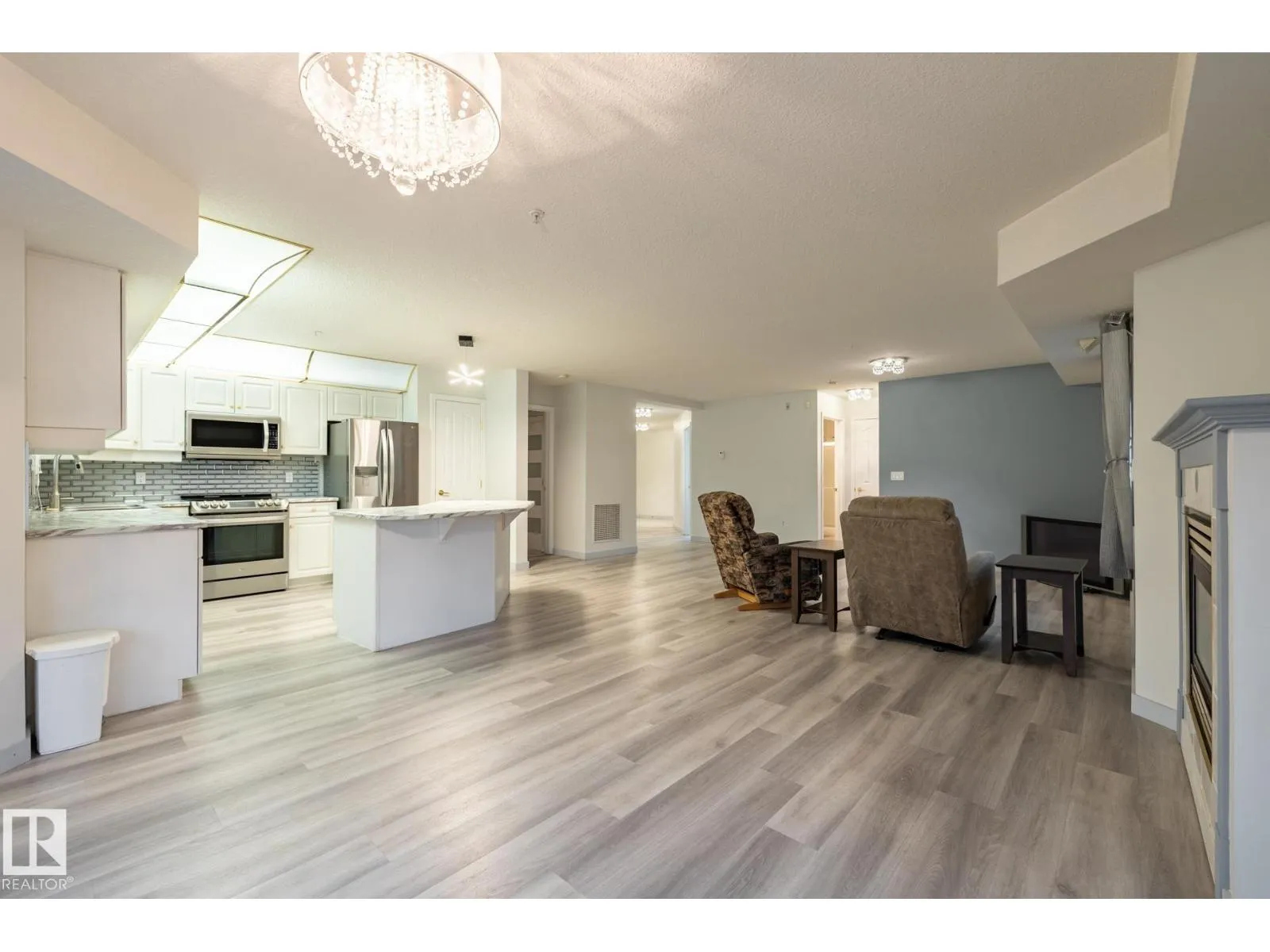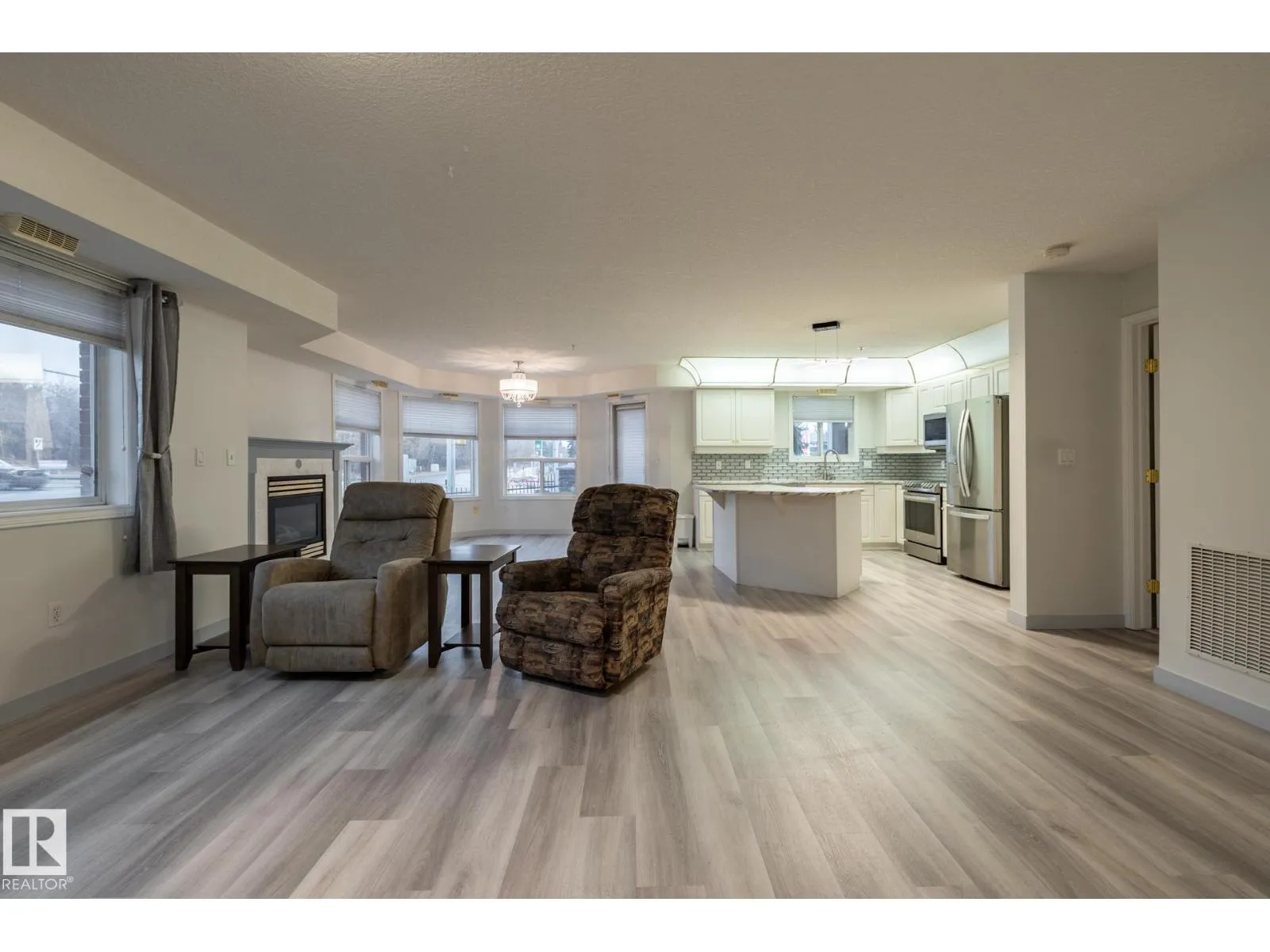This amazing 1345 square foot, extensively upgraded corner unit in Wolf Willow Manor, comes with underground heated parking & storage cage. This bright and spacious home has central AC, insuite laundry, an open-concept floor plan with attractive vinyl plank floors, spacious entrance way, modern island kitchen with stainless steel appliances, living room with fireplace, dining area, 2 bedrooms, 2 bathrooms (including a luxurious ensuite with soaker tub), and a fenced patio. This adult building (55 plus) offers a vast amount of amenities including a car wash, social room, games room, gym, library, workshop, picnic spot and 3 elevators! Enjoy living just a short distance to shops, transit, YMCA, restaurants and more. Truly a unique opportunity thatâs unbeatable value in its category. Quick possession possible. (id:27476)