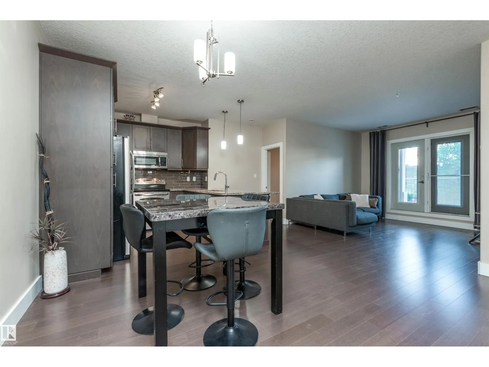 Welcome to the Waterstone, a quality complex in the heart of MacTaggart. This STUNNING unit features 2 spacious bedrooms, 2 bathrooms, a chefs kitchen with ample cabinet space, granite countertops and an open concept living/dining space. Central AIR CONDITIONING and INSUITE LAUNDRY are also included for your comfort and convenience. Perfect for 1st tie buyers, a retiree looking to downsize, am investor, or someone who needs quick access to YEG. Just down the hall you will find the amazing amenities this building has to offer including the GYM, PARTY/SOCIAL ROOM, GUEST SUITE for your out of town guests and community gardens. Heated underground parking w/storage cage. Pet Friendly building. Walk out the front door to enjoy the network of walking trails MacTaggart has to offer starting with the ones around the gorgeous pond that The Waterstone is located by. (id:27476)