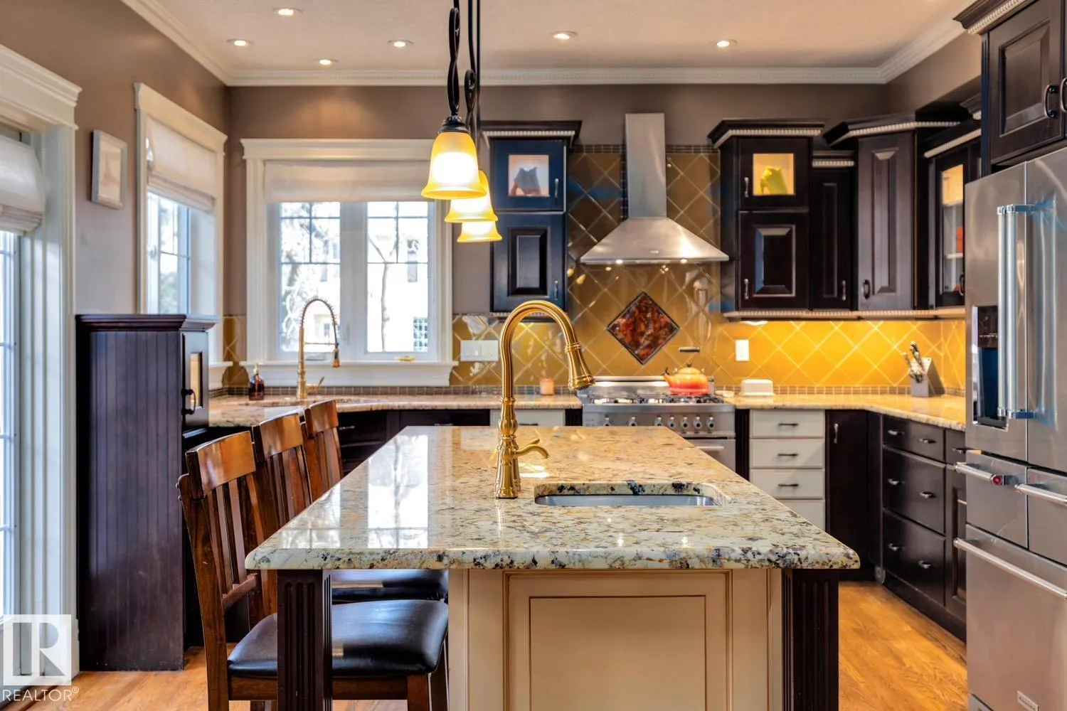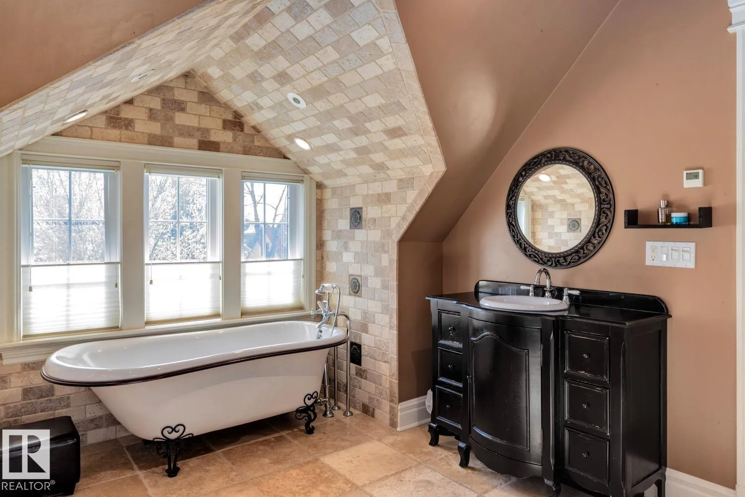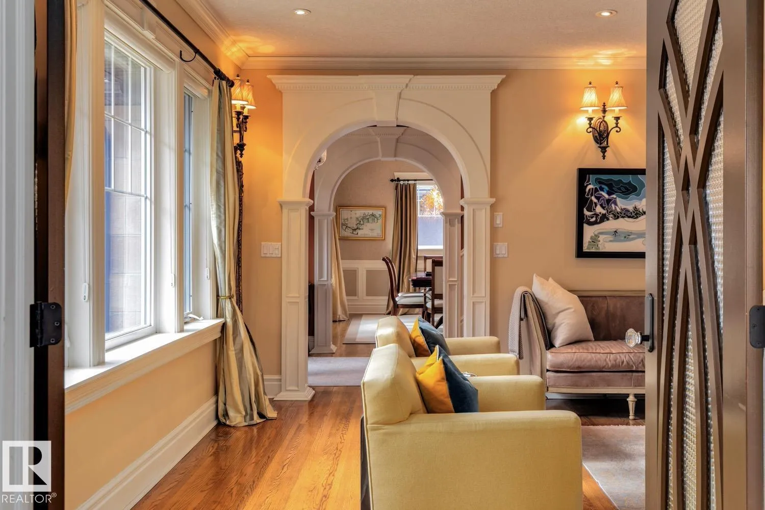 Stunning 5000+ sq.ft. 6-bed, 7-bath luxury estate in Edmontonâs prestigious Highlands, one of the city's top 10 historical neighborhoods. This historic home has undergone a million-dollar transformationâstripped to the studs and rebuilt with a new 9' R50 ICF foundation. Old-world charm meets modern efficiency with a chefâs kitchen, formal living and dining rooms, spa-like master retreat, loft space with full bedroom + full bathroom, and even a dog shower. High-end finishes include granite, slate, travertine, and hardwood, with custom mouldings, solid core doors, and detailed trim throughout. Double insulation, gated driveway, triple garage, and beautifully landscaped yard add to the appeal. A rare opportunity to own a fully restored historic gem in one of Edmontonâs most iconic communities. (id:27476)