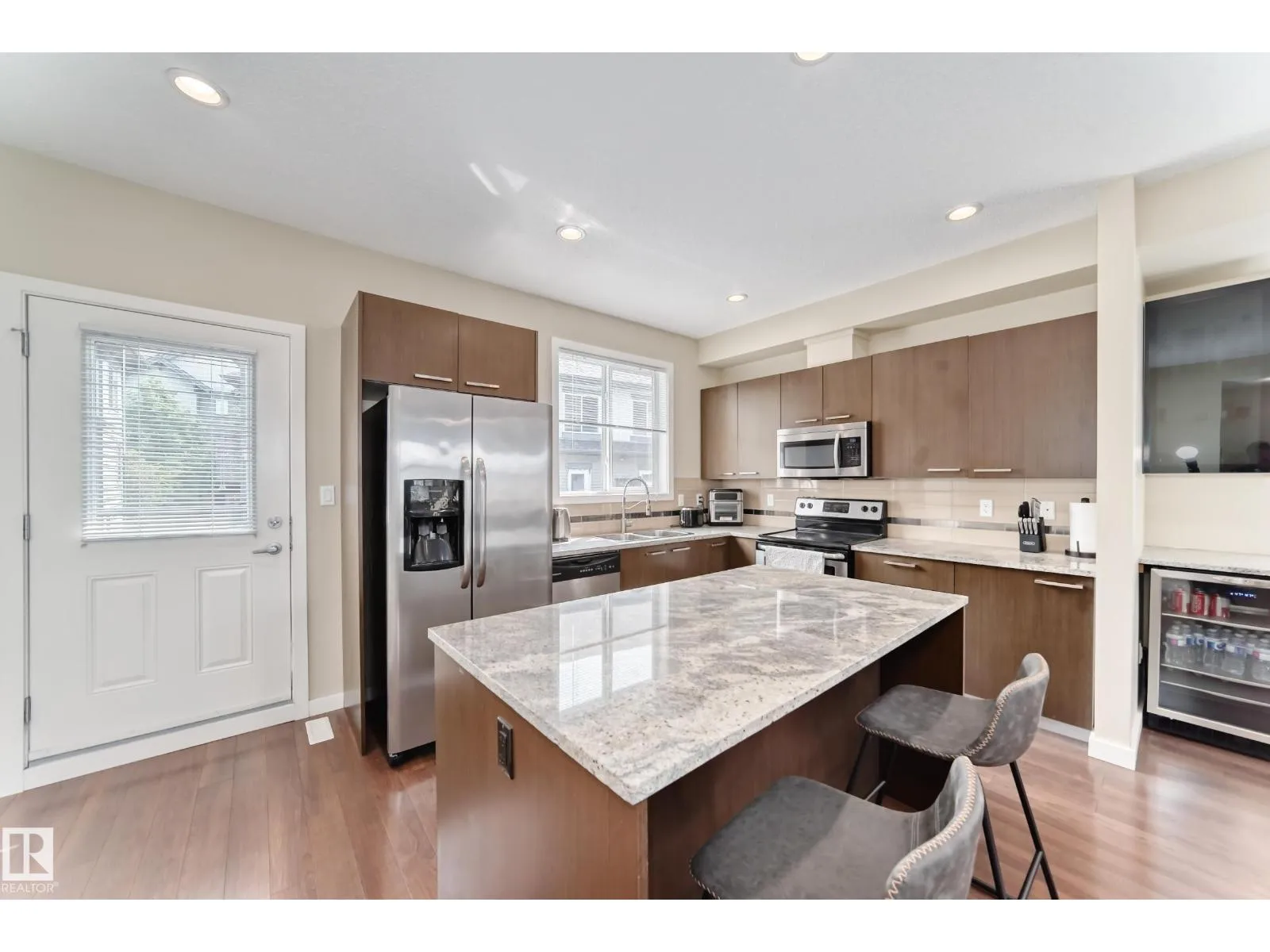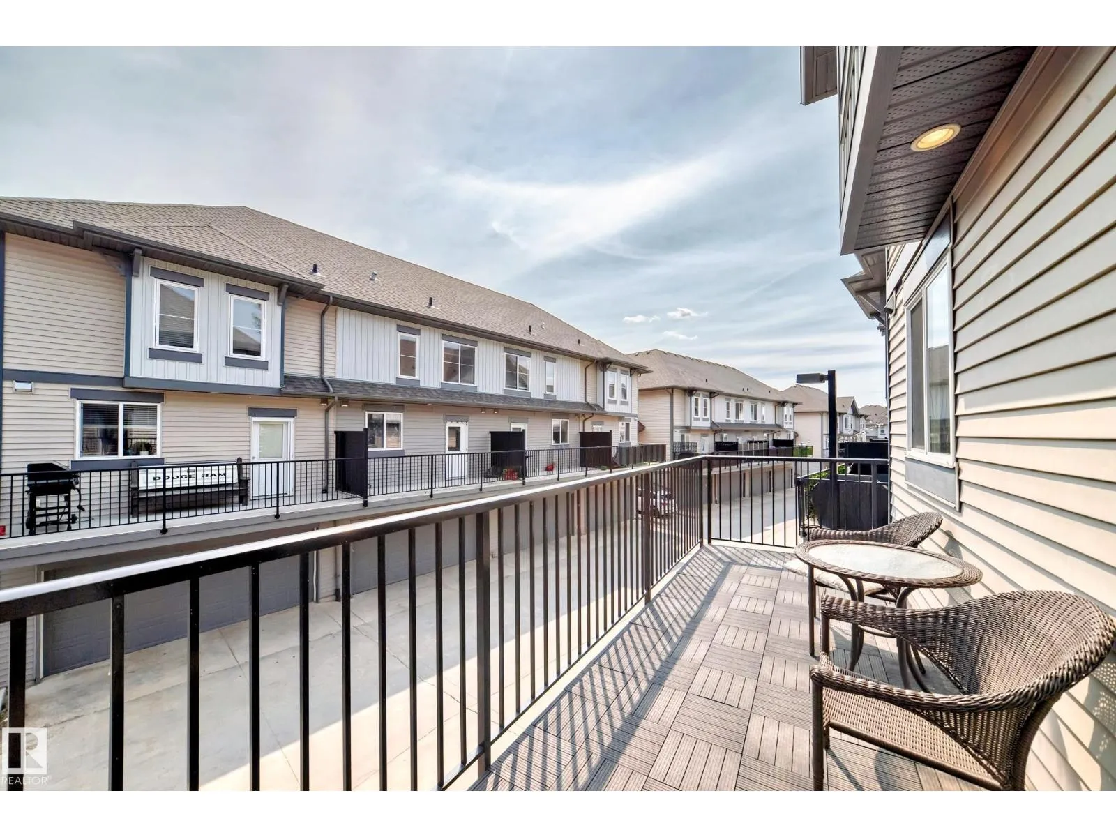 This immaculate freshly painted end unit townhouse has an incredible design with over 1,500 sqft of living space. It features a large living room with a 9 foot ceiling, lots of natural light, and a spacious kitchen equipped with stainless steel appliances, granite countertops, very large island, built in buffet with a wine cooler, and a pantry. This floor also has a 2 piece bathroom and a large deck. Upstairs you will find two spacious primary bedrooms with two full bath ensuites and plenty of closet space. The washer and dryer are conveniently located in the upper floor. Other bonuses included are the double attached garage, a central A/C for hot summer days and a window in the ensuite. The amenities include a clubhouse (social room and gym), visitor parking, lake access and more. Located in Walker Lakes only minutes from south common and the international airport. Move in ready! (id:27476)