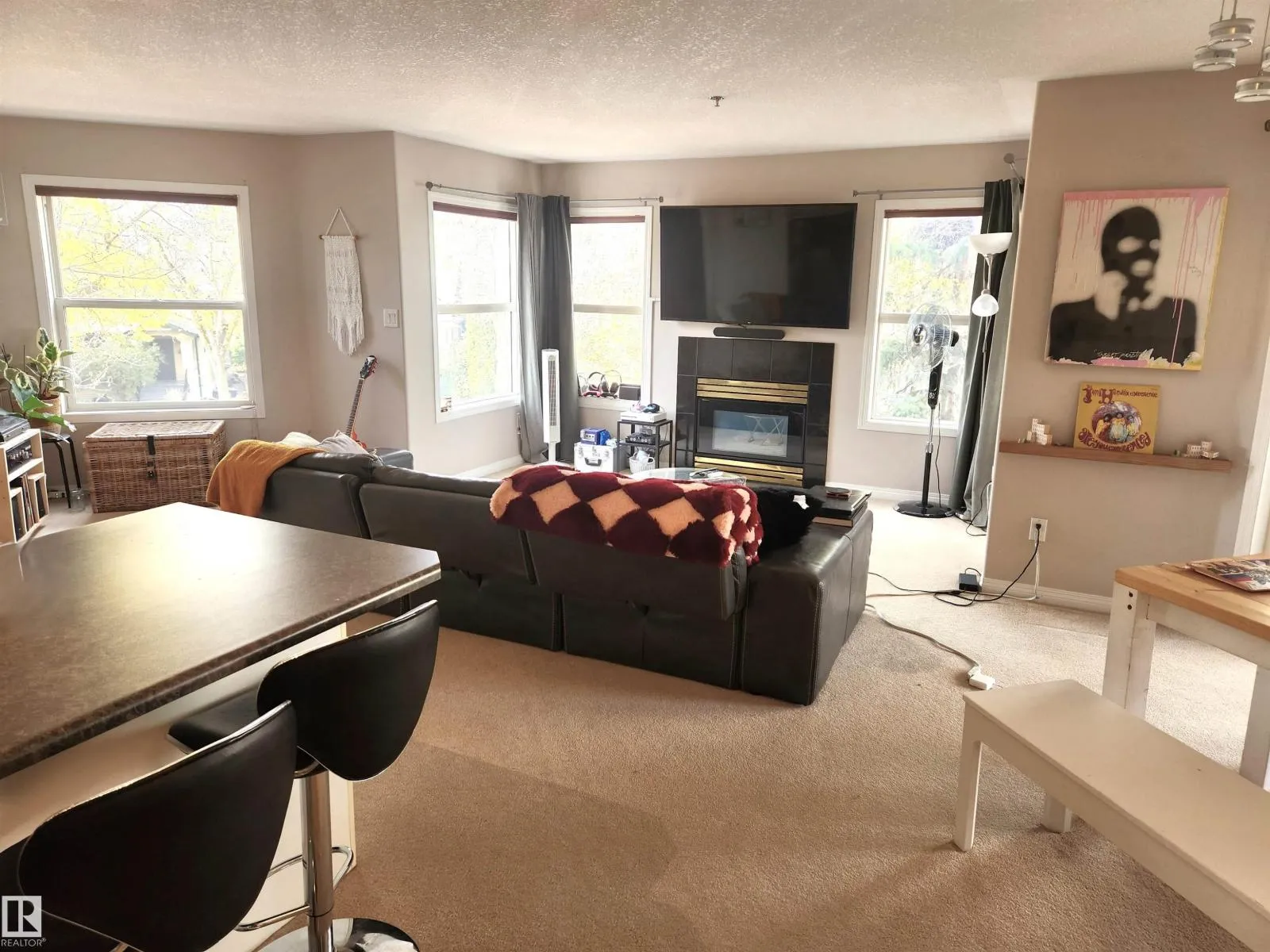 Welcome to The Dakota in the heart of Wîhkwêntôwin! This bright and spacious 2 bedroom 1,096 sqft condo offers an open layout with large windows, in-floor heating and a cozy gas fireplace. The stylish white kitchen features plenty of cabinet space, large eat-up island and seamlessly connects to the spacious living and dining areas perfect for entertaining. The primary bedroom includes a walk-in closet and 3 piece ensuite, while the second bedroom is located on the opposite side for added privacy. Enjoy the large balcony with a gas BBQ hook-up, in-suite laundry, and heated underground parking. Fantastic location, steps to the Brewery District, restaurants, Grant MacEwan, 124 Street, and the river valley. A perfect mix of comfort, convenience and downtown living! (id:27476)