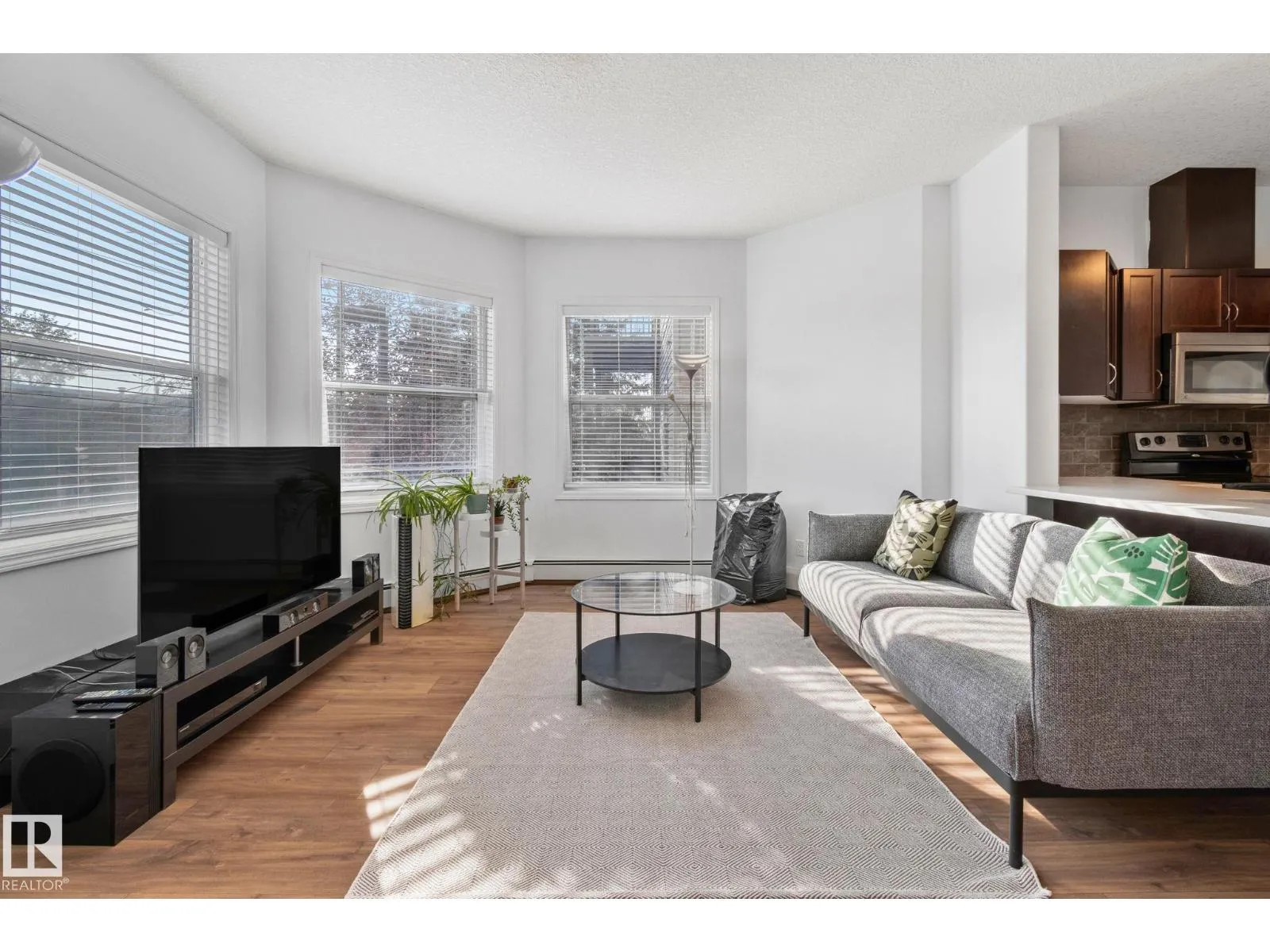 This bright, SOUTH-FACING 2-bedroom, 2-bath condo offers over 1,040 SqFt of open, inviting living space in one of Edmontonâs most desirable areasâsteps from Mill Creek Ravine, Whyte Avenue, local cafés, and boutique shops. Recent updates include NEW laminate flooring in the living room/dining area & NEW carpet in the primary bedroom. Enjoy the ease of IN-SUITE laundry, two TITLED parking stalls (one underground & one surface), an underground storage cage, & plenty of in-unit storage. Perfect for first-time buyers, young professionals, or downsizers who value walkability, community, & convenience, this Ritchie condo blends comfort, style, & urban livingâall in one of Edmontonâs favourite neighbourhoods. (id:27476)
