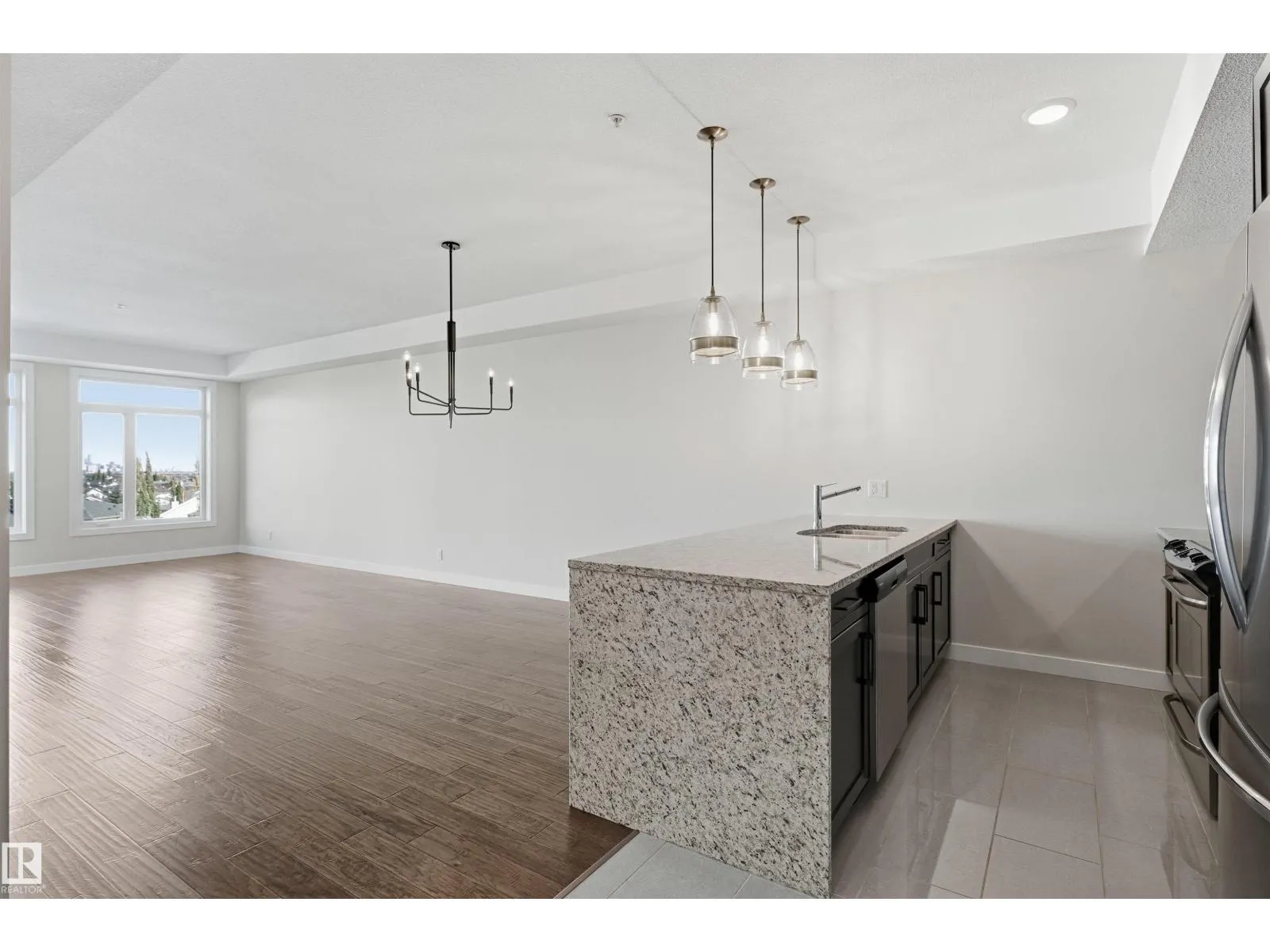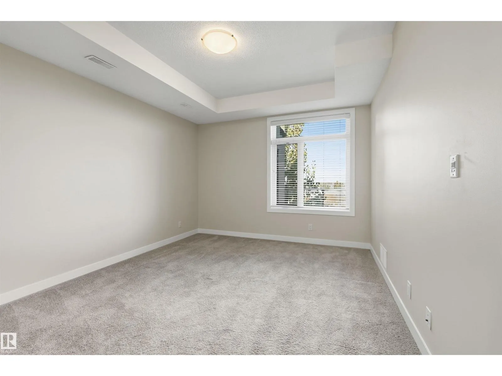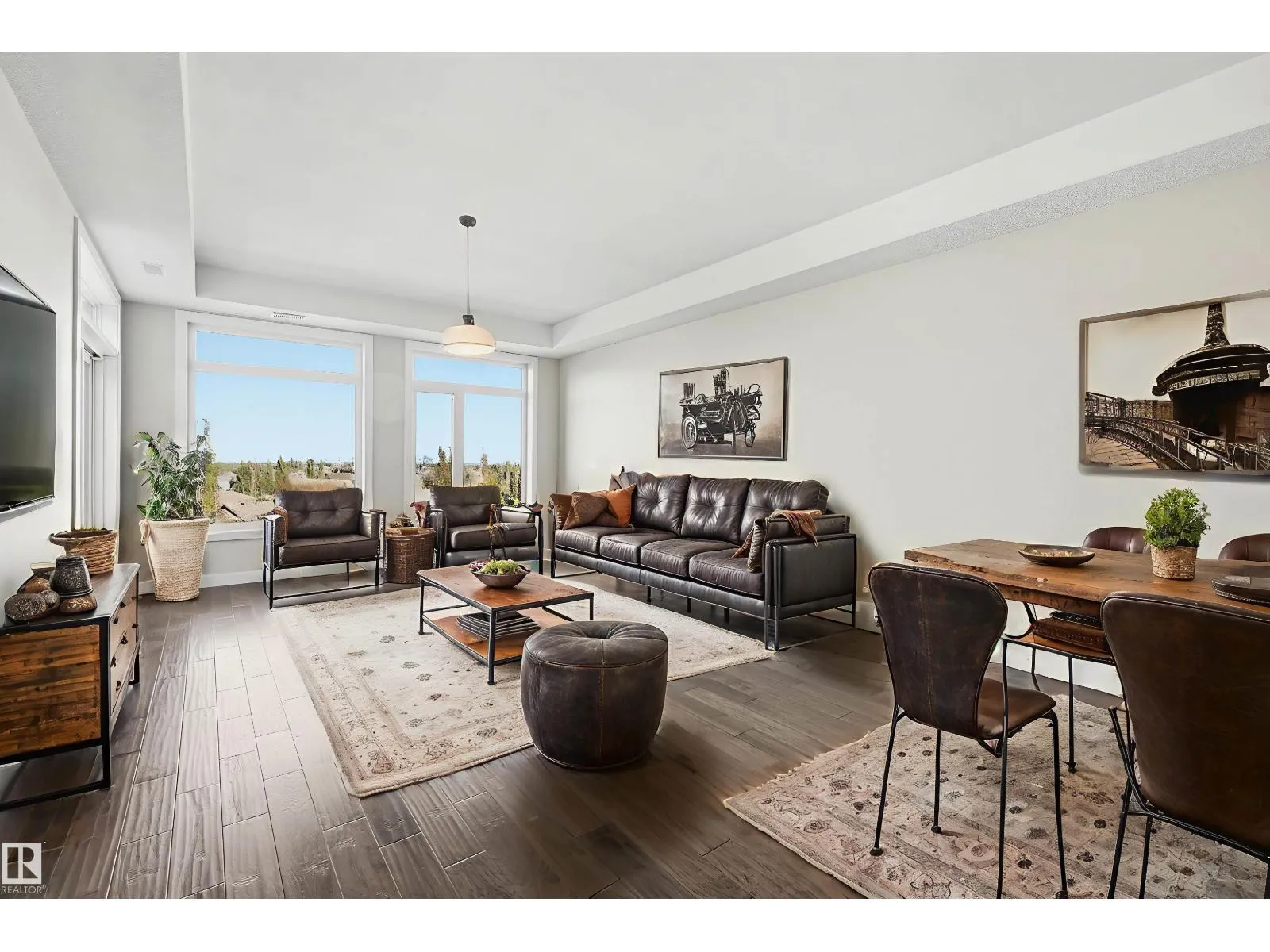Experience luxury living at Brass III The Leger in the desirable Riverbend. This top-floor unit offers city views, showcasing craftsmanship & a well functioning floorplan. The bright, open layout features 9 ft ceilings, engineered hardwood, granite countertops, S/S appliances, maple shaker cabinets & an island w/eating bar. Living area will accommodate most furniture arrangements. Bedrooms are on opposite ends for privacy. The spacious primary suite includes a walk-in closet w/built-ins and a 4pc ensuite w/soaker tub & glass shower. 2nd bedroom for guest stays or home office/hobby studio. 3pc bathroom w/matching finishing palette. Enjoy the balcony for evening bbqs, central A/C, in-suite laundry. Double tandem underground parking stalls w/storage. Well managed complex w/healthy reserve fund. Pet-friendly & ideally located near Terwillegar Rec Centre, schools, parks & all servicing amenities. This residence combines elegance, comfort & convenience in one of Edmontonâs most sought-after communities. (id:27476)