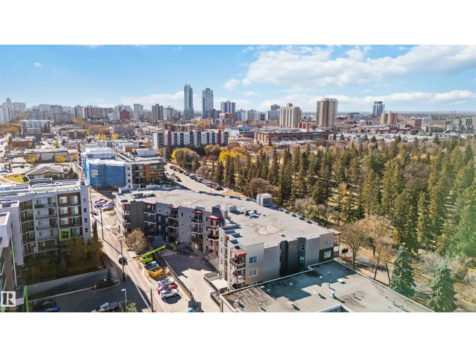 Welcome to Edmonton downtown living at Studio Ed in Queen Mary Park! This modern 2 bedroom 2 baths condo with 1 titled underground parking offers urban living and comfort. The open concept living/ dining area with patio door to a large patio to relax at the outdoor space. Modern U-shaped kitchen with ample storage. Primary bedroom features a walk-through closet and ensuite bath. Second bedroom, second full bath and in suite laundry. Excellent condition with new stove, new carpet.. etc. Move in ready! Excellent location! Well managed building with visitor parking stalls. Close to Grant MacEwan, public transit, restaurants, shopping and the River Valley!! (id:27476)