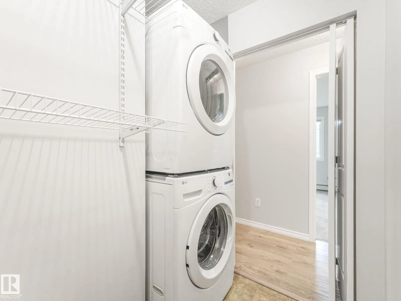Bright, stylish, and fully upgradedâthis 2 bed, 2 bath condo offers modern living in a prime South Edmonton location! Fresh paint, dual-tone cabinets, granite counters, newer stainless steel appliances, and sleek laminate flooring set the tone. The bathrooms are refreshed featuring updated vanities & plumbing fixtures and the newer light fixtures boast built-in fans. The open layout includes in-suite laundry with newer washer/dryer and handy storage. The spacious patio with gas BBQ hookup is perfect for sunny afternoons. The primary suite includes a walk-through closet leading to a private 3-pce ensuite. Heated underground parking, plus access to on-site fitness and social rooms. Surrounded by trails, green spaces, and minutes to Southgate, South Edmonton Common, groceries, and the Henday! (id:27476)