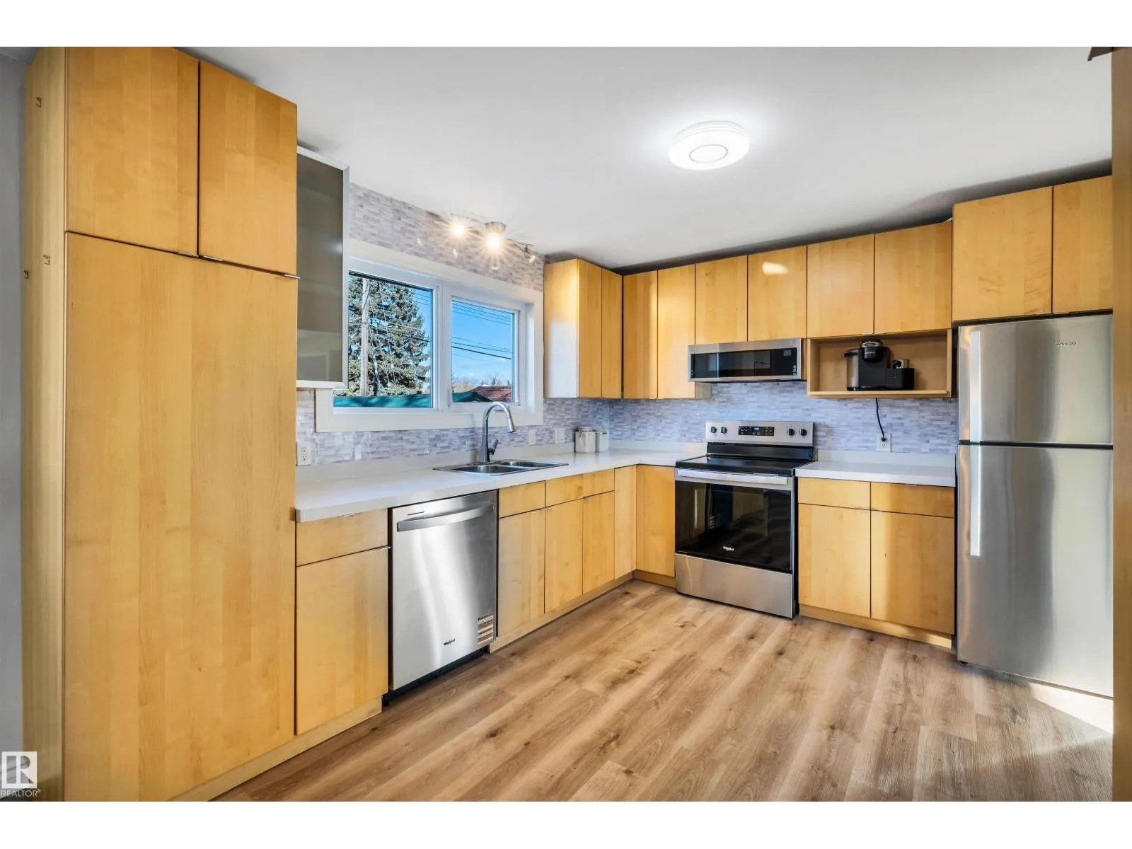 Welcome to this beautifully renovated 4-level split home with 2,080 ft2 of finished living space in the mature Meadowlark Park neighborhood close to schools, shopping, and downtown! This bright and spacious home offers 4 bedrooms, a den, 1.5 baths, and upgraded vinyl windows that fill every room with natural light. Enjoy brand-new vinyl plank flooring in the living areas and cozy new carpet in the bedrooms and basement rec room. Huge back entry with shelving and laundry. Newer insulation, siding, soffits, fascia, and windows makes this home move in ready! The large 54' x 110' lot provides plenty of space for outdoor living, gardening, or future development. A new LRT station under construction just 3 blocks away will make commuting a breeze. Move-in ready and perfectly locatedâthis home offers comfort, convenience, and value in one exceptional package! Some photos have been virtually staged. (id:27476)