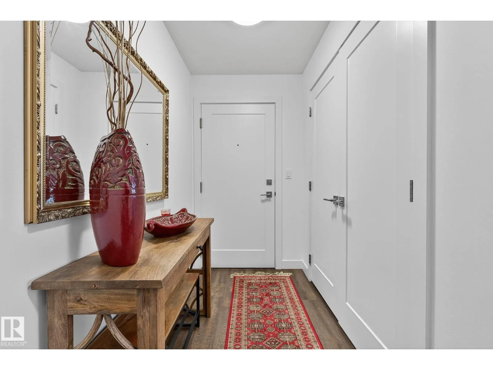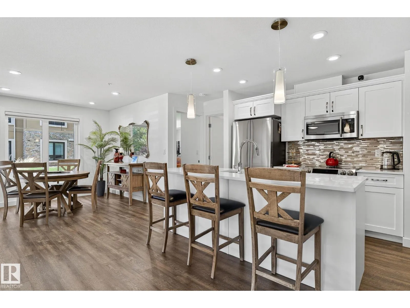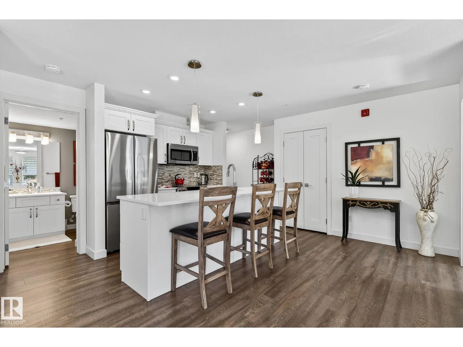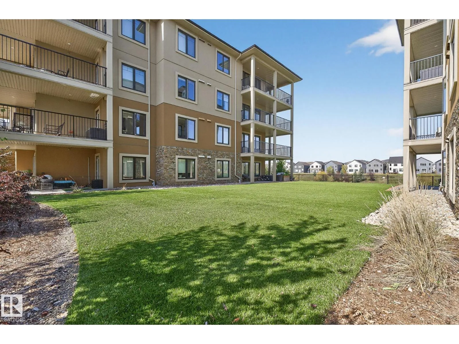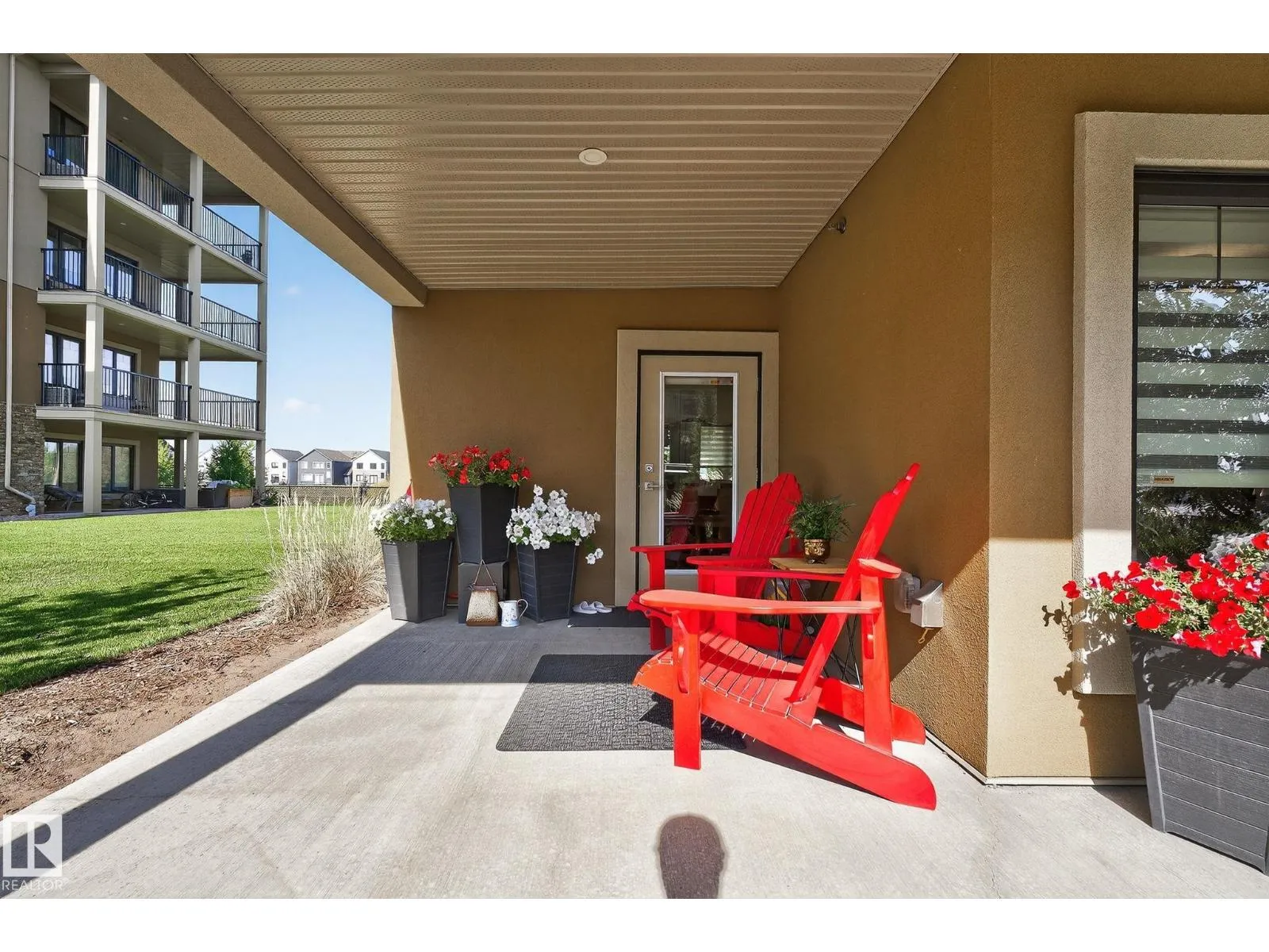 Welcome to this beautifully appointed main floor unit in a well-managed, 18+ condominium complex, offering peaceful pond views and upscale finishes throughout. Step inside to find luxury vinyl plank flooring and cozy in-floor heating. The modern white kitchen features Quartz countertops with large pantry and opens to a bright, spacious living area enhanced by custom window coverings. 2 generously sized bedrooms, 2 full bathrooms, wrap around private corner patio, heated underground parking, and a titled storage unit located on the 4th floor, this home checks all the boxes. Ideally located just steps from Movati Athletic, airport, Windermere golf course, Currents shopping, restaurants, and all other amenities, this is low-maintenance living at its finest! (id:27476)