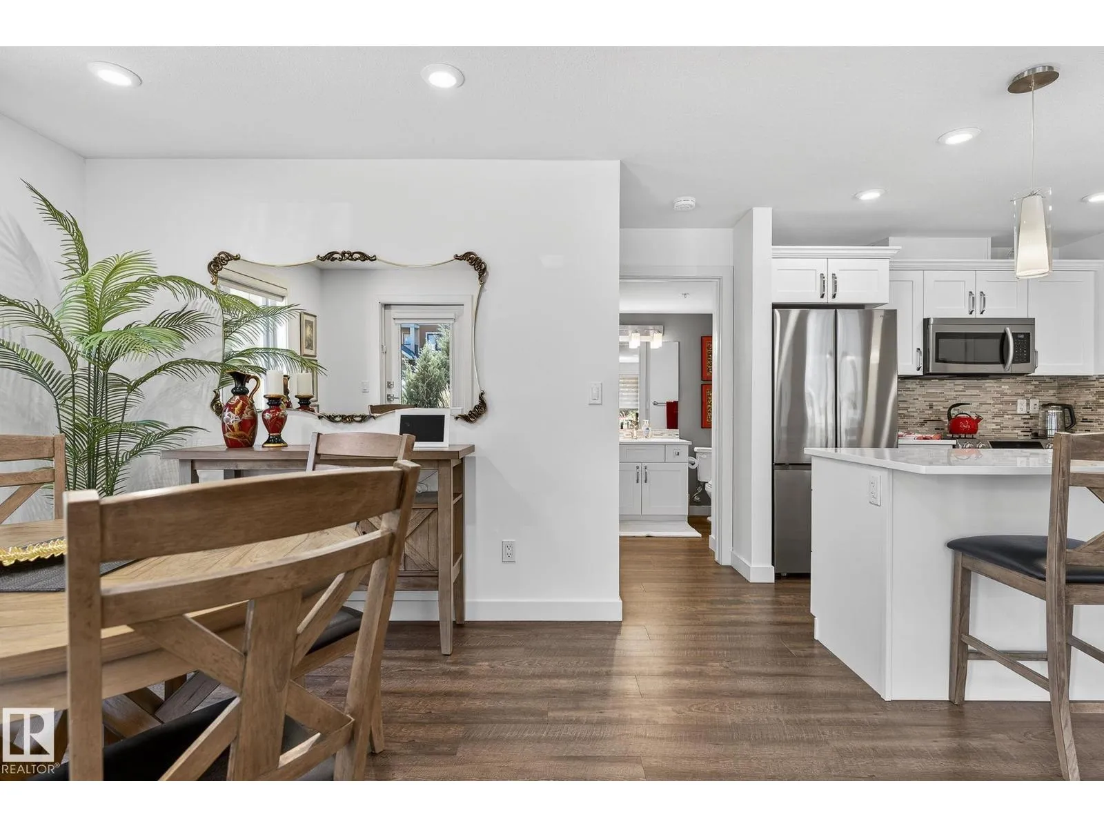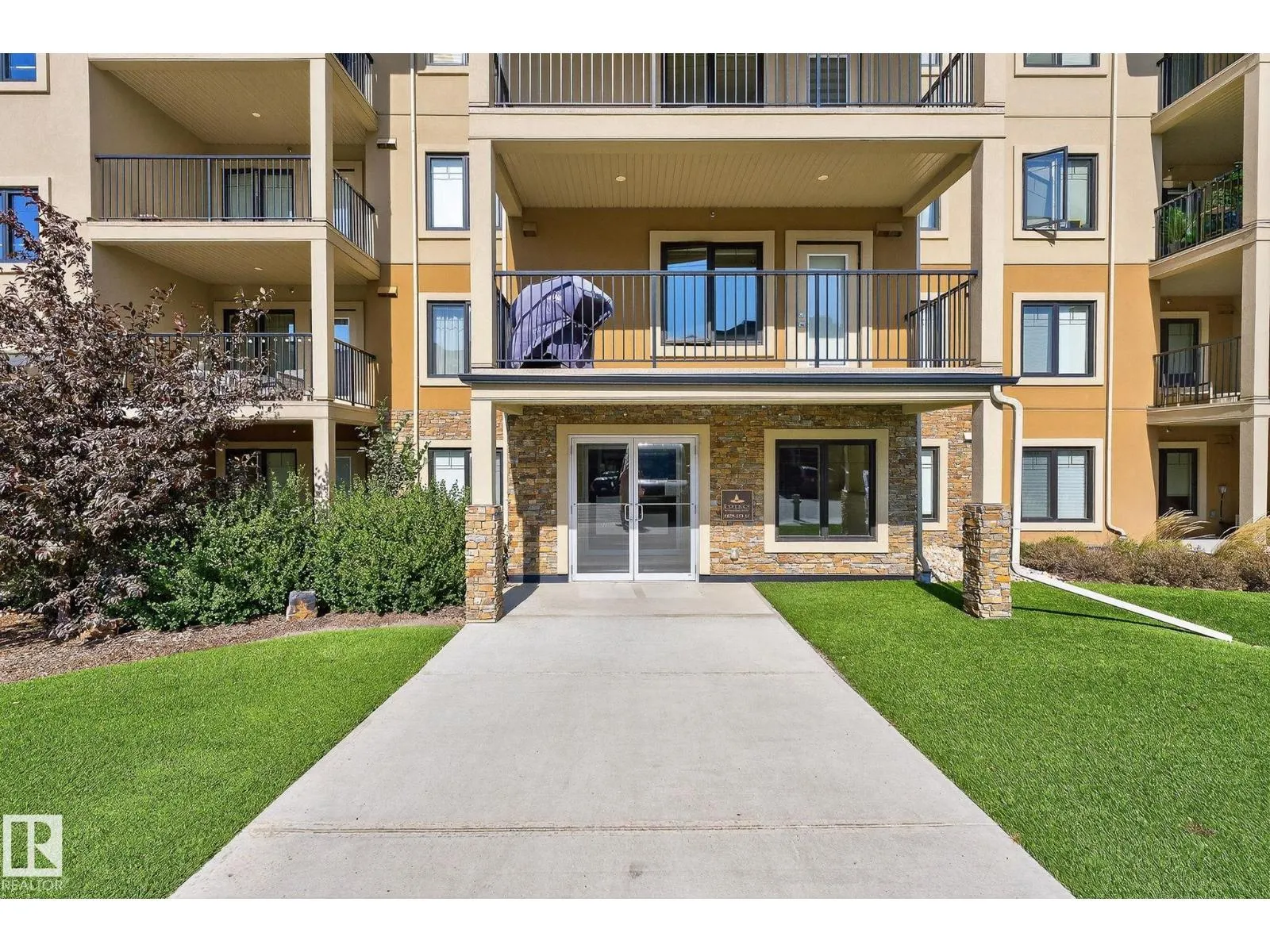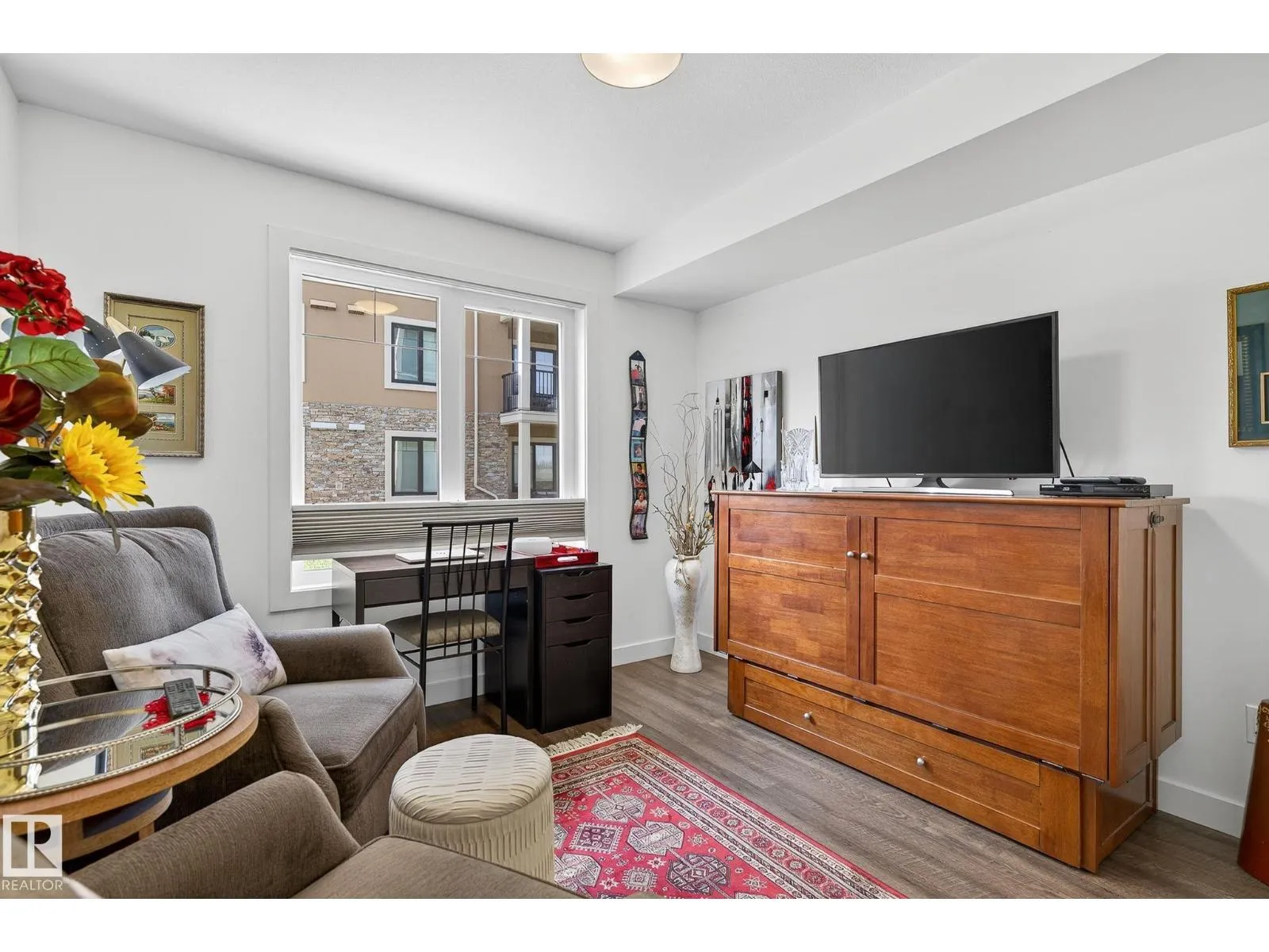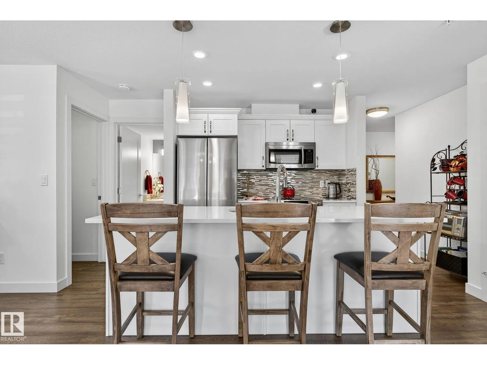 Welcome to this beautifully appointed main floor unit in a well-managed, 18+ condominium complex, offering peaceful pond views and upscale finishes throughout. Step inside to find luxury vinyl plank flooring and cozy in-floor heating. The modern white kitchen features Quartz countertops with large pantry and opens to a bright, spacious living area enhanced by custom window coverings. 2 generously sized bedrooms, 2 full bathrooms, wrap around private corner patio, heated underground parking, and a titled storage unit located on the 4th floor, this home checks all the boxes. Ideally located just steps from Movati Athletic, airport, Windermere golf course, Currents shopping, restaurants, and all other amenities, this is low-maintenance living at its finest! (id:27476)