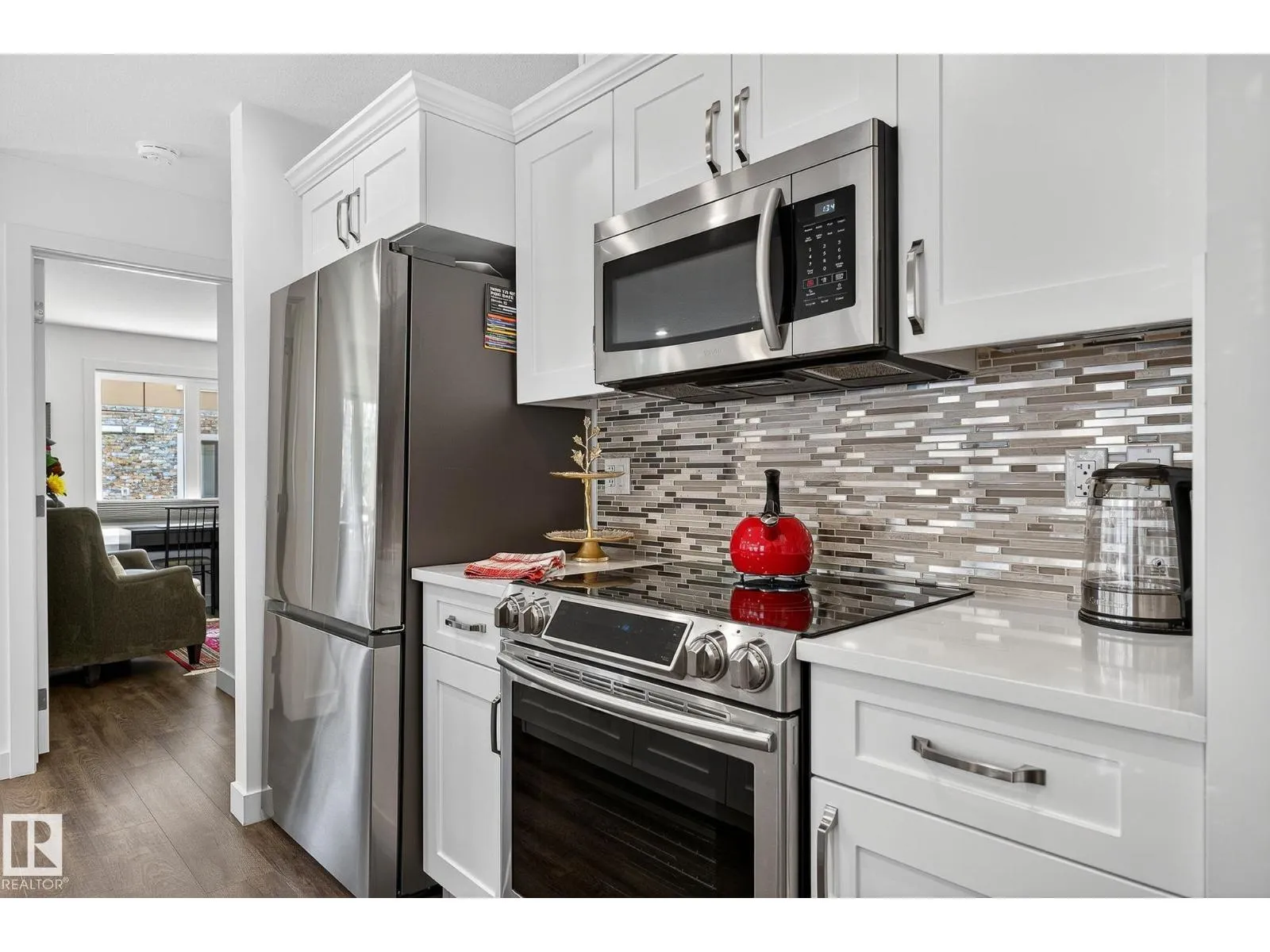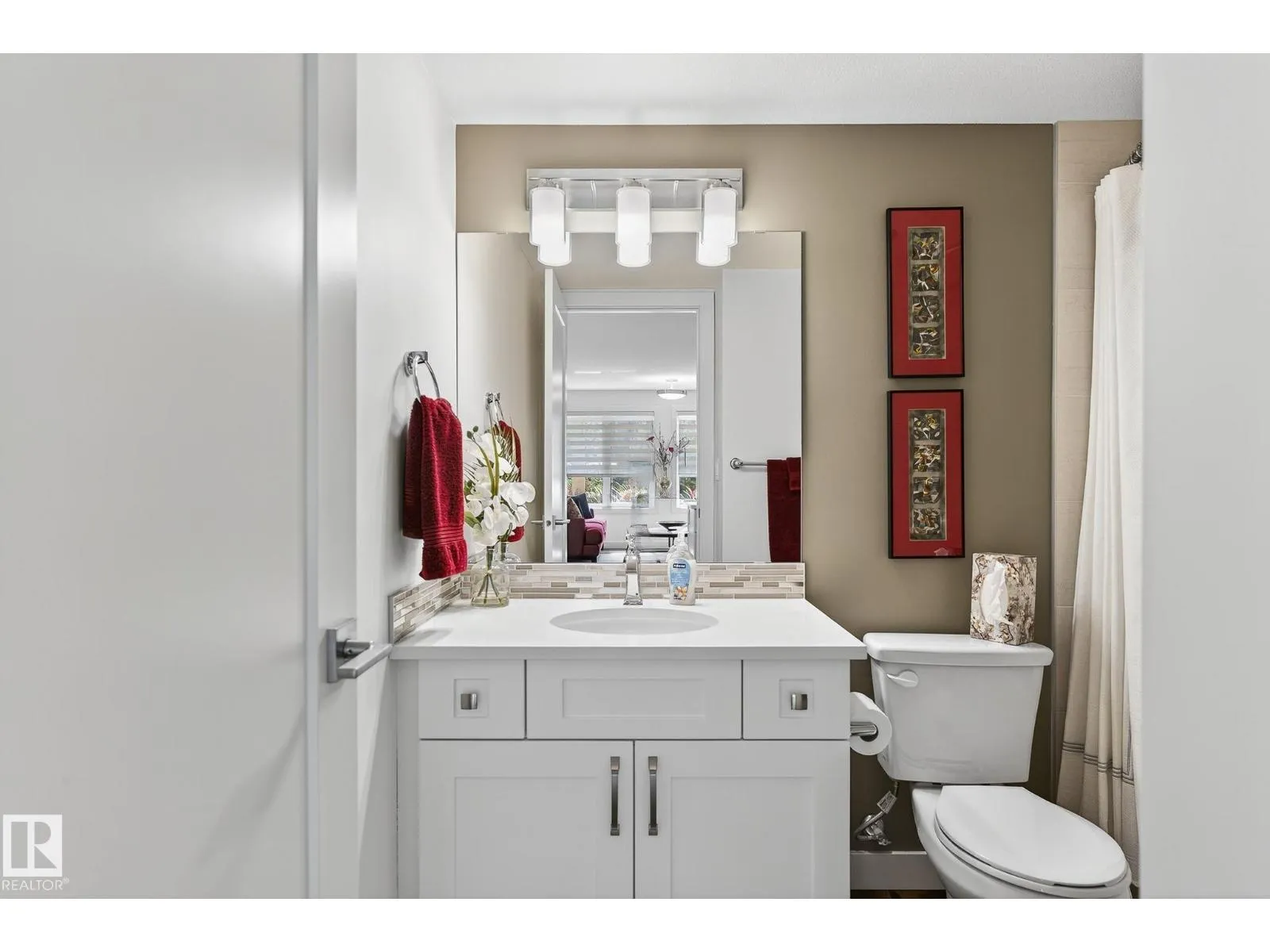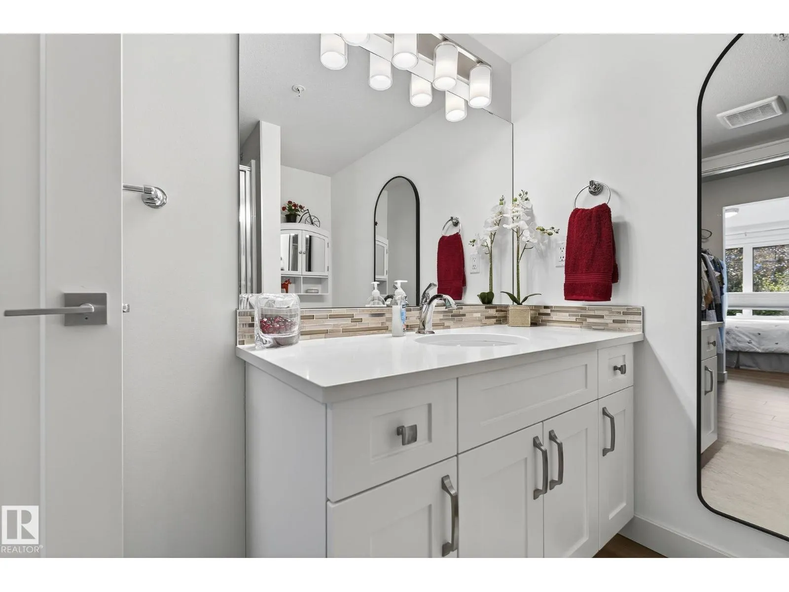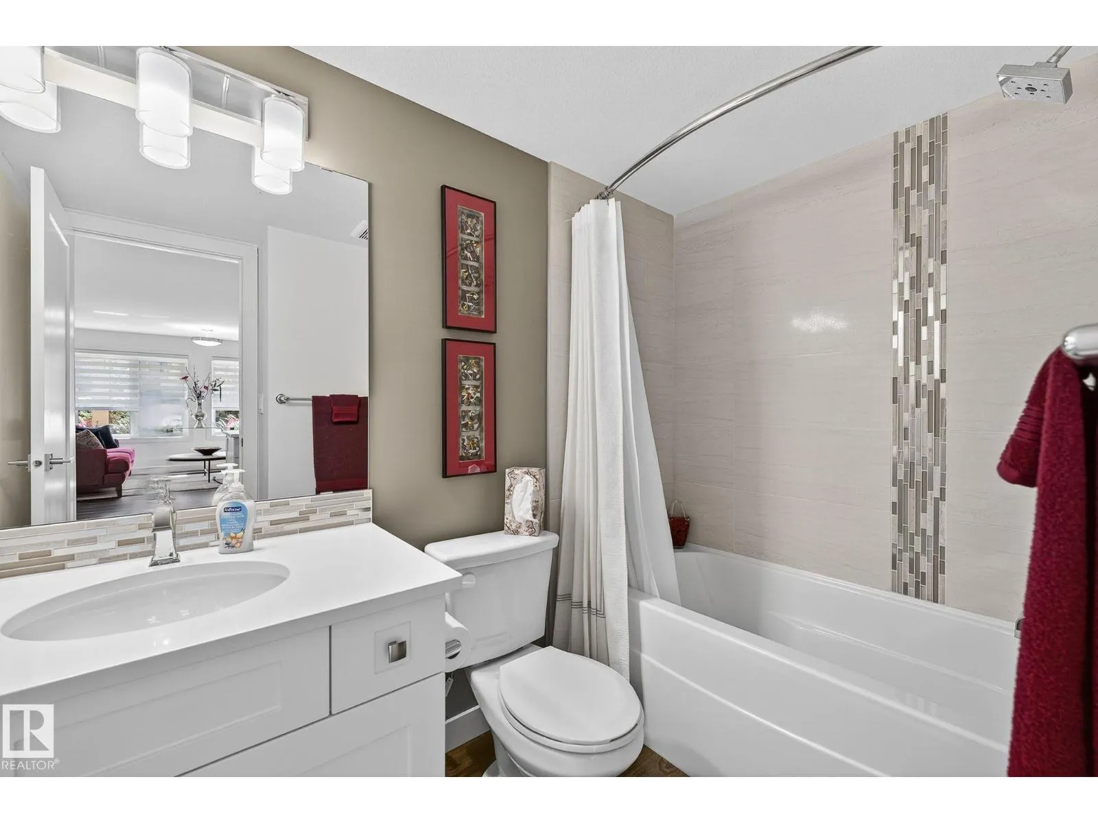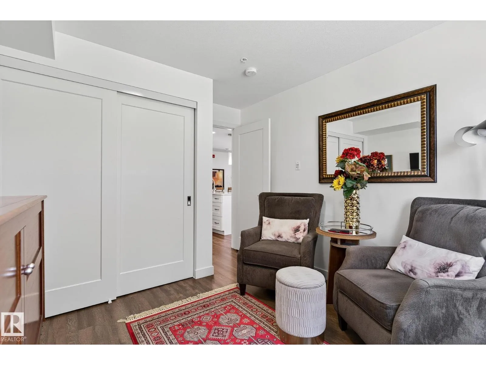 Welcome to this beautifully appointed main floor unit in a well-managed, 18+ condominium complex, offering peaceful pond views and upscale finishes throughout. Step inside to find luxury vinyl plank flooring and cozy in-floor heating. The modern white kitchen features Quartz countertops with large pantry and opens to a bright, spacious living area enhanced by custom window coverings. 2 generously sized bedrooms, 2 full bathrooms, wrap around private corner patio, heated underground parking, and a titled storage unit located on the 4th floor, this home checks all the boxes. Ideally located just steps from Movati Athletic, airport, Windermere golf course, Currents shopping, restaurants, and all other amenities, this is low-maintenance living at its finest! (id:27476)