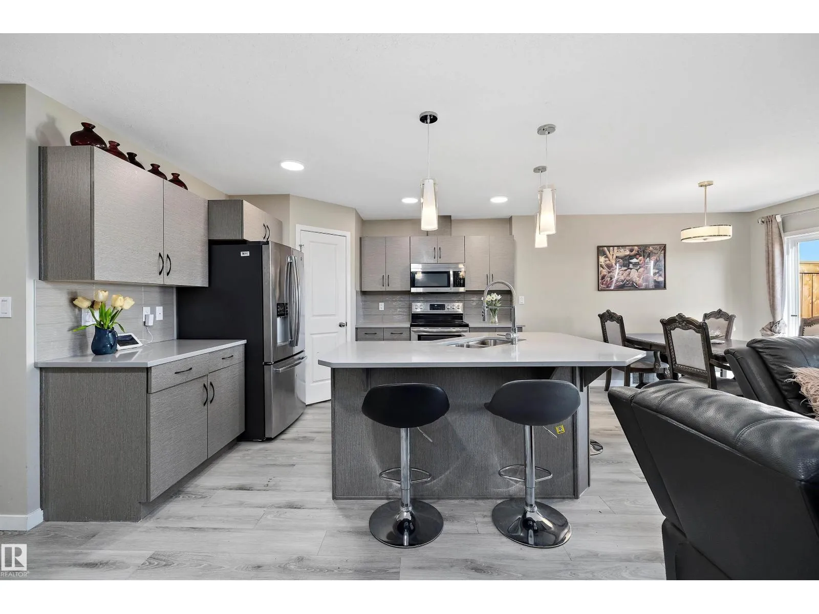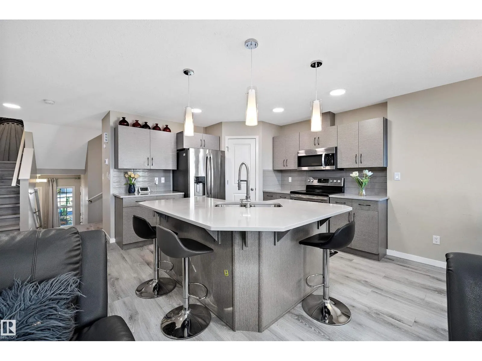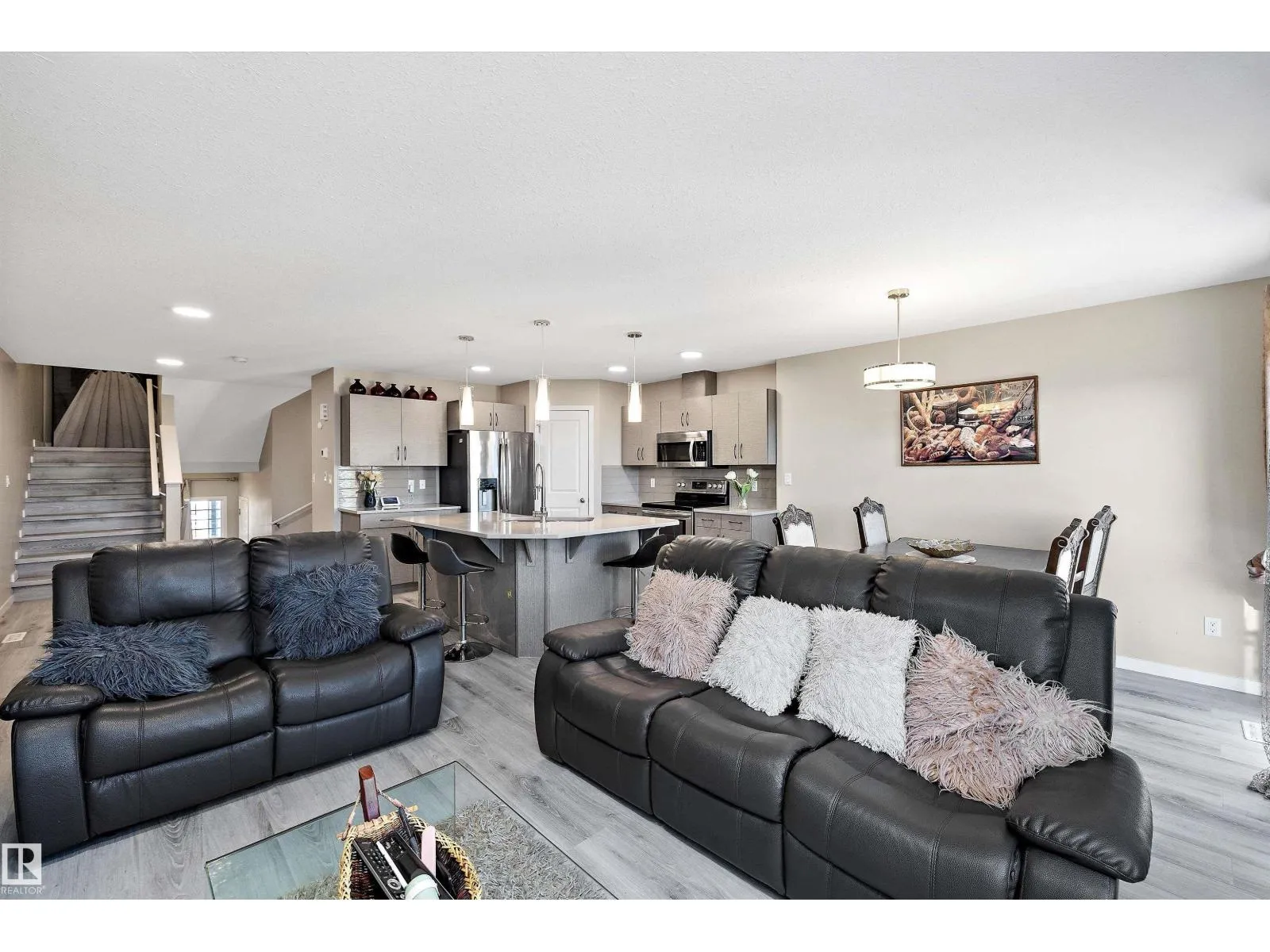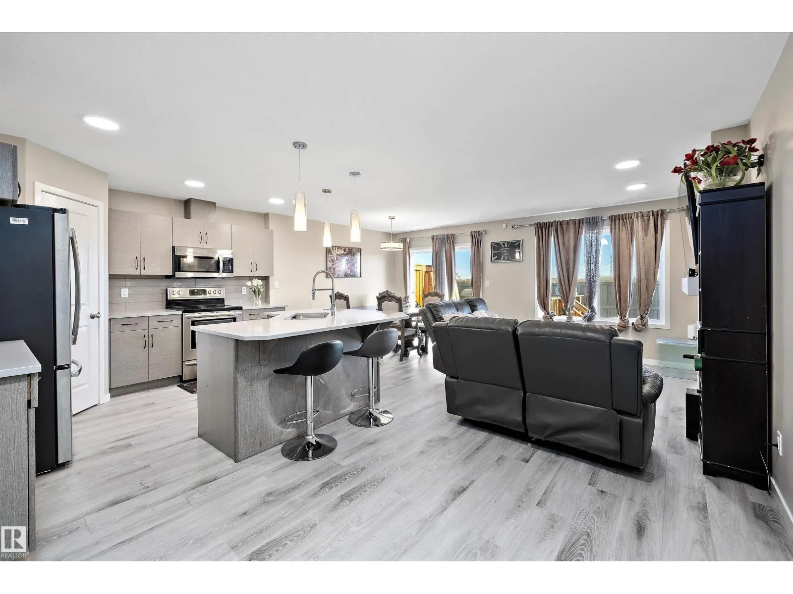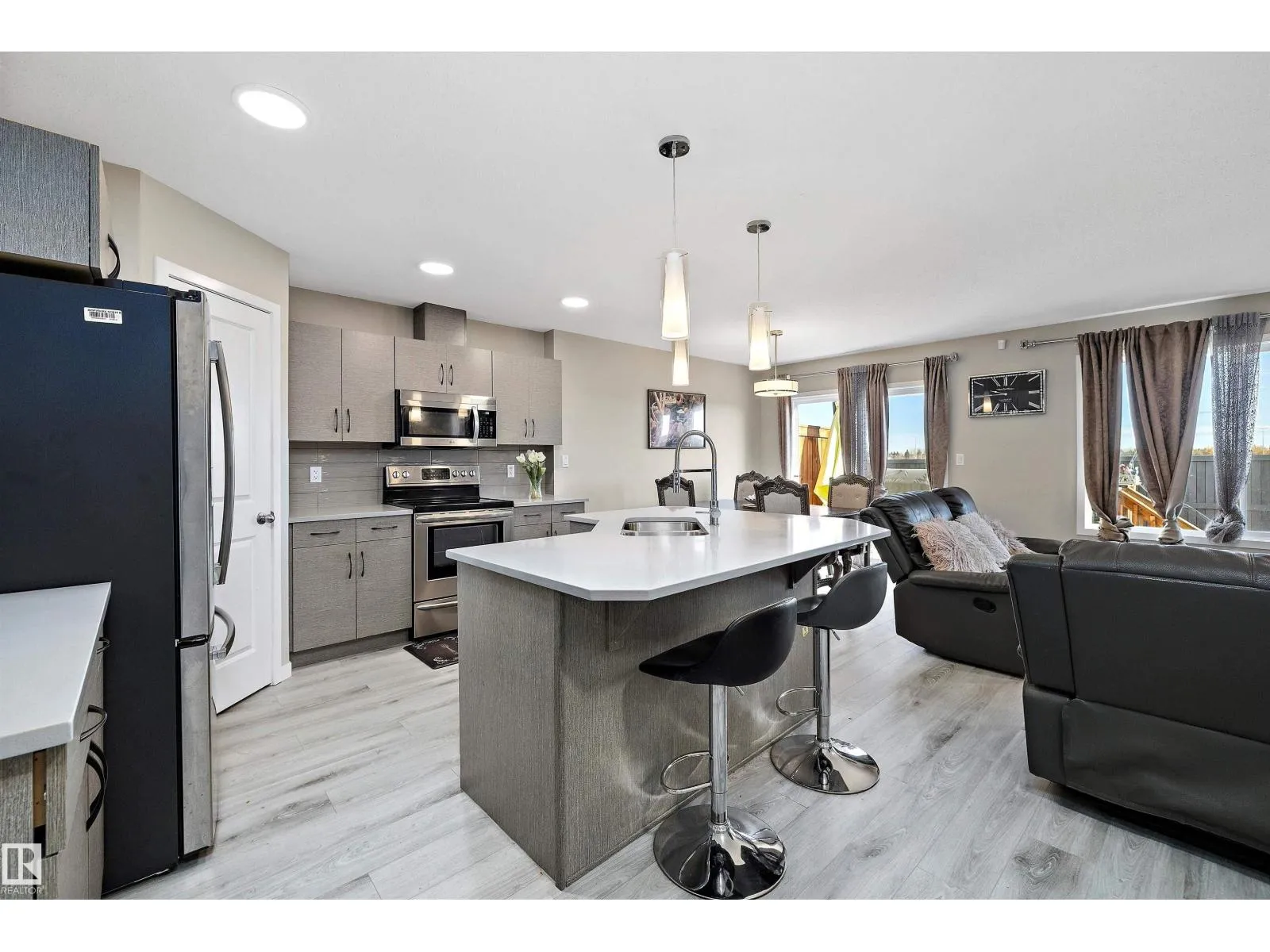 Welcome to this beautiful half duplex in Edgemont! Offering 1,692 sqft of thoughtfully designed living space, this home combines style and functionality in one of Edmontonâs most sought-after communities. The open concept main floor is filled with natural light from the backyard and features quartz countertops, stainless steel appliances, a corner pantry, and a spacious island overlooking the dining and living areas perfect for entertaining or family gatherings. Upstairs, the primary suite is your private retreat with a large walk-in closet and 4 piece ensuite. Two additional bedrooms and a full 4 piece bath complete the upper level. The fully finished basement adds incredible value with a large rec room, a kitchenette ,an additional bedroom, and another full bath, making it ideal for guests, or hobby space. Step outside to enjoy the fully fenced yard with a deck, perfect for BBQs and quiet evenings. Conveniently located near schools, shopping, public transit, and major roadways. (id:27476)