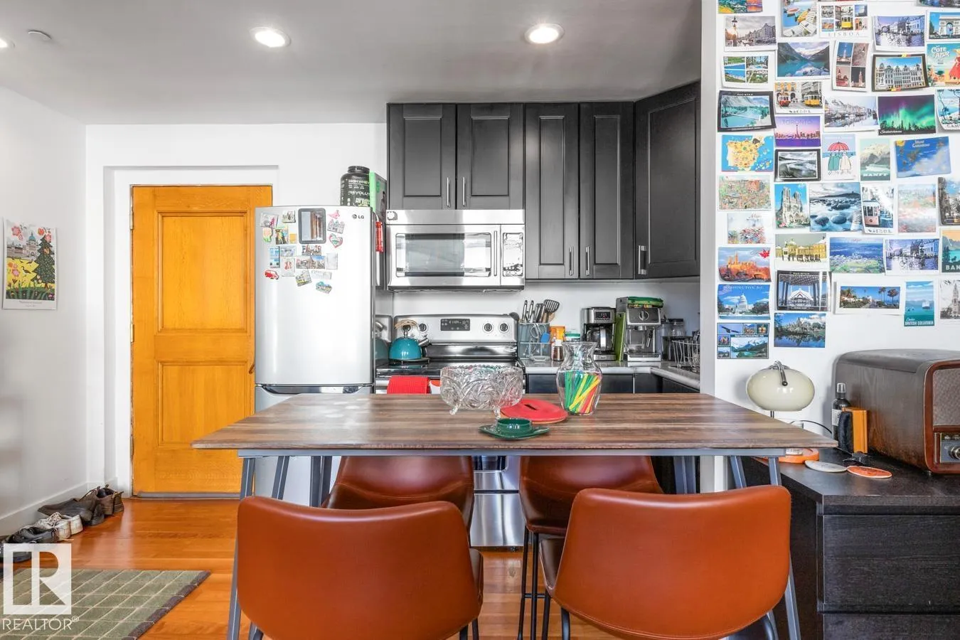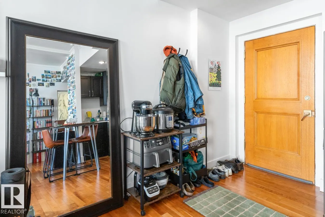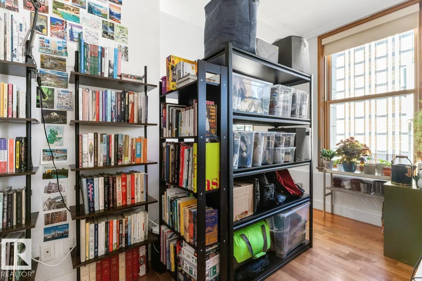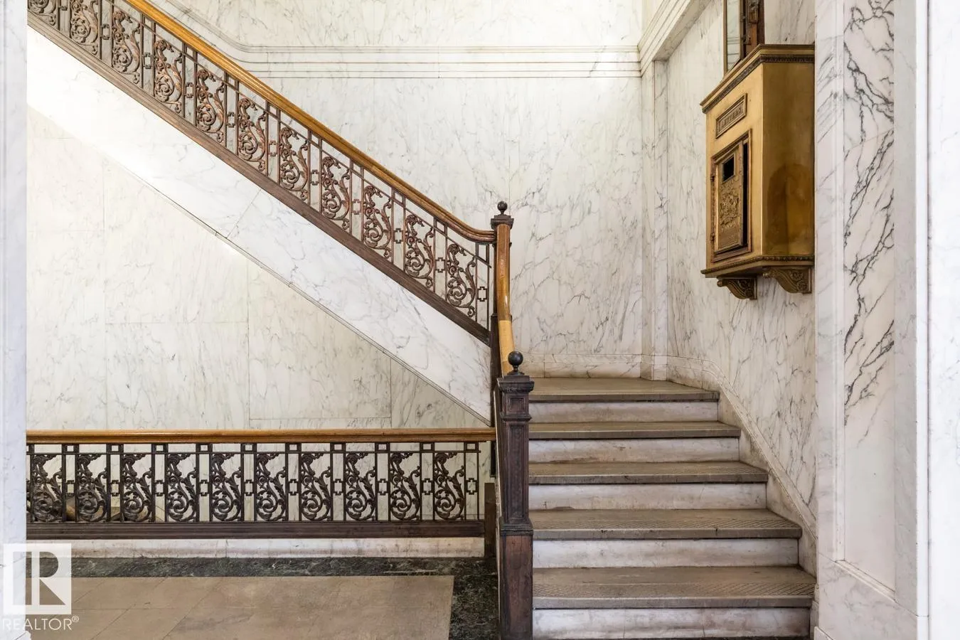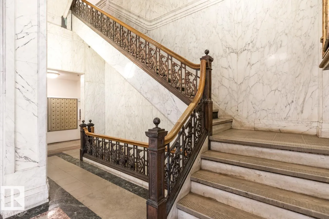 Fabulous top floor loft in the Stunning McLeod Building! Located in the heart of Downtown surrounded by wonderful restaurants, shopping, the Stanley A. Milner library, walking distance to Rogers Place, Sir Winston Churchill Square, the Art Gallery of Alberta plus easy access to public transportation and LRT. The open style floor plan offers beautiful finishes throughout including solid hardwood floors, crown moulding, and a modern style kitchen with stainless steel appliances. The living room and sleeping area are just the right size with large windows allowing for loads of natural light. This well maintained building has a convenient laundry facility and bike storage area. The original lobby has elegant finishes including marble throughout. A great opportunity as a primary or rental residence! (id:27476)