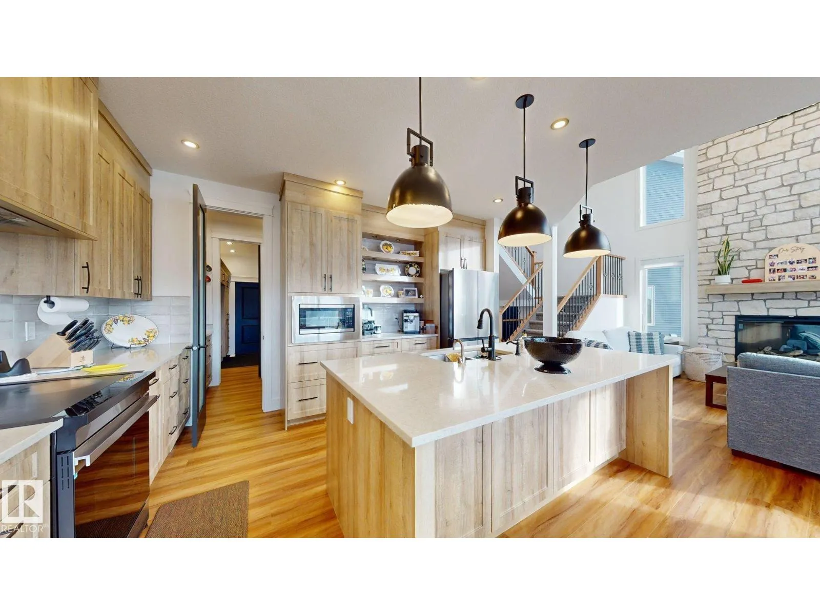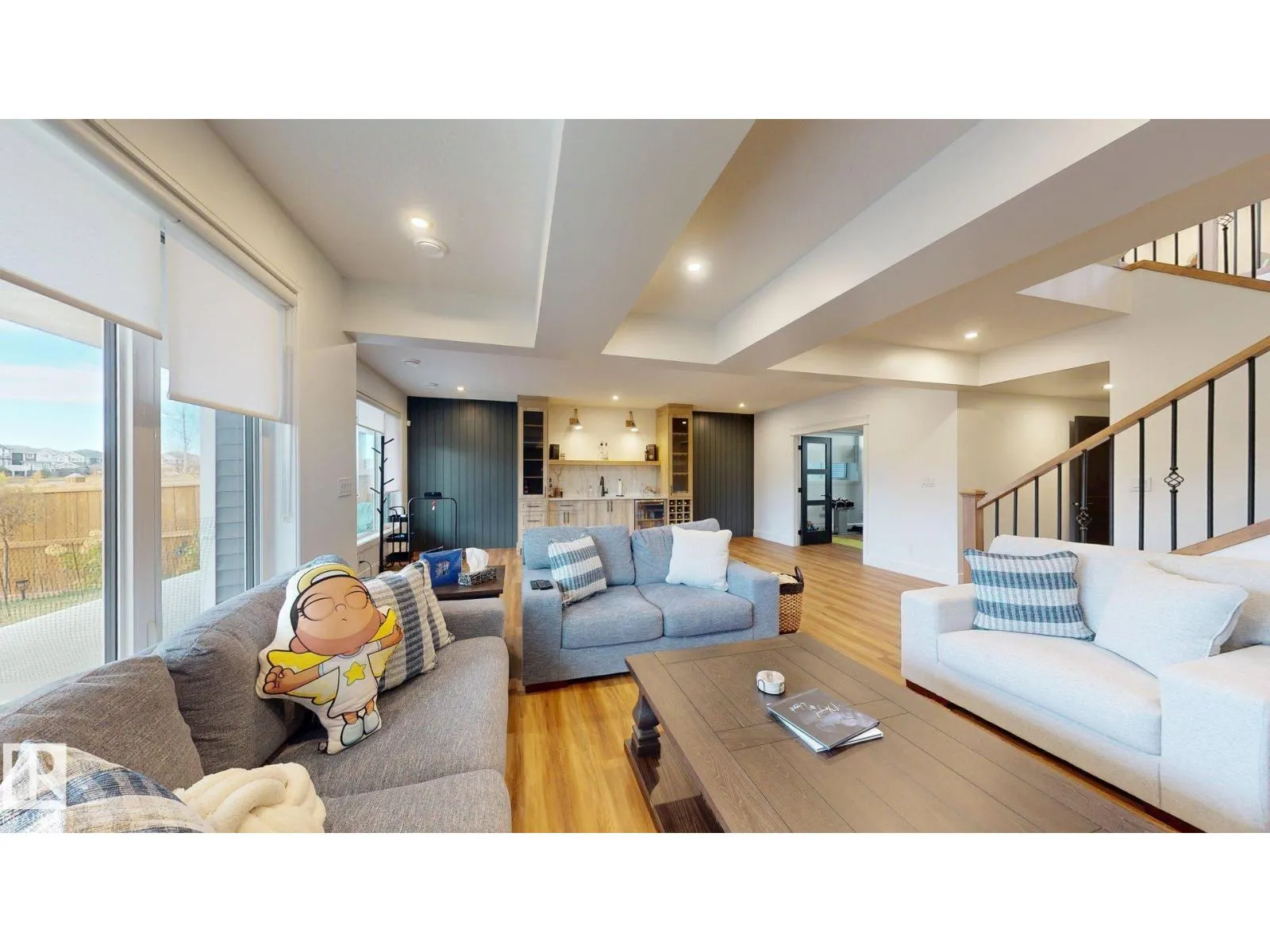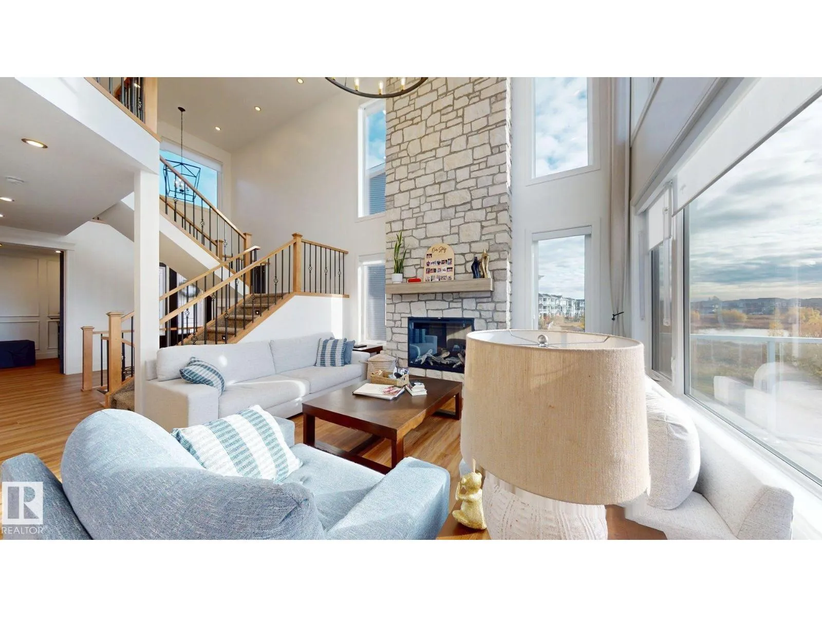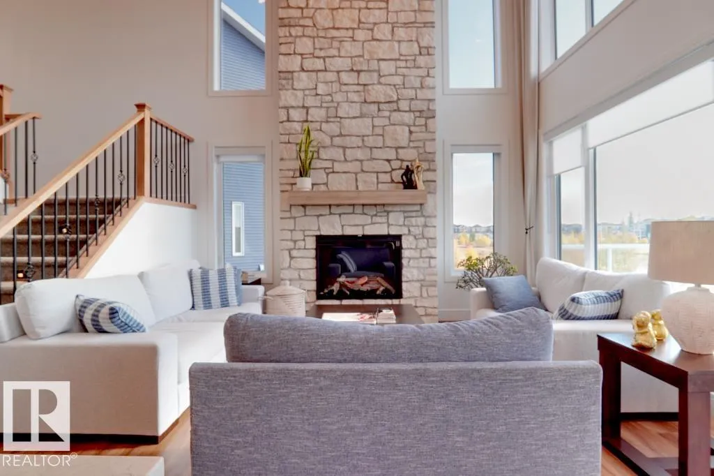 Welcome to this absolute showstopper in the heart of Glenridding Ravine, Southwest Edmonton! This custom-built walkout home backs onto a tranquil pond and offers modern luxury at every turn. The open-concept floor plan features soaring ceilings, expansive windows, and abundant natural light. Main floor includes a versatile office/bedroom with a full 3-pc bath, a mudroom with a dog wash, and a walkthrough pantry leading to a chef-inspired kitchen overlooking a massive deck and stunning pond views. The great room showcases a feature wall fireplace with stone to the ceiling and designer lighting throughout. Upstairs offers 3 spacious bedrooms plus a flex room â the primary retreat includes a cozy fireplace and a spa-like 5-pc ensuite. The fully finished walkout basement is perfect for entertaining, complete with a rec room, gym, 3-pc bath, and access to a private pie-shaped yard. Close to top schools, shopping, parks, and trails â this home truly has it all! (id:27476)