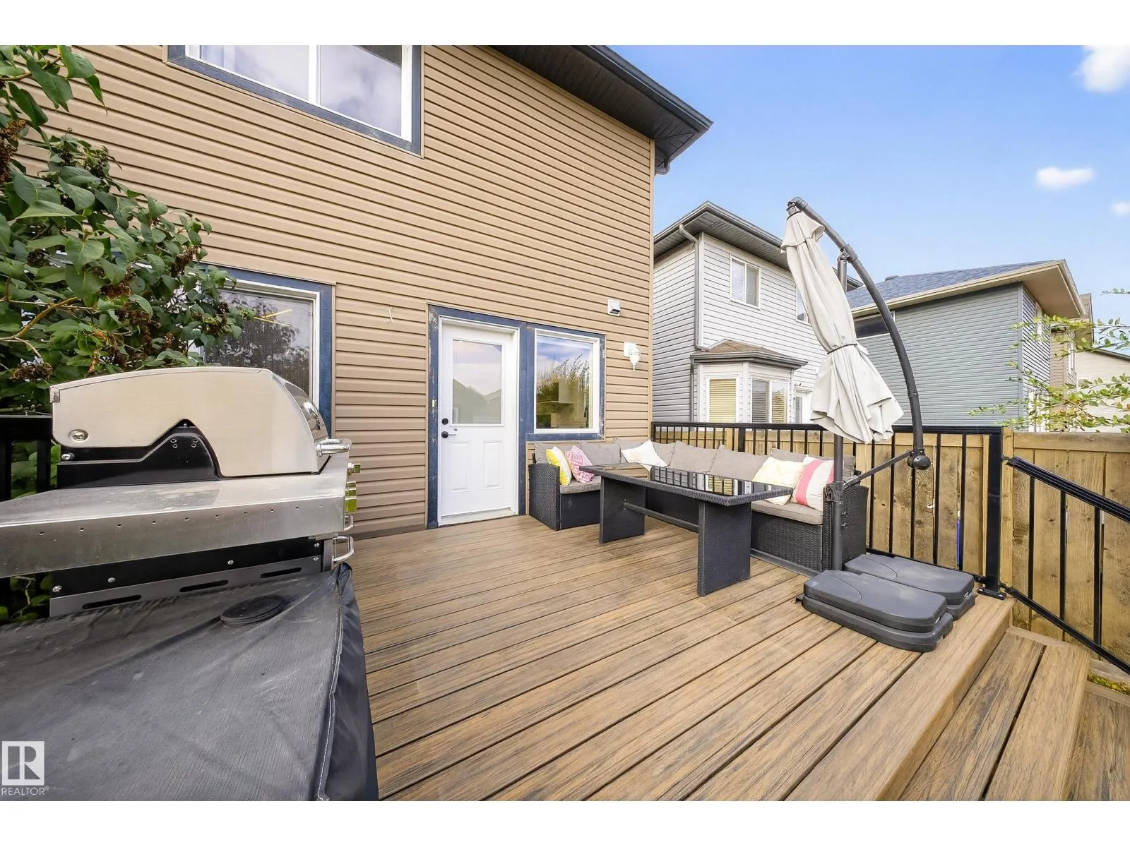 Welcome to this beautifully maintained home in the family-friendly community of Tamarack! This inviting property features an open-concept main floor with a bright living room, spacious dining area, and a stylish kitchen with quartz countertops, sleek black appliances, and an island perfect for entertaining. Enjoy the convenience of main floor laundry room and a 2 pc powder room. Upstairs, youâll find three generous bedrooms, including a primary suite with a walk-in closet and private ensuite. Walk downstairs and you'll be greeted by a fully finished basement offering extra living space, plus a den/bedroom, 3 pc bathroom, and a utility room. Outside, relax on the deck overlooking the landscaped yard with a double detached garage. Ideally located near schools, parks, shopping, and public transitâthis home is move-in ready and perfect for growing families! (id:27476)