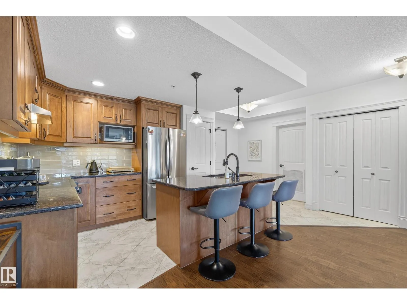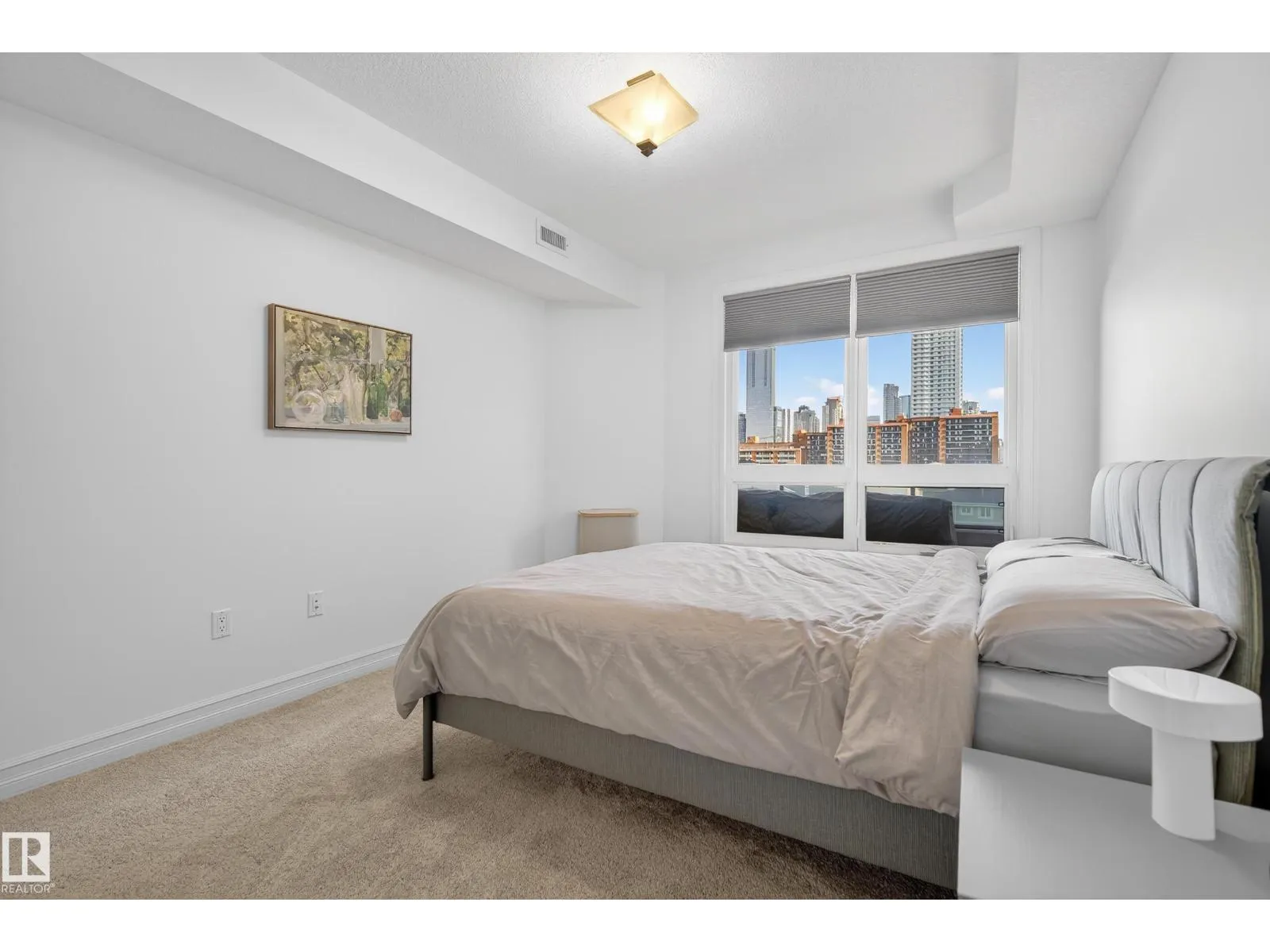 Located in Meridian Plaza, this 2 bed 2 bath condo is MOVE IN READY! The beautifu kitchen showcases solid wood Delton cabinetry topped with GRANITE countertops, a large island, and brand NEW electric stove (2025), dishwasher (2025), window coverings (2025) and fresh paint! The bright open living room features engineered hardwood floors, electric fireplace, & unobstructed downtown views! Enjoy summer evenings on the large patio equipped with a gas BBQ hookup. The primary suite offers a spacious walk-in-closet with built-ins & a luxurious 5 pc ensuite! The 2nd bedroom is generously sized with more city views & a walk-in-closet. Additional highlights include A/C, title underground parking, & in-suite laundry. Meridian Plaza offers exceptional amenities - fitness centre, owners lounge, guest suite, impressive atrium, and event space. Perfectly located within walking distance to everything downtown--restaurants, shopping & public transportation. The perfect property that blends comfort, style & convenience! (id:27476)
