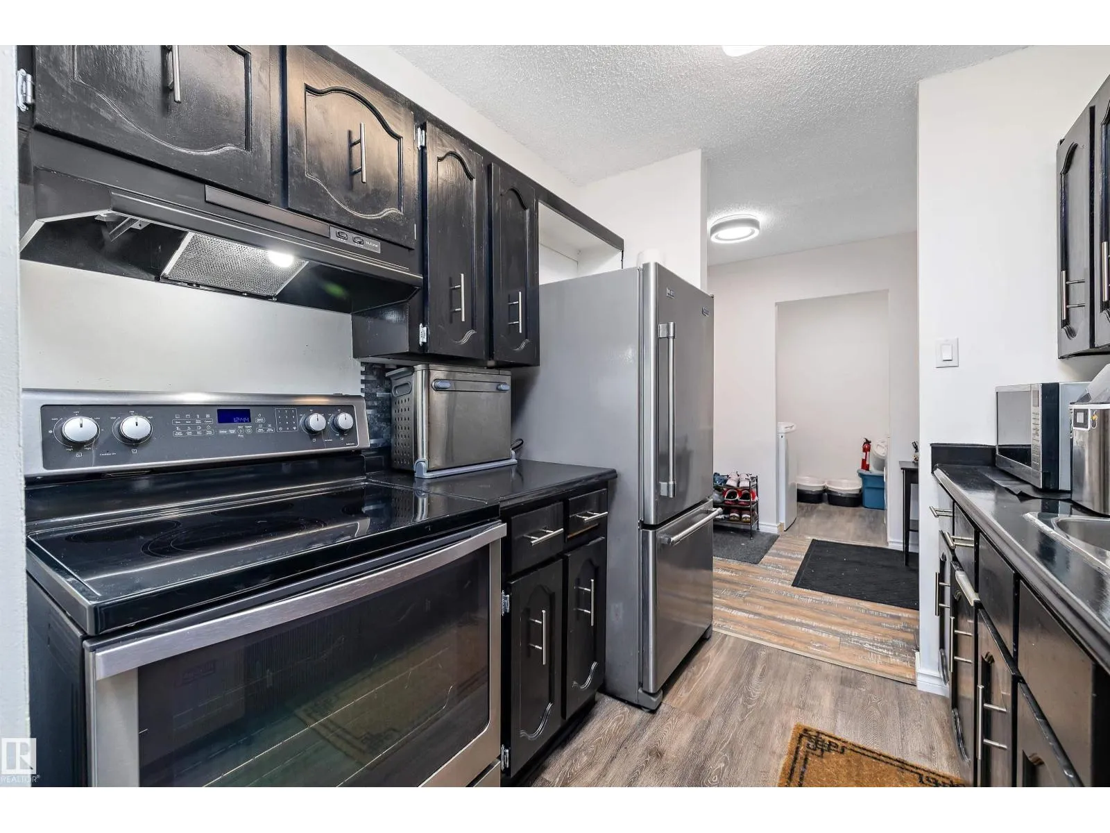This beautifully maintained suite features a stainless steel stove, hood fan, and full-size refrigerator in a bright, functional kitchen. The large separate dining area flows seamlessly into a spacious living room with patio doors leading to a private balconyâperfect for relaxing or entertaining. This condo offers two generously sized bedrooms, including a second bedroom with private access to the patio/deck. The primary bedroom is conveniently located next to the full 4-piece bathroom. Enjoy modern LED lighting throughout and the comfort of living in a PET-FRIENDLY building. Located in a quiet, well-managed complex, residents enjoy direct access to Whitemud Drive and ETS routes to both the University of Alberta and Southgate Mall. The River Valley walking and biking trails are right outside your door, and youâre within walking distance of Kâ9 schools and local shops. (id:27476)