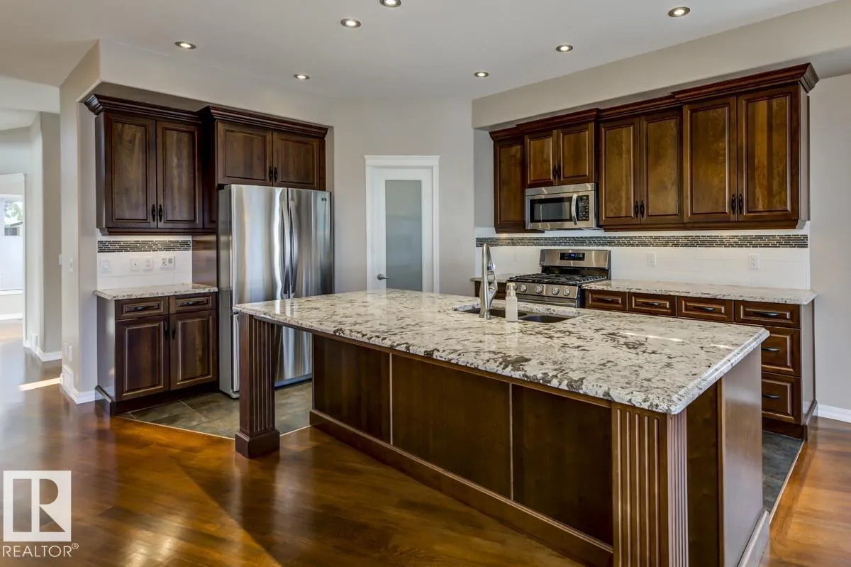 ONE OF A KIND CUSTOM-BUILT GEM IN HIGHLANDS! This exceptional fully finished 2-storey blends timeless elegance with modern comfort. The main floor showcases 9ft ceilings, hardwood flooring, a private office, and a chefâs kitchen with walk-through pantry, granite countertops, stainless appliances, gas stove, and a large islandâideal for daily living and entertaining. The open-concept layout flows into a welcoming living area with a cozy gas fireplace. Upstairs offers a vaulted bonus room, an expansive primary suite with spa-inspired 5pc ensuite and walk-in closet, a second spacious bedroom, full bath, and convenient upper laundry. The finished basement includes a wet bar, large rec room, full bath, bedroom, and ample storage. Enjoy the west-facing composite deck for evening sun, or unwind in the aggregate patio lounge area beneath the comfort of a gazebo. Additional highlights: A/C, water softener, oversized heated garage, ICF foundation, cement fiber siding, and multi-zone sound system. (id:27476)