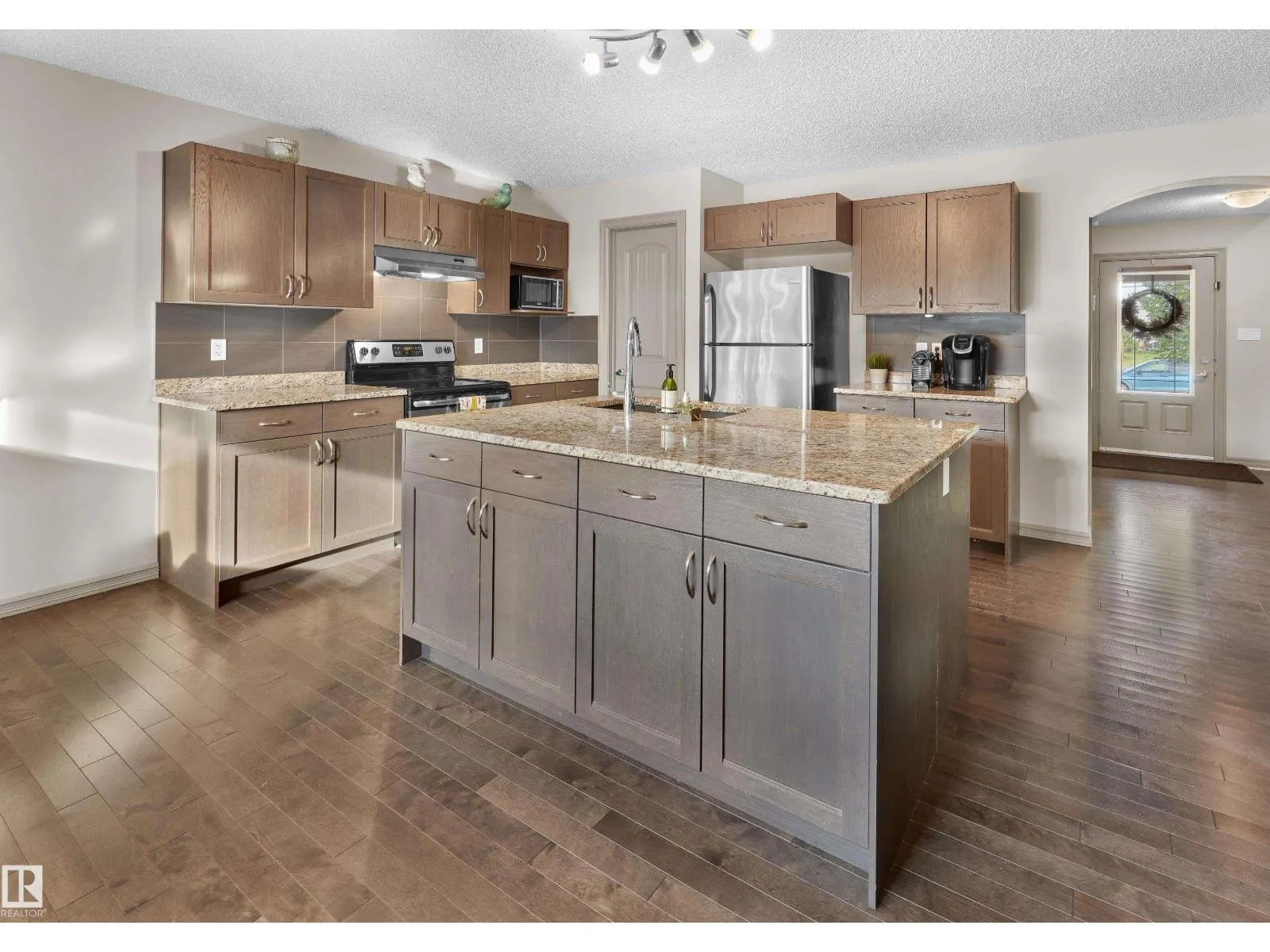 Move-in ready and beautifully maintained, this 1,645 sq ft home in the family-friendly community of Glenridding Heights offers style, comfort, and efficiency. A charming front veranda facing a greenspace with a pond is perfect for place to sit and enjoy a coffee. Featuring 3 bedrooms and 2.5 bathrooms, the home showcases quality upgrades throughout, including engineered hardwood floors on the main level. The modern kitchen is a standout, with stainless steel appliances, granite countertops, a spacious island with extra built-in cabinets, a corner pantry, and plenty of prep space. Upstairs, the generous primary suite includes a walk-in closet and a 4-pc ensuite. Two additional bedrooms, a full 4-pc bathroom, and convenient upstairs laundry complete the second level. The energy efficiency property includes triple-pane windows and hot water on demand. Step out the west-facing back door onto a deck, ideal for BBQs and relaxing, in a fully fenced and landscaped yard, complete with a detached double garage. (id:27476)