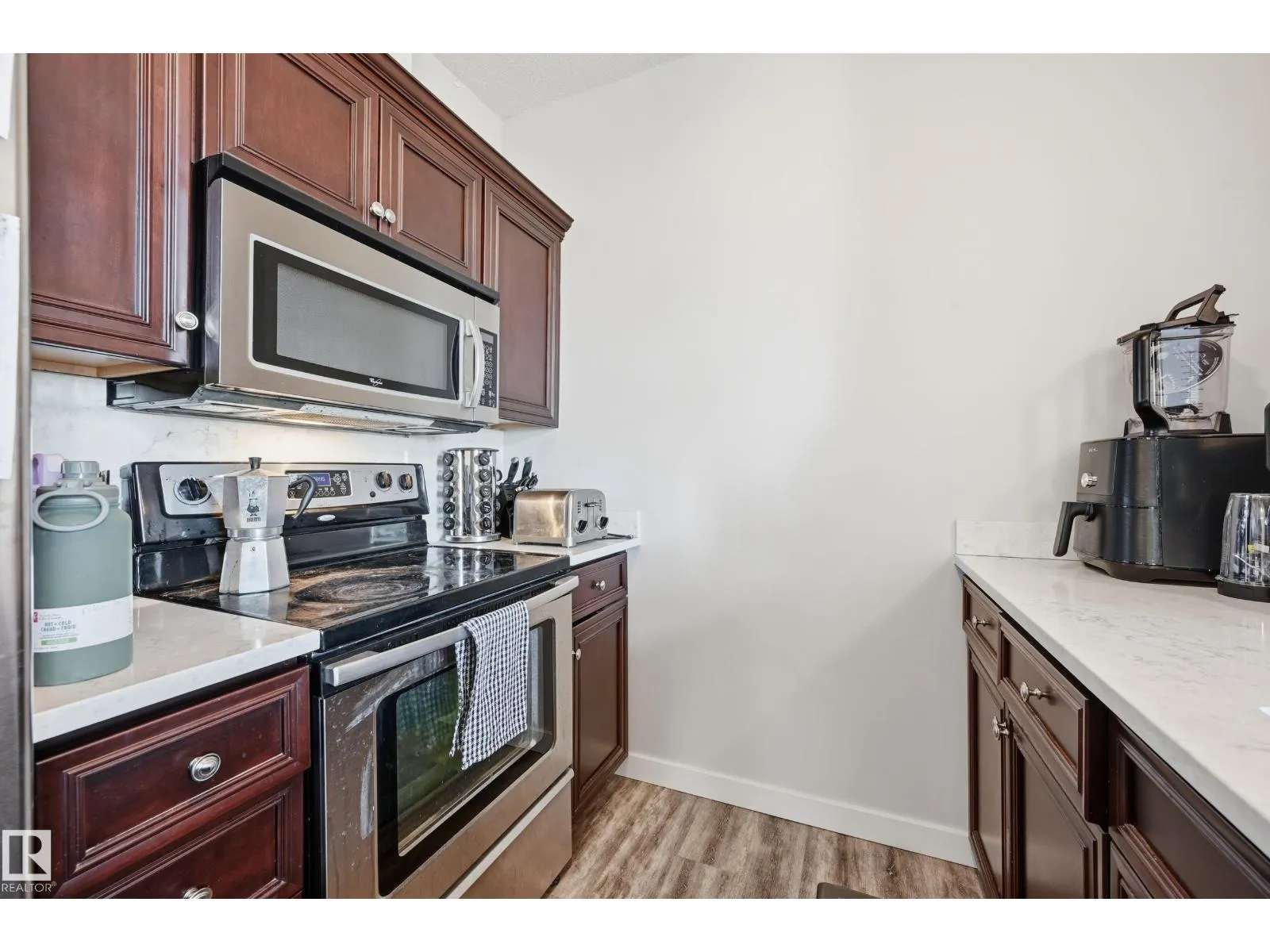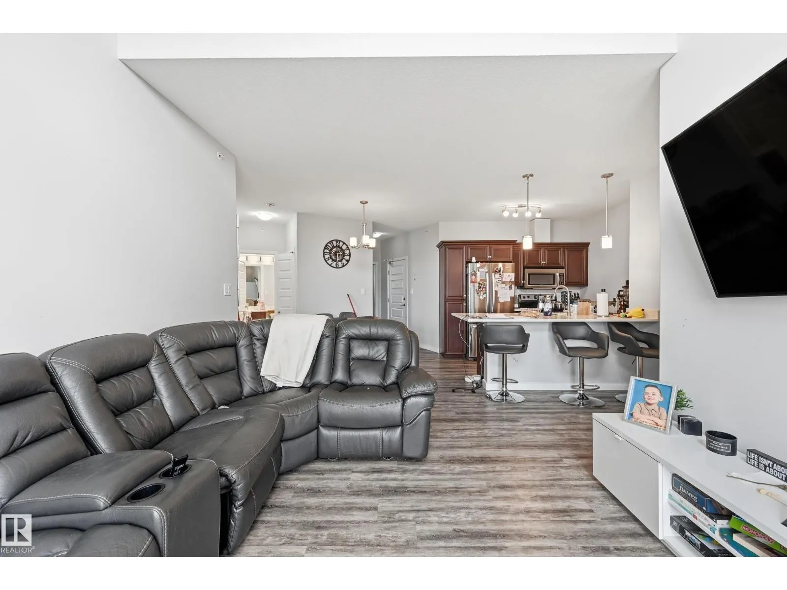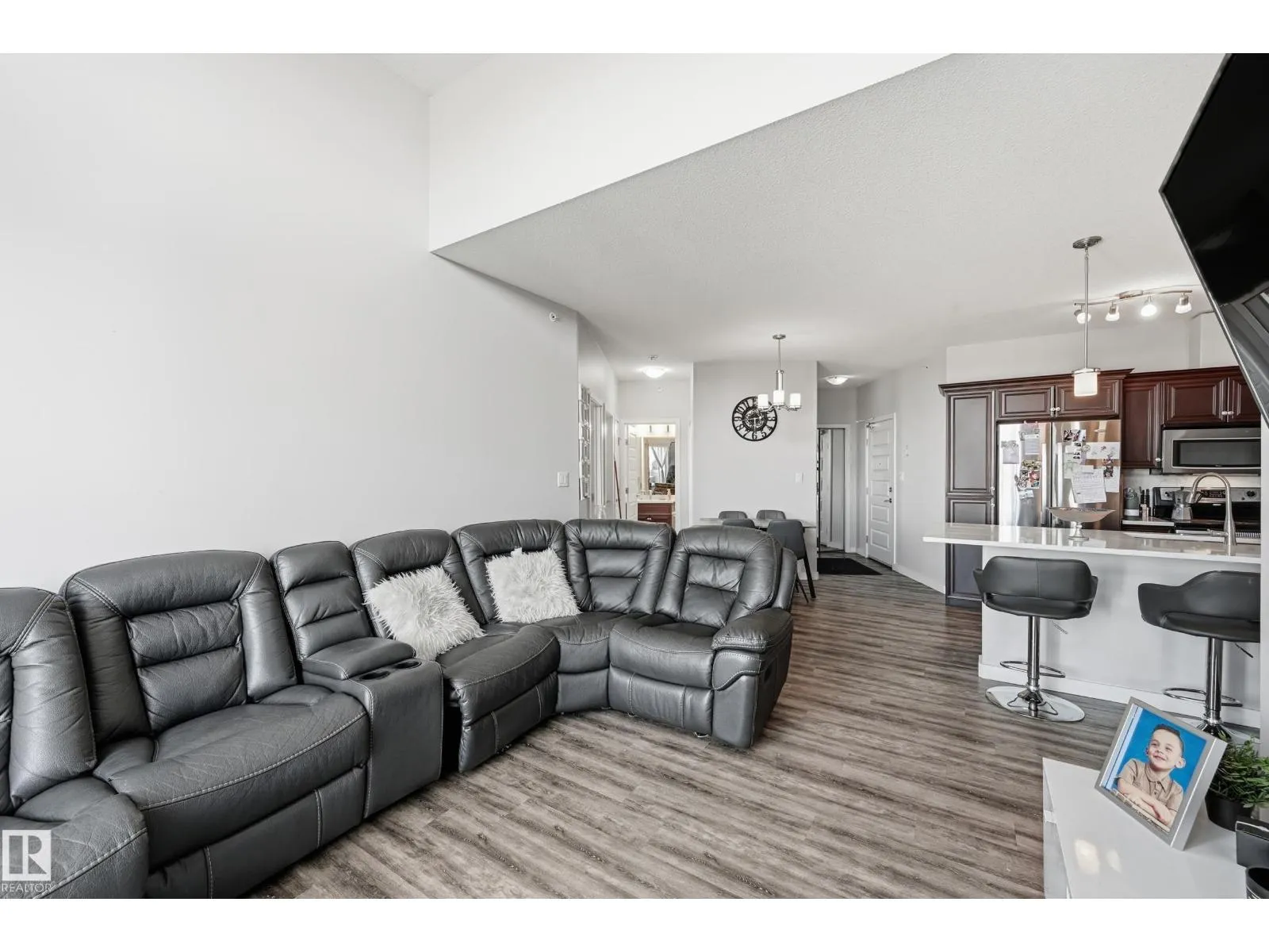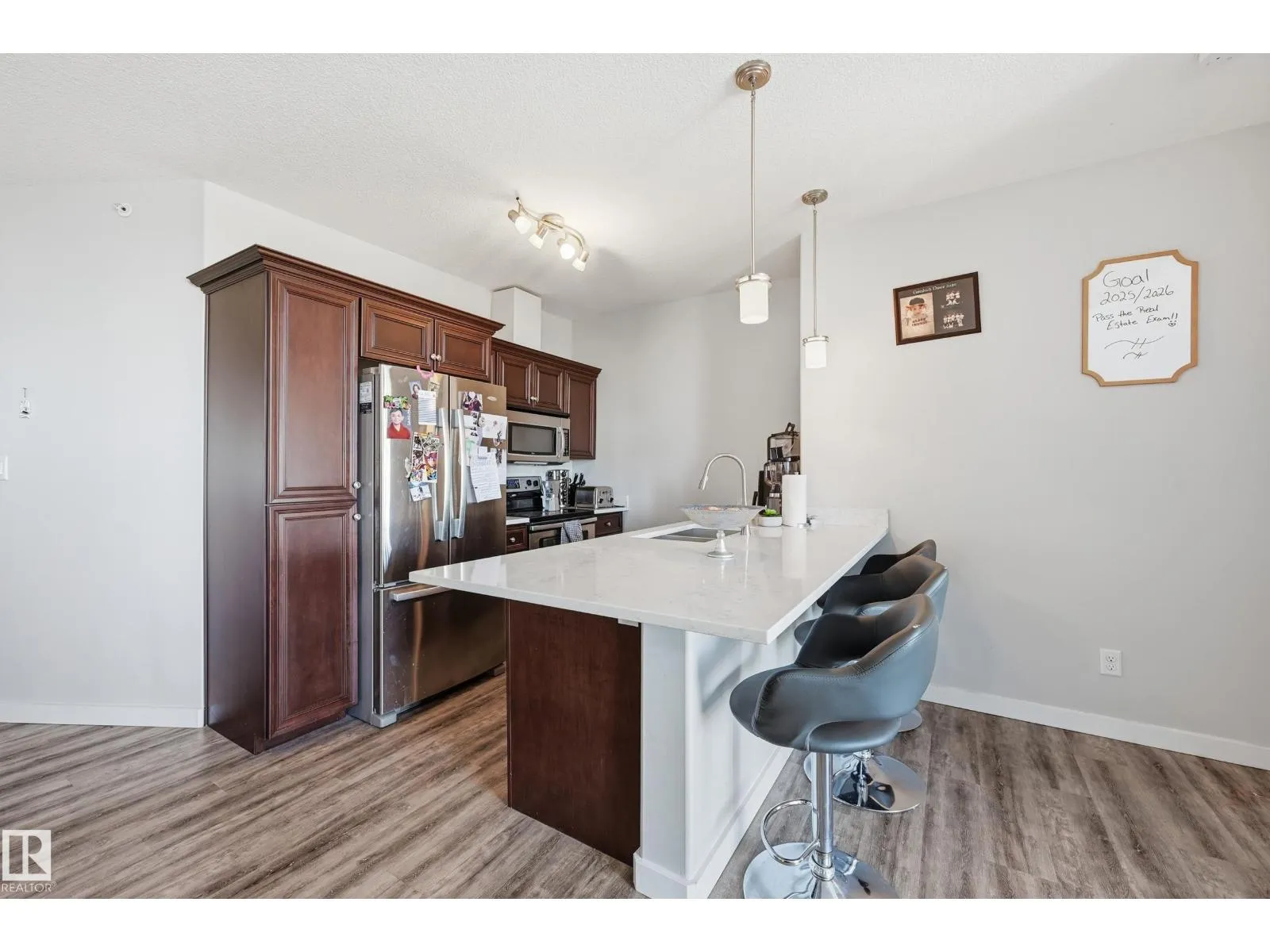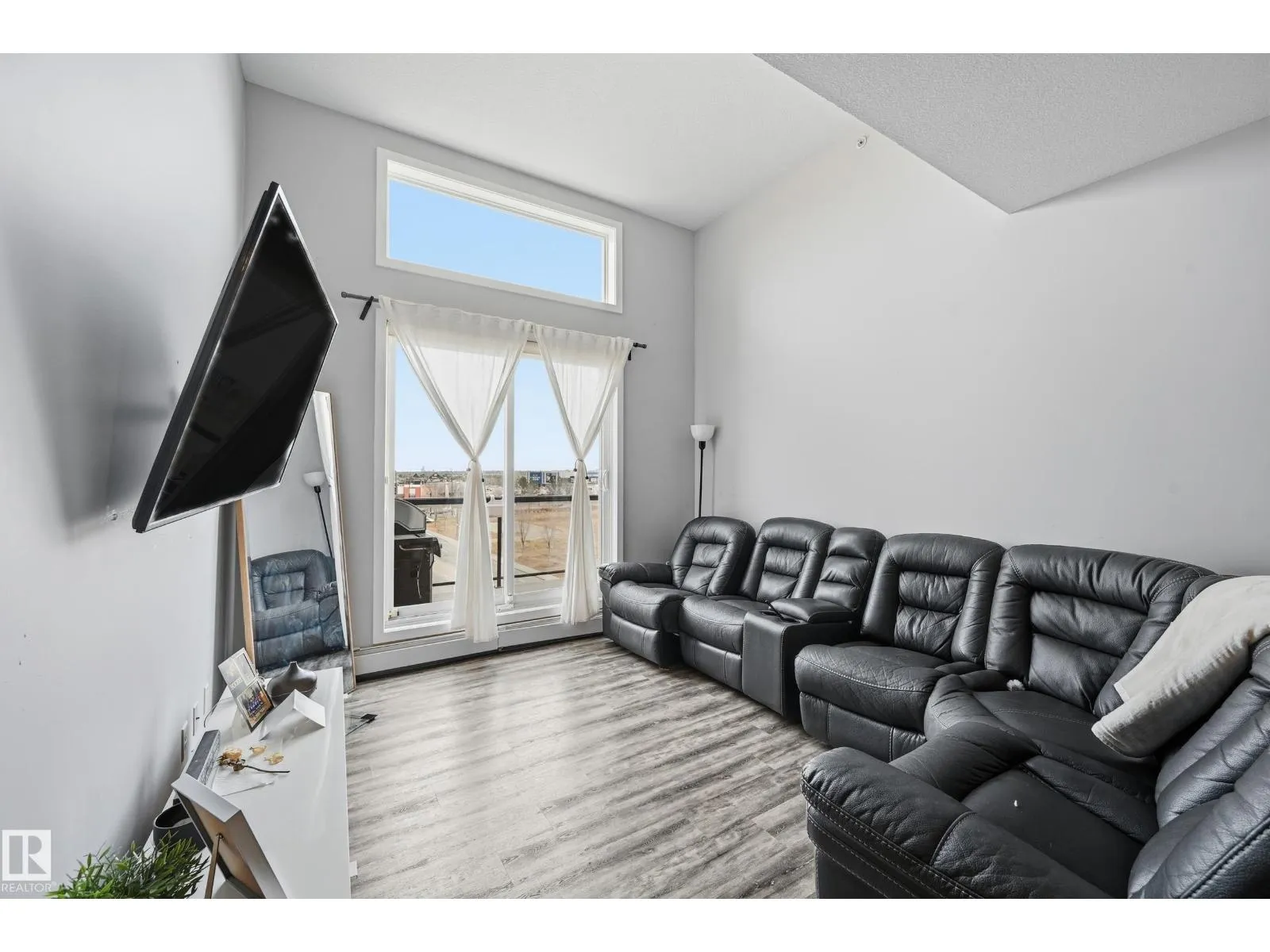 Executive Top Floor Corner Unit with 3 Bedrooms, and 2 Parking Stalls. Welcome to LâAttitude Studios where modern design meets executive living! This rare top-floor corner unit offers an Open Concept layout with Soaring 17 Foot ceilings in the living room, with floor to ceiling windows that flood the space with natural light. This home is loaded with upgrades including high-end flooring, quartz countertops in the kitchen, and bathrooms. The chefâs kitchen is an entertainerâs dream with a massive peninsula island, rich espresso cabinetry, and stainless steel appliances. The Master suite includes a walk-through closet leading to your Full Bathroom Ensuite. Two more large bedrooms. With access to the deck from all 3 Bedrooms. Stepping out onto the 292 SQFT Wrap Around Balcony with a gorgeous view overlooking the Windermere shopping plaza, perfect for relaxing or entertaining. Underground Parking with a Storage Cage. This is truly one of a kind, a stylish unit offering comfort, convenience, and luxury living. (id:27476)