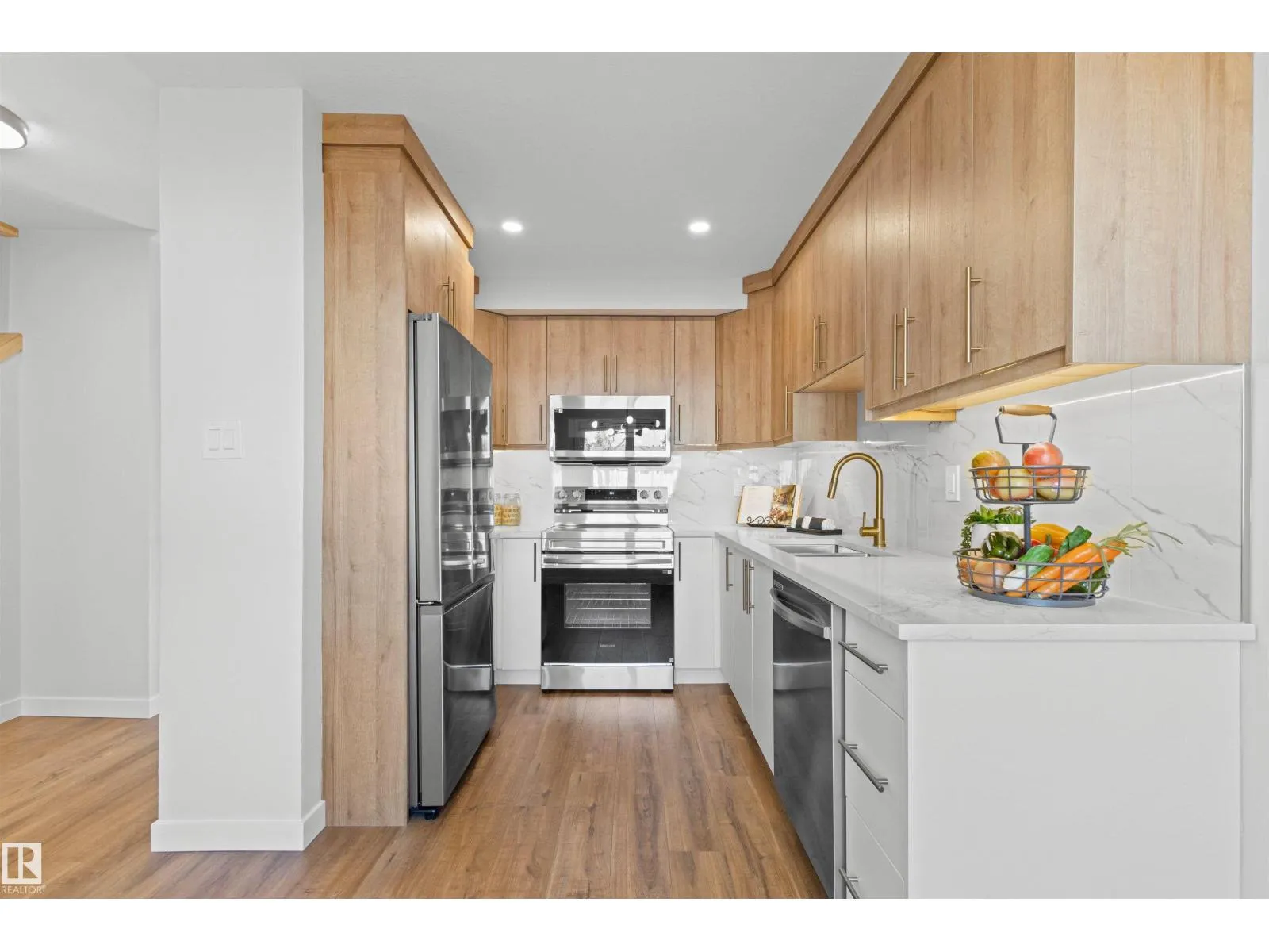 If youâve been looking for a brand-new home in a central location, look no further. This amazing 3-bedroom town home with a fully developed basement has been completely redone. Imagine living in a show home with all of its new and current beautiful finishings, including, drywall (75%), flooring, lighting, kitchen cabinetry & undercabinet lighting, Stainless Steel smart appliances, white oak railings, 2 new bathrooms, electric fireplace, 2-stage high efficiency furnace, HWT, electric fireplace, front door with digital dead bolt, mirrored closet doors, interior doors & handles, T-bar basement ceiling and all the blinds. Commonwealth Place is a very well-run complex with low condo fees and is a super short walk to Steinhauer Elementary School, playground and community league. There are 2 outdoor parking stalls and a south facing fenced yard that overlooks a greenspace behind the complex. This property is a great package with location, affordability, comfort and style. Itâs a must to consider!! (id:27476)