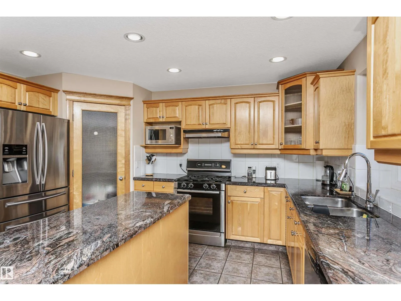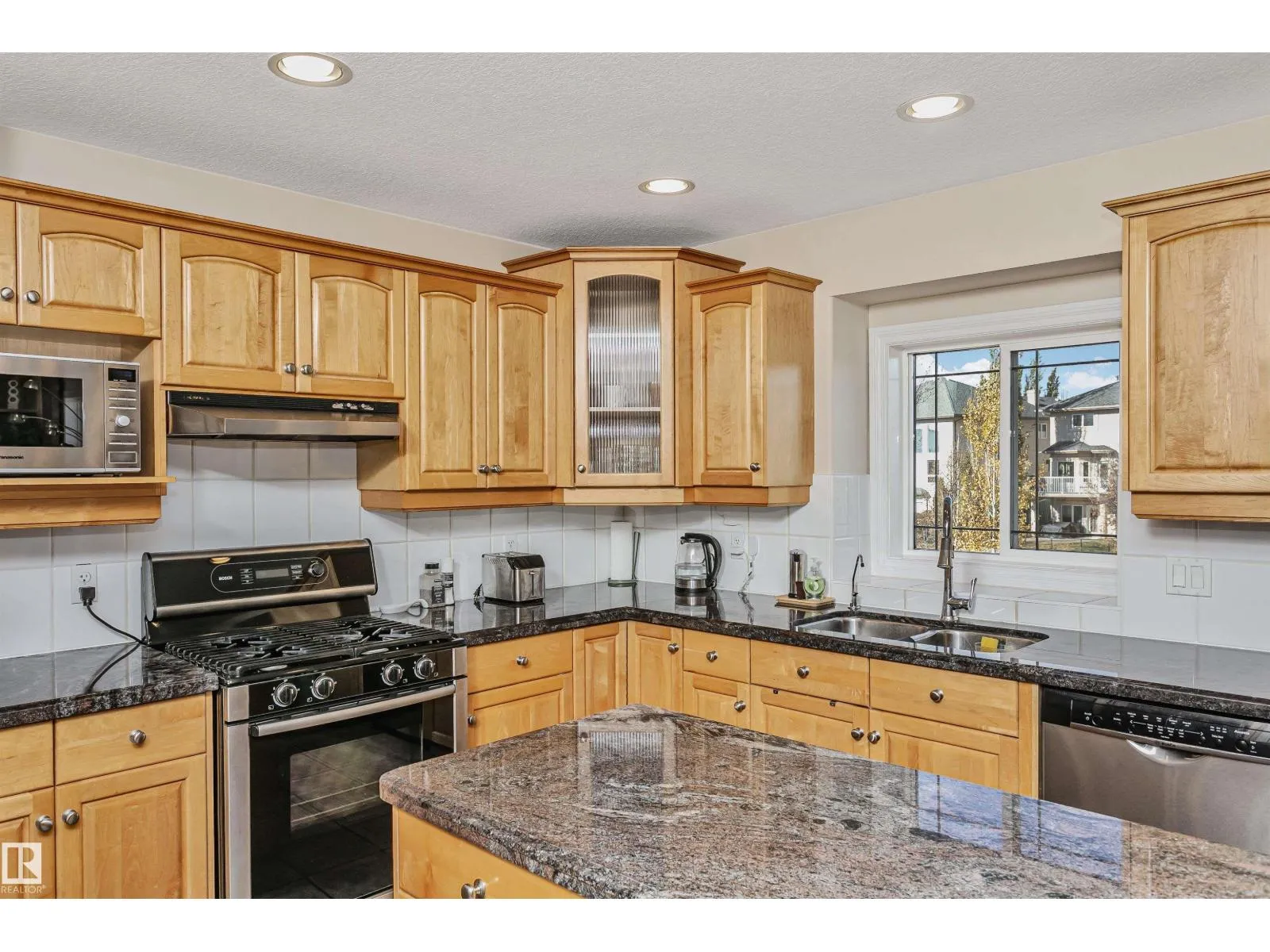 This stunning executive walkout two-storey home is perfectly located on a quiet cul-de-sac in the highly sought-after Riverbend community of Haddow, backing onto a serene dry pond. The main floor features a spacious den that can serve as a home office or guest room, and a large kitchen with granite countertops, island, and a walk-in pantry. Upstairs offers four generous bedrooms, including a large primary suite. The professionally finished walkout basement includes a family room, games area, two additional bedrooms, and a four-piece bathâideal for guests or extended family. The oversized triple attached garage is insulated and drywalled. Situated within a top-rated school catchment, this home is close to parks, walking trails, shopping, golf, and provides easy access to Anthony Henday and Whitemud Drive. A perfect combination of luxury, location, and lifestyle in one of Edmontonâs most desirable communities. Priced to sell! (id:27476)