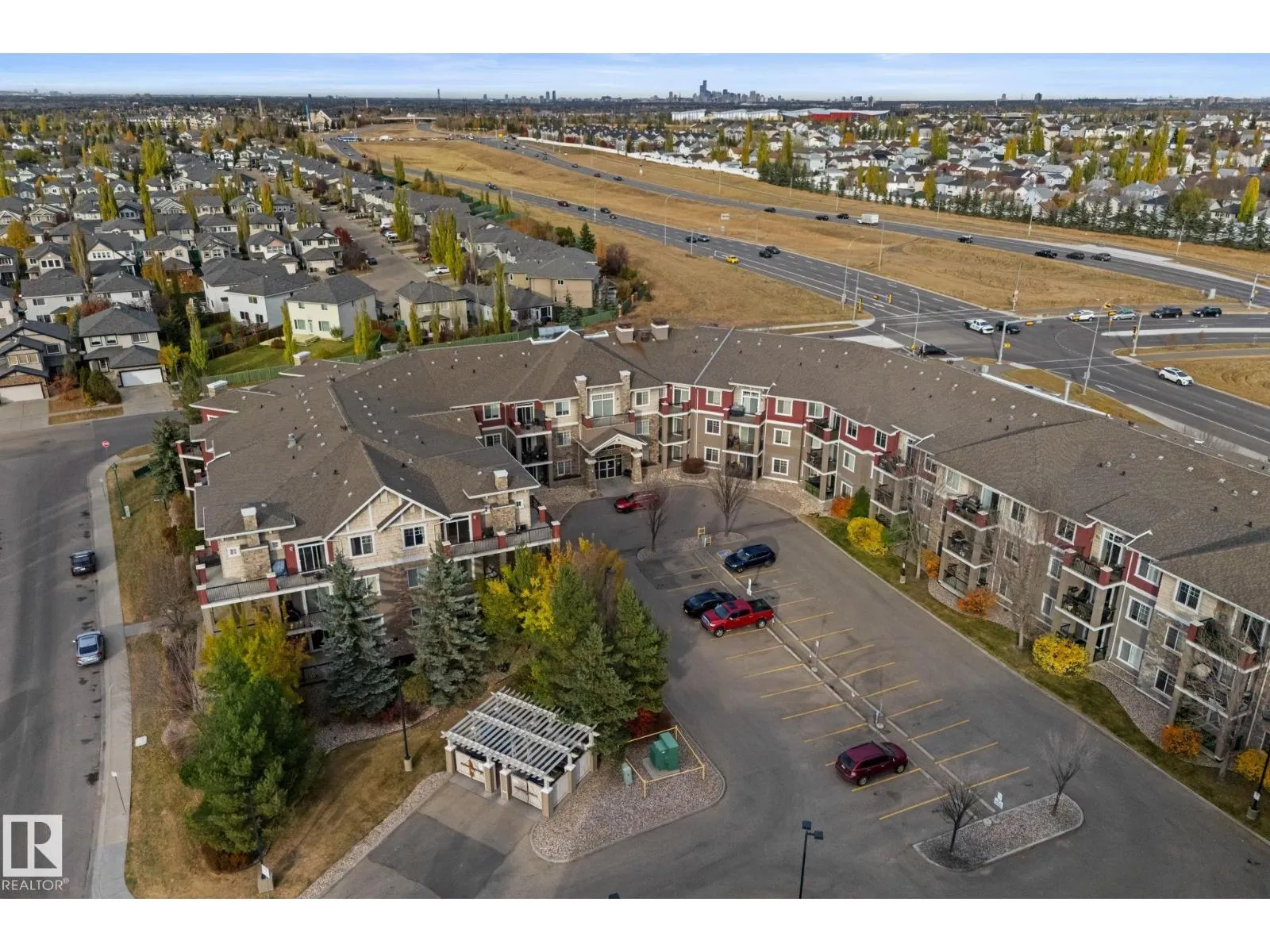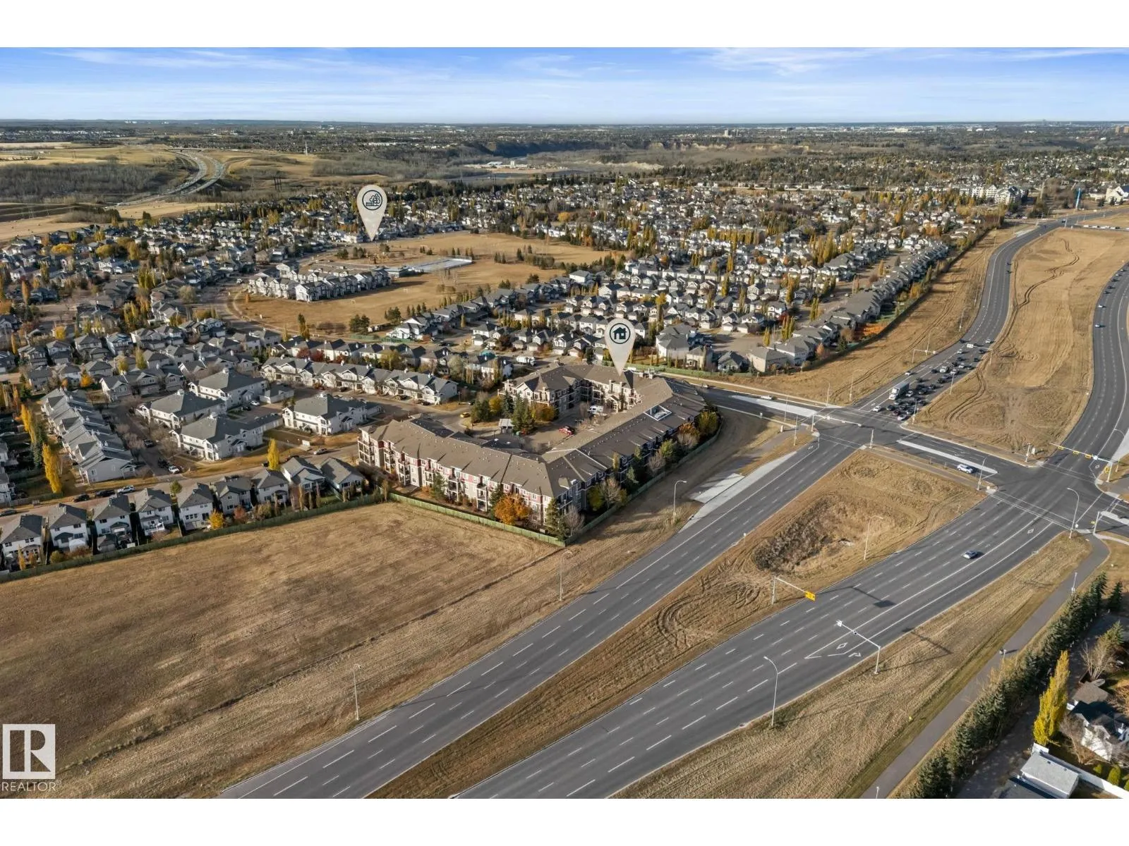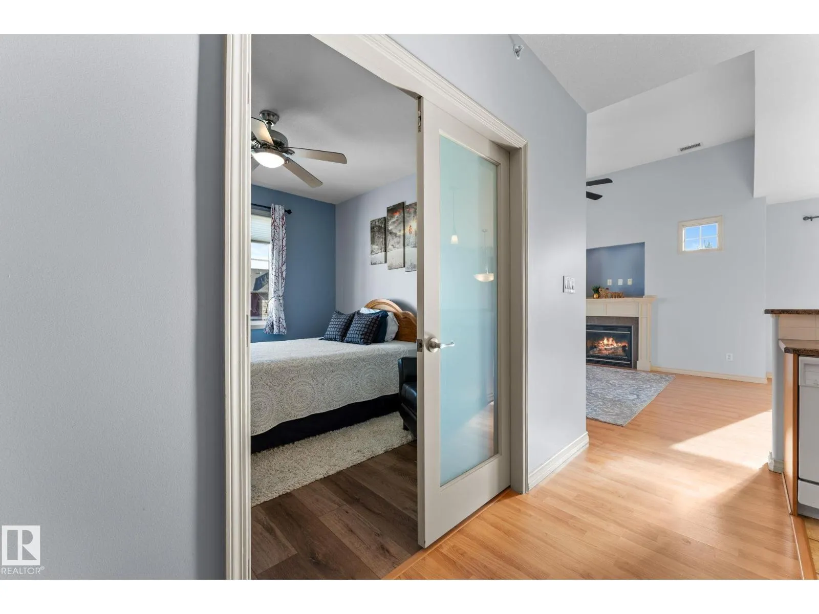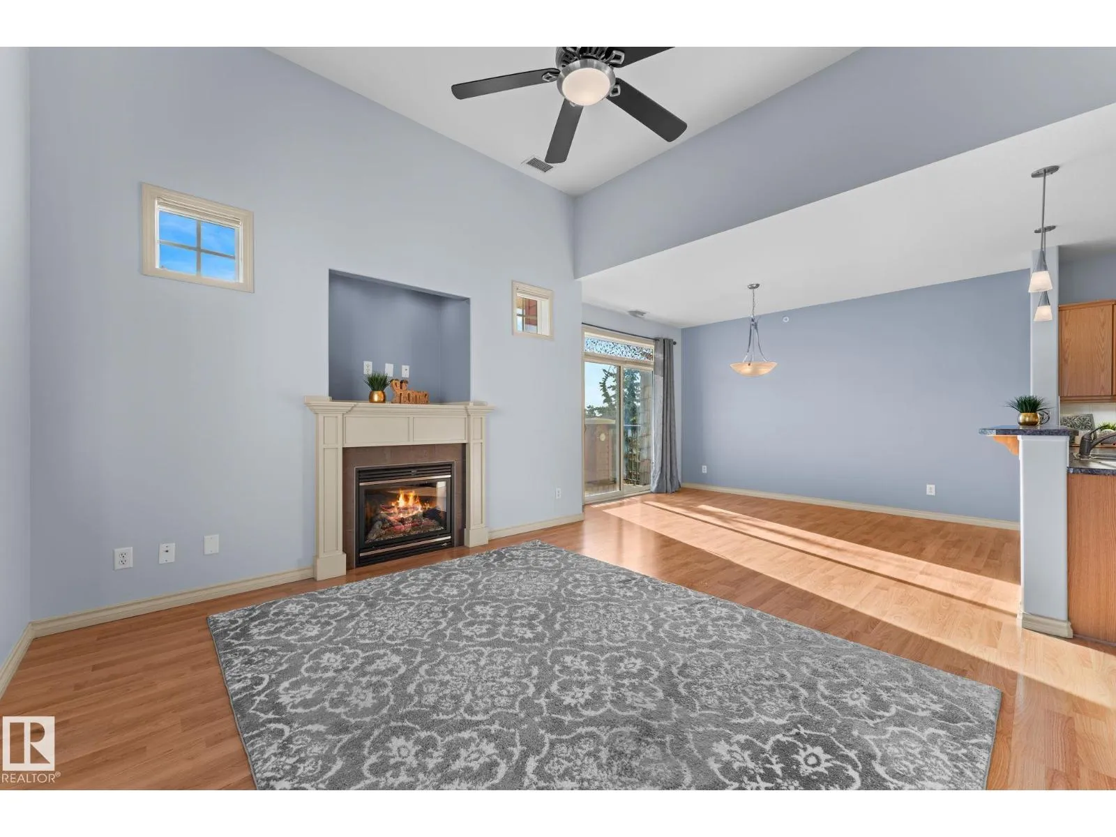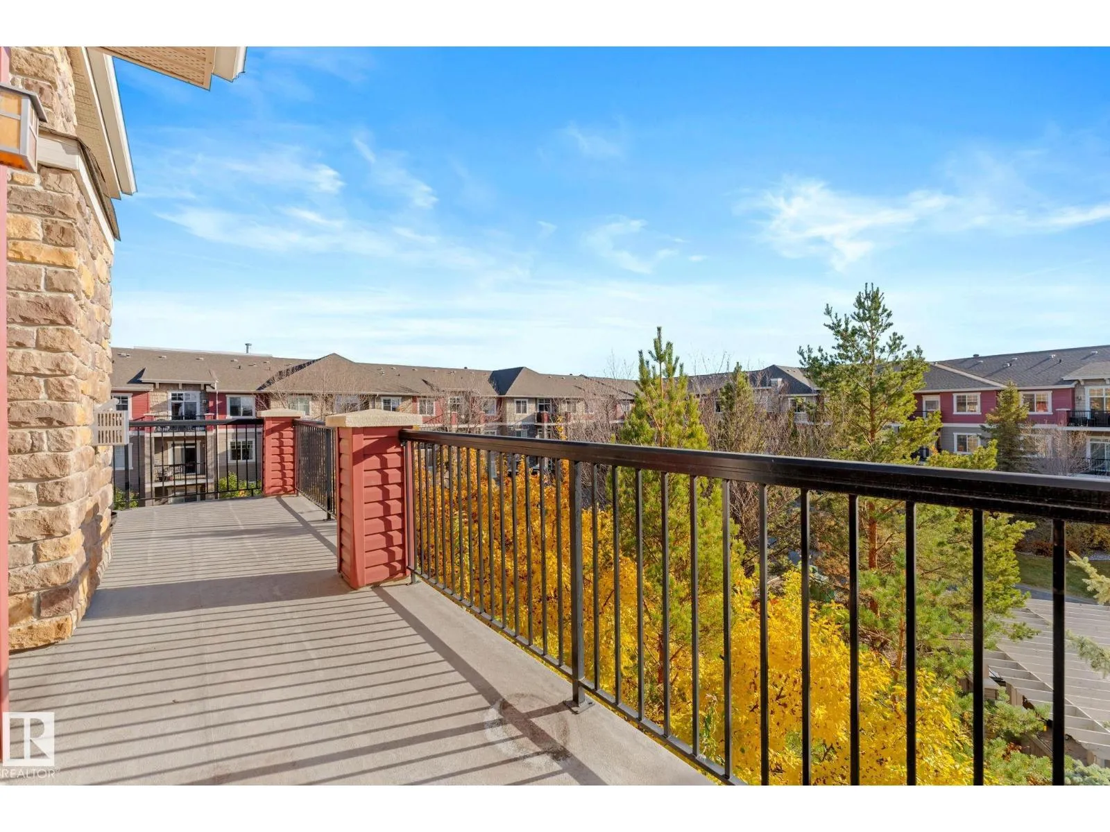 Rare offering, 3 bedroom, 2 bath top-floor corner unit w/ massive wrap-around southeast balcony. Extra large unit at over 1300 sq ft, vaulted 12-ft ceilings, a bright open-concept layout. The spacious primary suite is privately located away from the other bedrooms, easily fits a king bed, and includes dual walk-through closets and a 4-piece ensuite with double sinks and a walk-in shower. This immaculate unit offers newer flooring (no carpet), A/C, gas fireplace, gas BBQ hookup. The kitchen, dining, and living areas flow seamlessly, creating an airy, light-filled space perfect for entertaining. Large laundry room w/ extra storage, 2 titled heated underground parking stalls (one beside the elevator and one beside the stairwell), and storage locker. Condo fees incl. heat, water, and sewer. Pet-friendly building offers premium amenities: fitness room, theatre, games lounge, guest suite, and car wash bay Situated, within minutes of major shopping, dining, and quick access to the Anthony Henday. (id:27476)