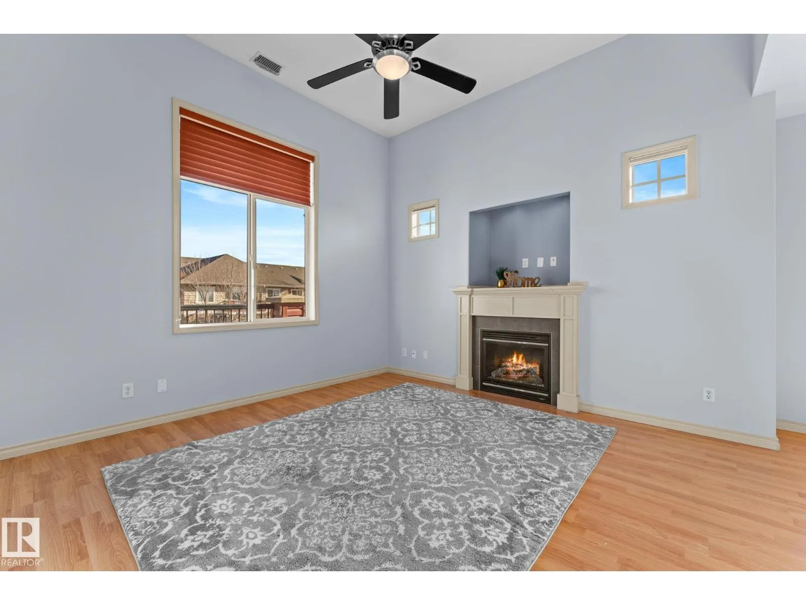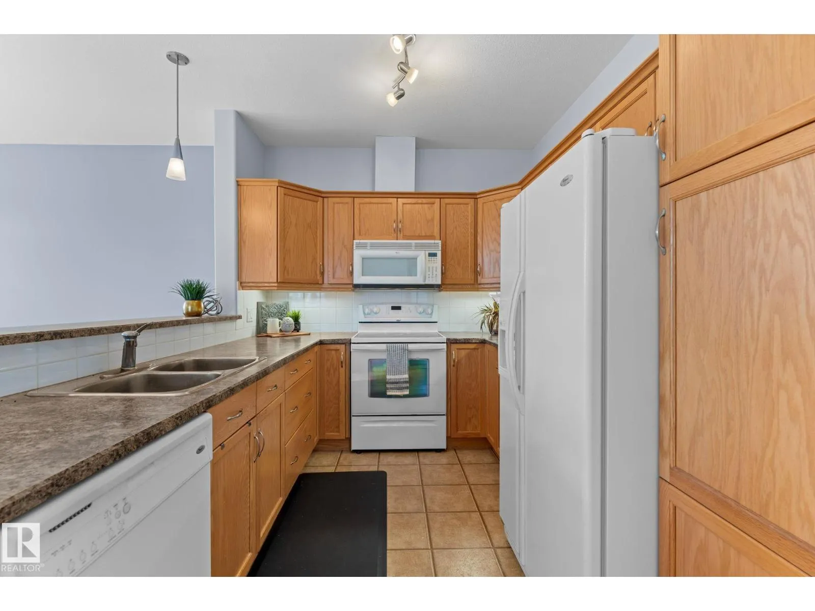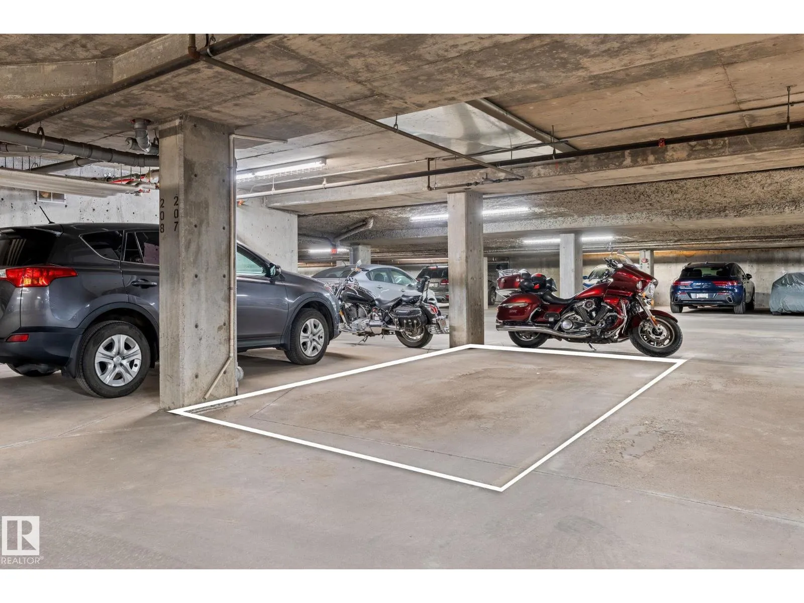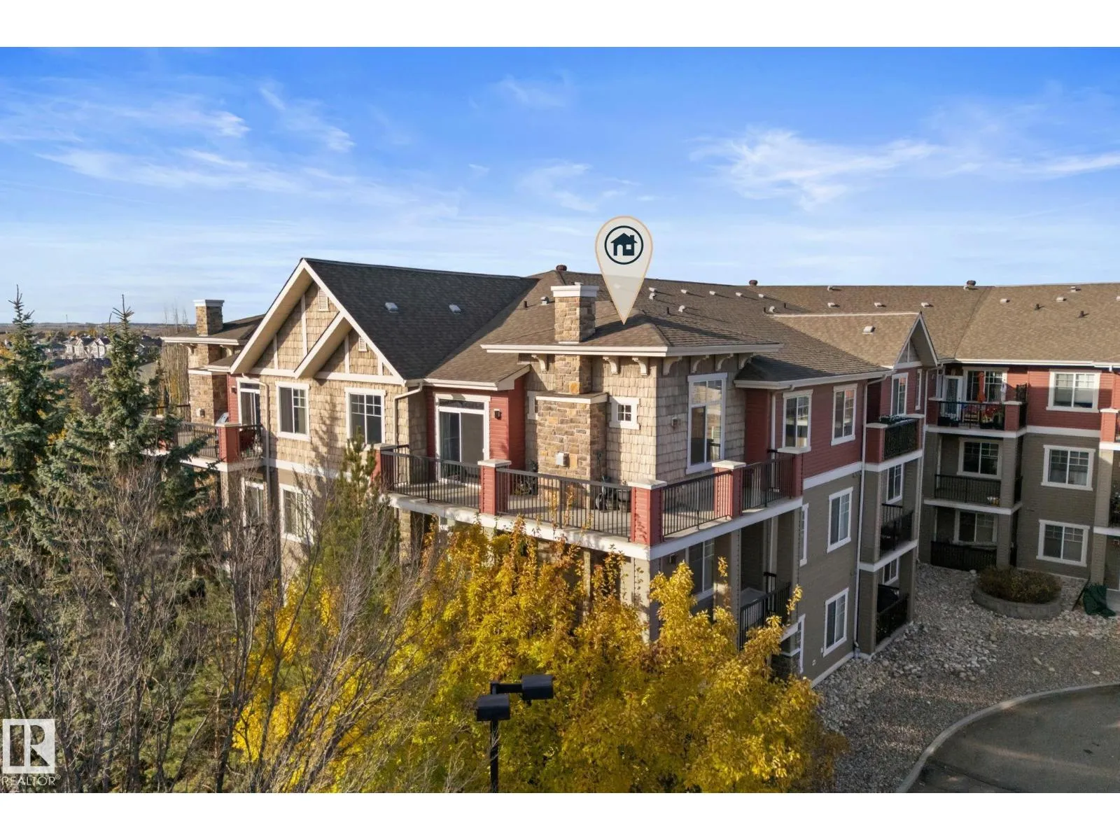 Rare offering, 3 bedroom, 2 bath top-floor corner unit w/ massive wrap-around southeast balcony. Extra large unit at over 1300 sq ft, vaulted 12-ft ceilings, a bright open-concept layout. The spacious primary suite is privately located away from the other bedrooms, easily fits a king bed, and includes dual walk-through closets and a 4-piece ensuite with double sinks and a walk-in shower. This immaculate unit offers newer flooring (no carpet), A/C, gas fireplace, gas BBQ hookup. The kitchen, dining, and living areas flow seamlessly, creating an airy, light-filled space perfect for entertaining. Large laundry room w/ extra storage, 2 titled heated underground parking stalls (one beside the elevator and one beside the stairwell), and storage locker. Condo fees incl. heat, water, and sewer. Pet-friendly building offers premium amenities: fitness room, theatre, games lounge, guest suite, and car wash bay Situated, within minutes of major shopping, dining, and quick access to the Anthony Henday. (id:27476)
