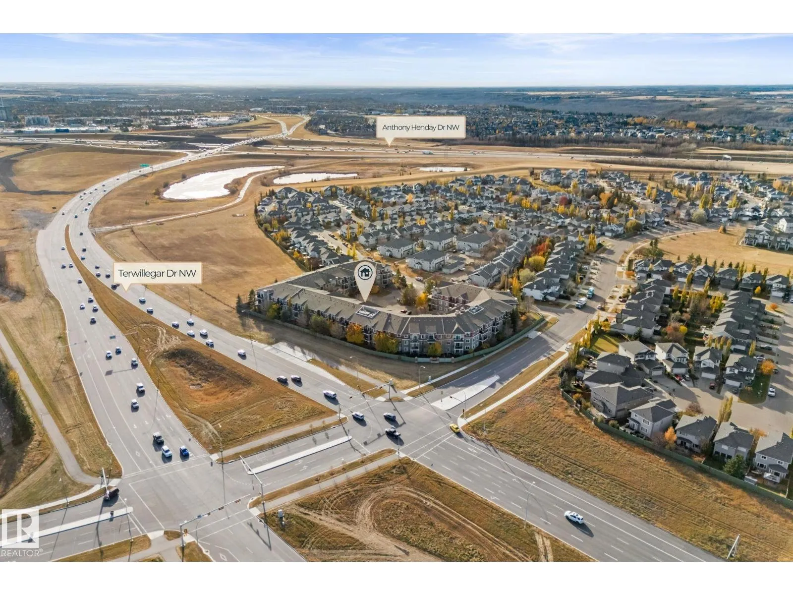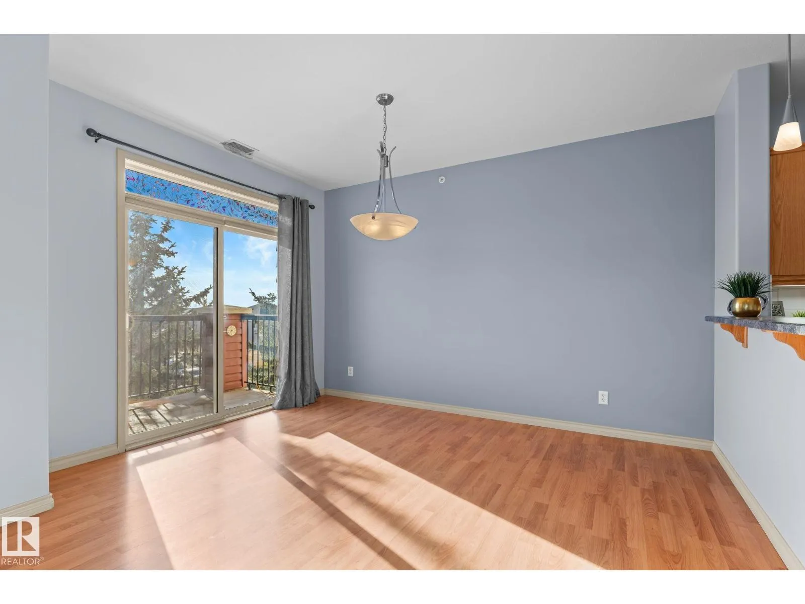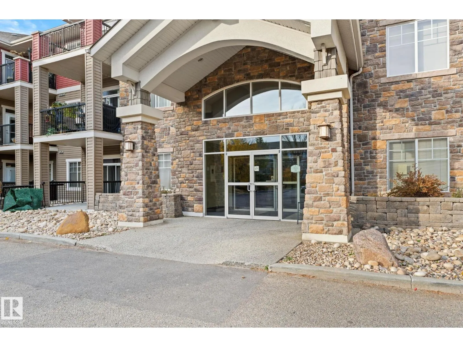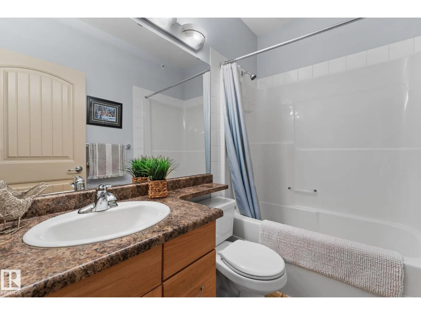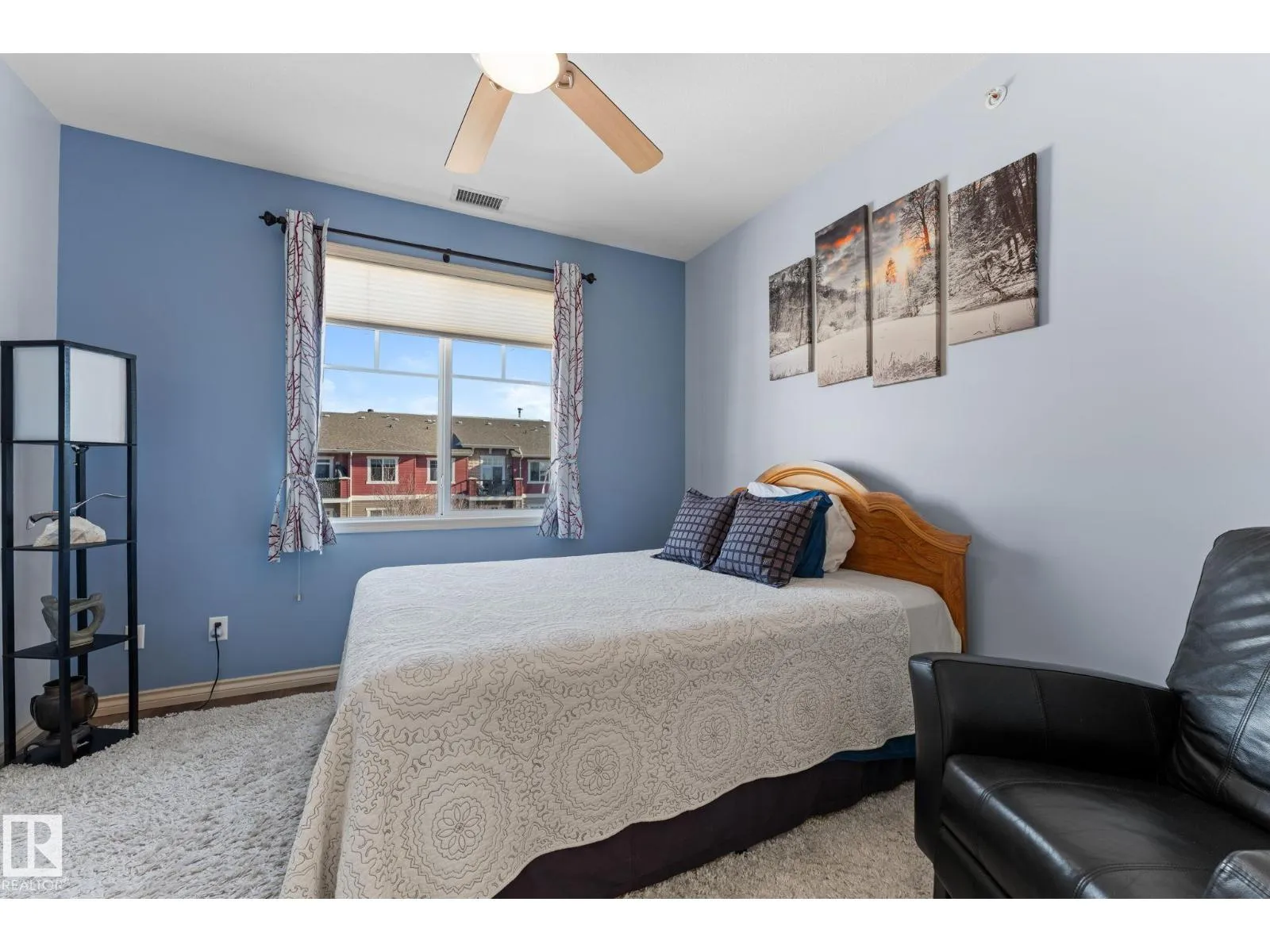 Rare offering, 3 bedroom, 2 bath top-floor corner unit w/ massive wrap-around southeast balcony. Extra large unit at over 1300 sq ft, vaulted 12-ft ceilings, a bright open-concept layout. The spacious primary suite is privately located away from the other bedrooms, easily fits a king bed, and includes dual walk-through closets and a 4-piece ensuite with double sinks and a walk-in shower. This immaculate unit offers newer flooring (no carpet), A/C, gas fireplace, gas BBQ hookup. The kitchen, dining, and living areas flow seamlessly, creating an airy, light-filled space perfect for entertaining. Large laundry room w/ extra storage, 2 titled heated underground parking stalls (one beside the elevator and one beside the stairwell), and storage locker. Condo fees incl. heat, water, and sewer. Pet-friendly building offers premium amenities: fitness room, theatre, games lounge, guest suite, and car wash bay Situated, within minutes of major shopping, dining, and quick access to the Anthony Henday. (id:27476)