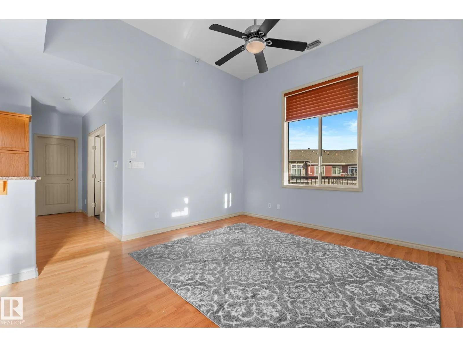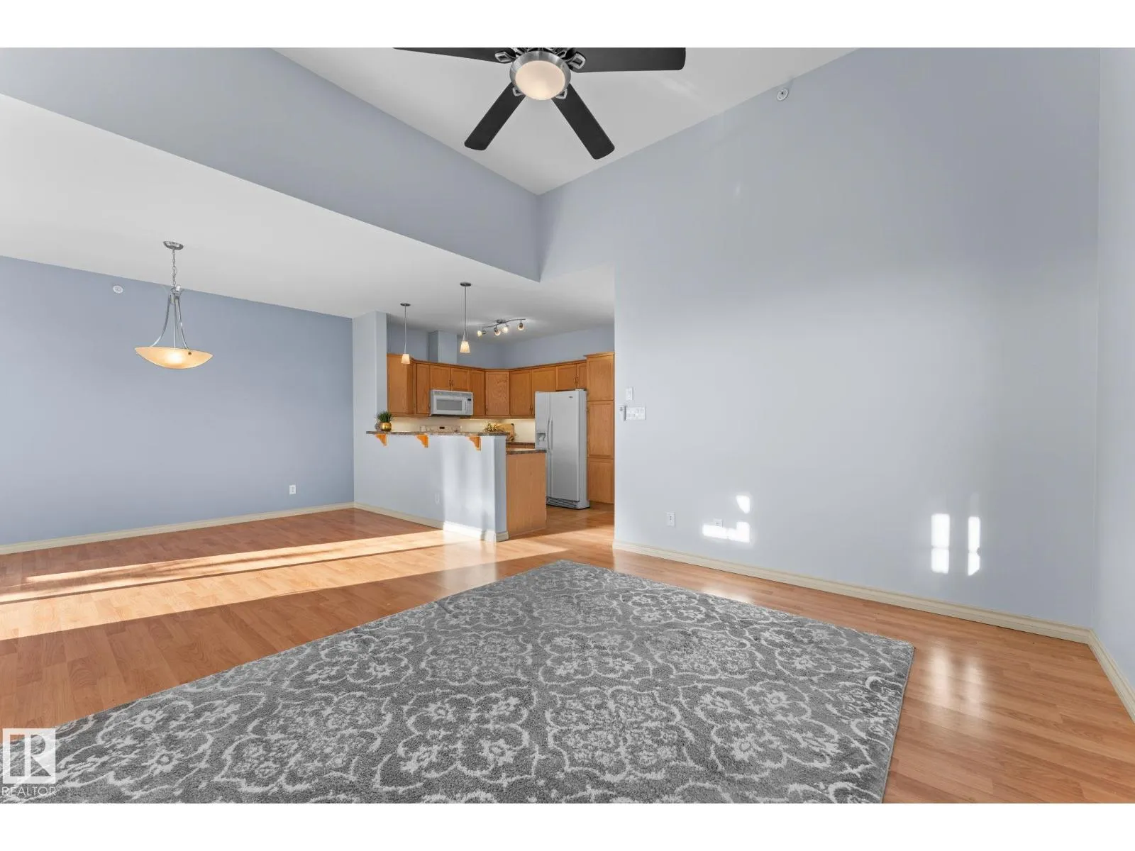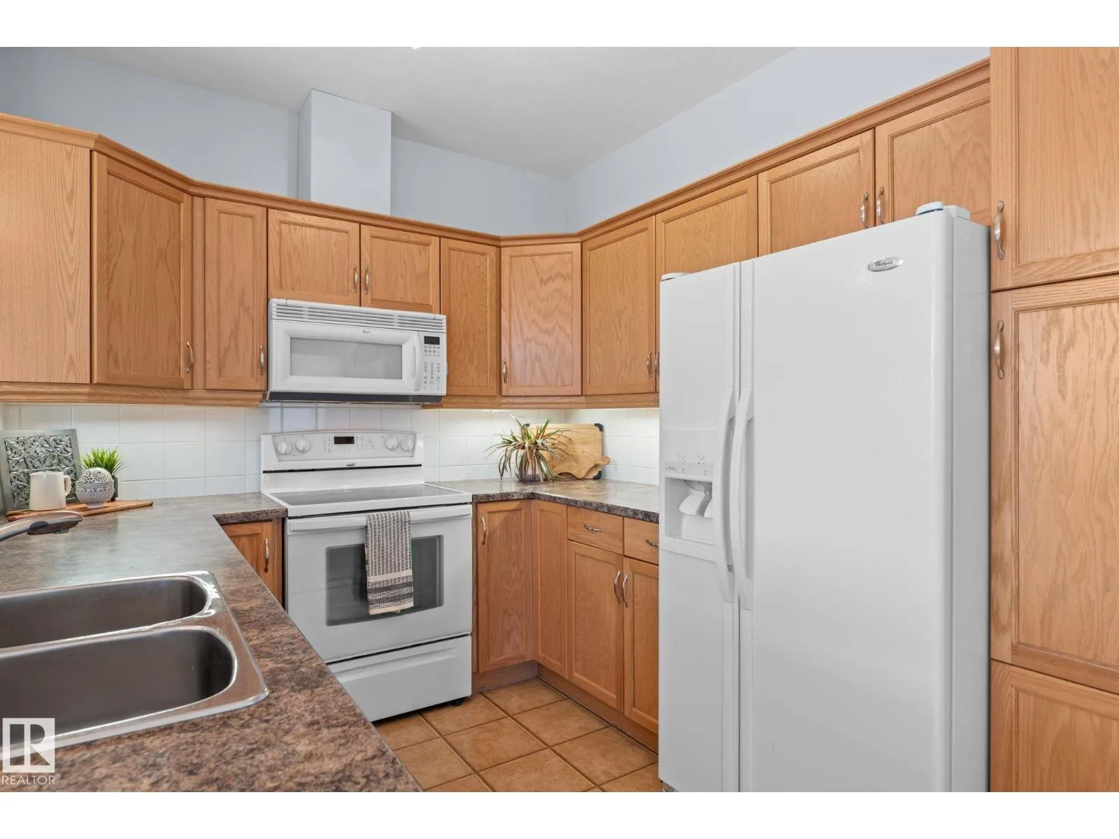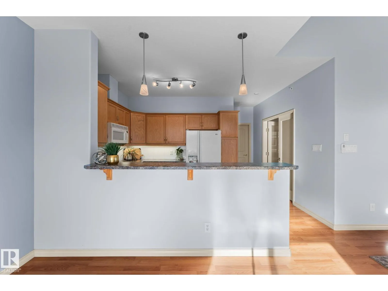 Rare offering, 3 bedroom, 2 bath top-floor corner unit w/ massive wrap-around southeast balcony. Extra large unit at over 1300 sq ft, vaulted 12-ft ceilings, a bright open-concept layout. The spacious primary suite is privately located away from the other bedrooms, easily fits a king bed, and includes dual walk-through closets and a 4-piece ensuite with double sinks and a walk-in shower. This immaculate unit offers newer flooring (no carpet), A/C, gas fireplace, gas BBQ hookup. The kitchen, dining, and living areas flow seamlessly, creating an airy, light-filled space perfect for entertaining. Large laundry room w/ extra storage, 2 titled heated underground parking stalls (one beside the elevator and one beside the stairwell), and storage locker. Condo fees incl. heat, water, and sewer. Pet-friendly building offers premium amenities: fitness room, theatre, games lounge, guest suite, and car wash bay Situated, within minutes of major shopping, dining, and quick access to the Anthony Henday. (id:27476)