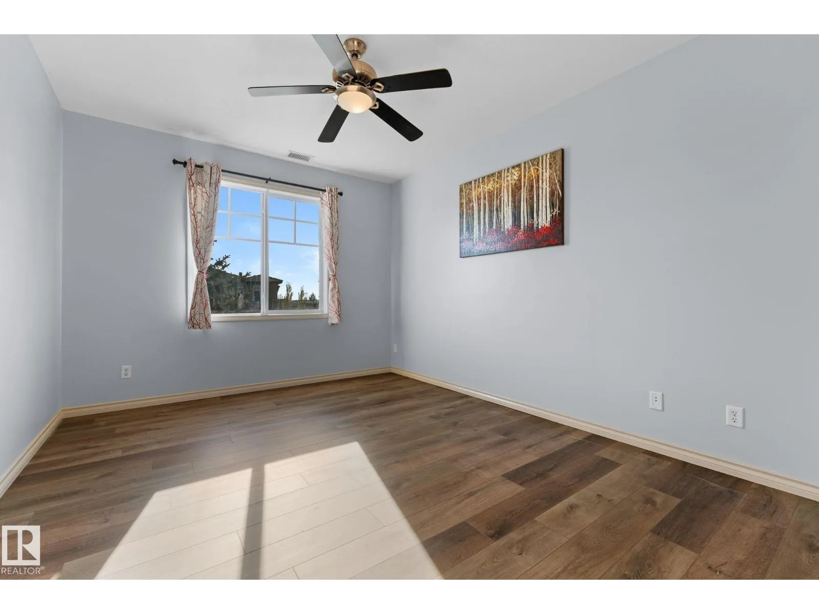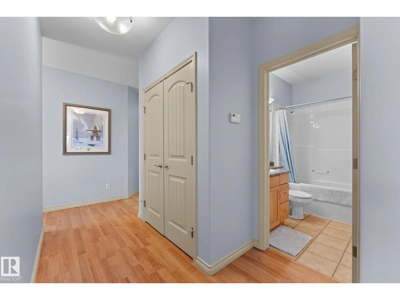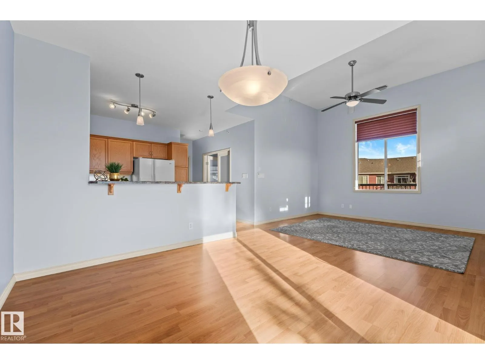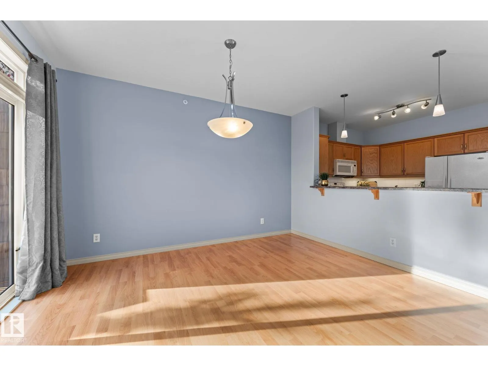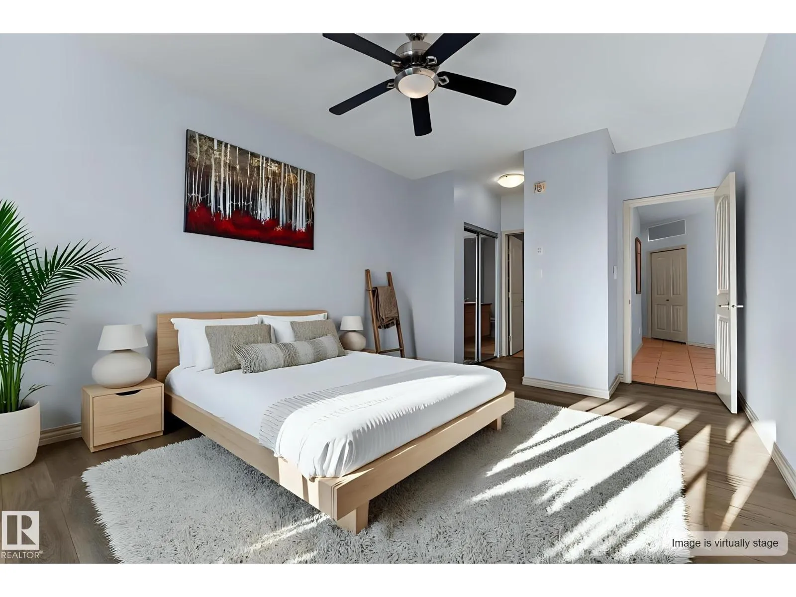 Rare offering, 3 bedroom, 2 bath top-floor corner unit w/ massive wrap-around southeast balcony. Extra large unit at over 1300 sq ft, vaulted 12-ft ceilings, a bright open-concept layout. The spacious primary suite is privately located away from the other bedrooms, easily fits a king bed, and includes dual walk-through closets and a 4-piece ensuite with double sinks and a walk-in shower. This immaculate unit offers newer flooring (no carpet), A/C, gas fireplace, gas BBQ hookup. The kitchen, dining, and living areas flow seamlessly, creating an airy, light-filled space perfect for entertaining. Large laundry room w/ extra storage, 2 titled heated underground parking stalls (one beside the elevator and one beside the stairwell), and storage locker. Condo fees incl. heat, water, and sewer. Pet-friendly building offers premium amenities: fitness room, theatre, games lounge, guest suite, and car wash bay Situated, within minutes of major shopping, dining, and quick access to the Anthony Henday. (id:27476)