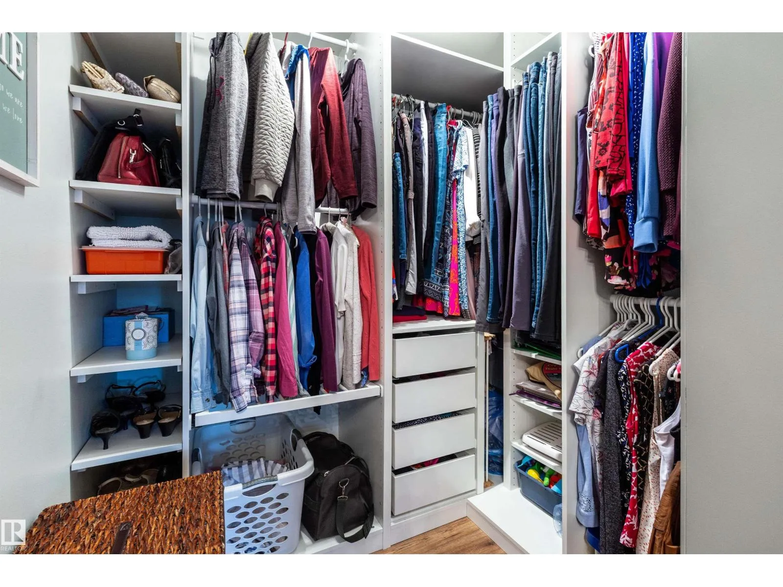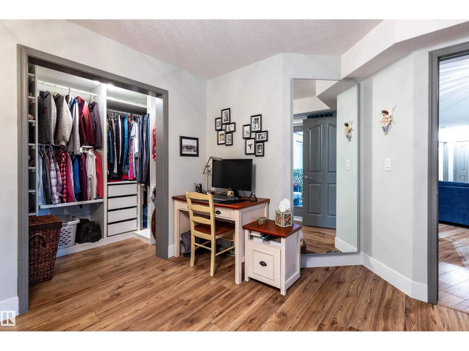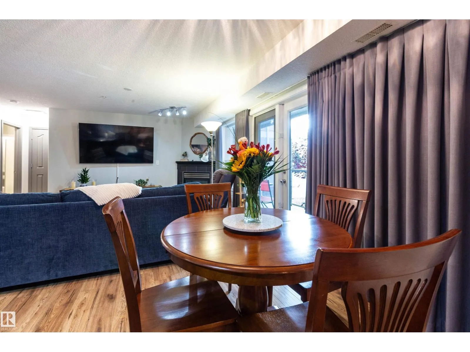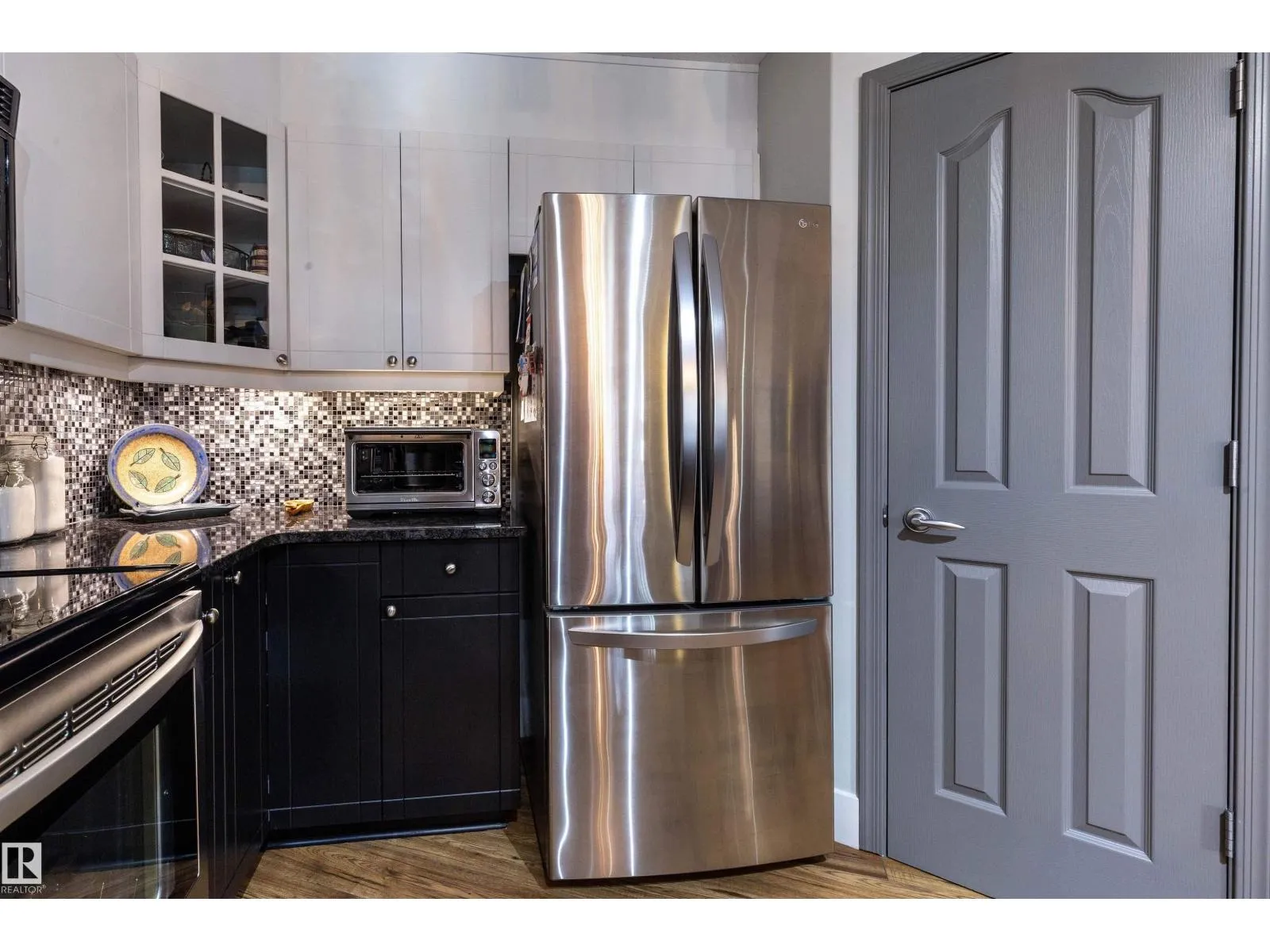 Welcome to the condo community of River Grande in Riverdale. This renovated 1010 sq ft 2nd floor unit has been Updates include new paint, wall paper, walk in wardrobes in both closets, new trim, lighting, updated bathrooms, custom drapery, a spacious laundry room with built in organization. Enjoy year-round comfort with underground heated tandem stall, front storage area, featuring a carwash. Central A/C, and a cozy gas fireplace. Walk in pantry, stainless steel appliances accent the kitchen's granite countertops. The primary bedroom easily accommodates a king-sized bed with two nightstands, while the second bedroom comfortably fits a queen and two nightstands. Your large private balcony is a beautiful space for relaxing or entertaining. This well-managed complex has a great community feel. Social room, gym, games room, car wash. Close to the River Valley Trails, minutes to Downtown, Bread & Butter Bakery steps away! Super Edmonton location! (id:27476)