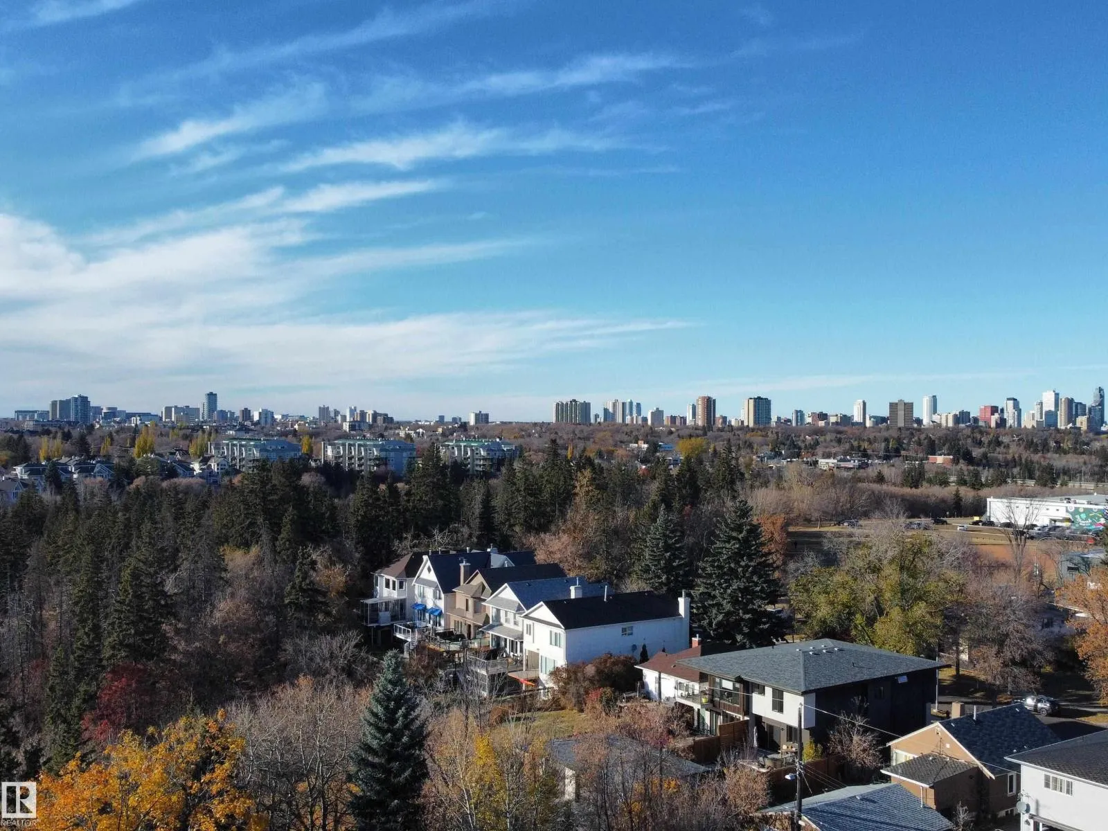 Just steps from the Mill Creek Ravine, this 2½ storey half duplex offers exceptional space and versatility! The main floor features a cozy living room with fireplace and large windows, a dining area open to the second floor, a bright kitchen with attached home office space, and a convenient 2-pc bathroom. Upstairs, you will find 2 bedrooms including a large primary ensuite with separate shower stall and a jetted tub. The third floor boasts a spacious family room â perfect for relaxing or entertaining. The finished basement offers even more living options with a den and large walk-in closet, 4-pc bath, second kitchen, small family room, laundry area and utility/storage room. Enjoy outdoor living on the deck and extra storage in the alley-accessed detached double garage with attached shelving. Ideal location near trails, parks, Bonnie Doon Mall, many great area restaurants and amenities! (id:27476)