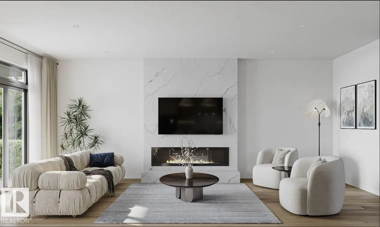 Welcome Home! Beautiful new 2-storey home located in Granville backing onto the beautiful greenspace of Kim Hung Park . Spacious open-concept floor plan with 4 beds + 3 baths. Main floor includes grand great room & dining area, chef's kitchen, 4pc bath off of large den/office/bedroom. The kitchen features an ample amount of countertop/cabinetry space, with large quartz covered center islands & elegant stainless steel appliances. Huge living area made for family gatherings featuring decorative electric fireplace. Large deck off the dining room perfect for summer BBQs. Upstairs, you will be greeted by the large bonus room with tons of space for various uses. Primary bedroom includes a 5pc ensuite with large soaker tub + walk in closet. 2nd floor also boasts 2 large bedrooms with great separation area from Primary. Laundry room with sink and floor drain on upper level. Large double attached garage. Drive by and you will see subdivison being built out with occupancy of this home scheduled for Summer 2026!!! (id:27476)