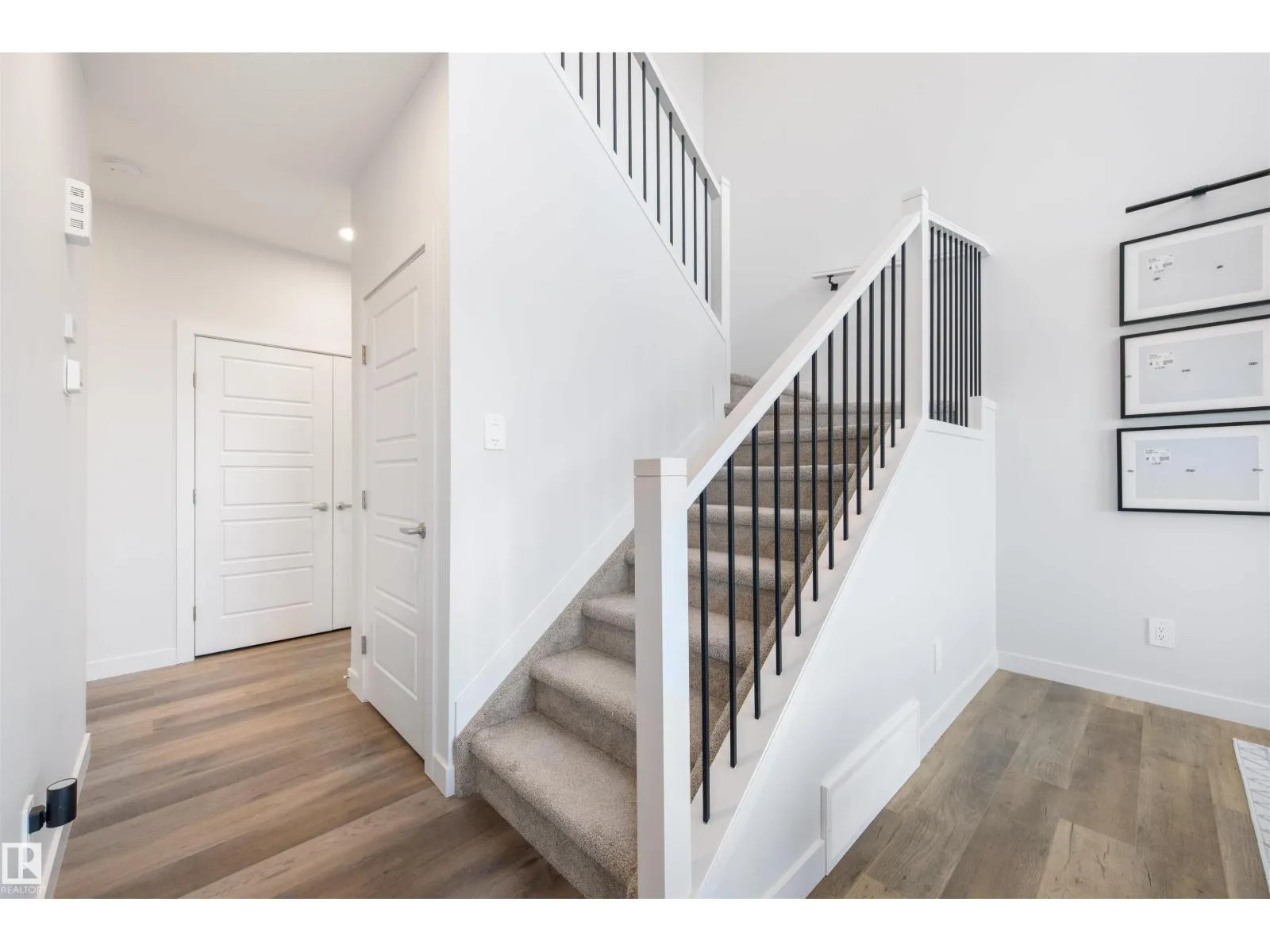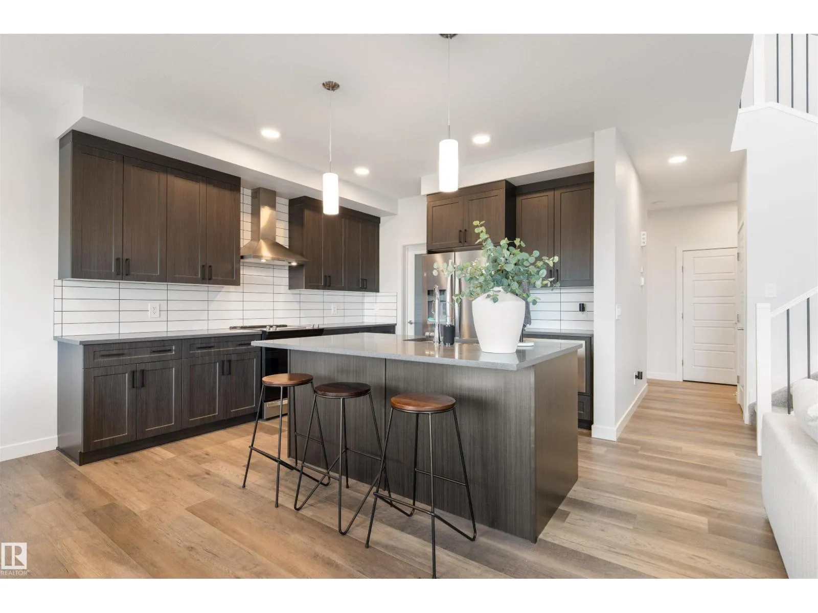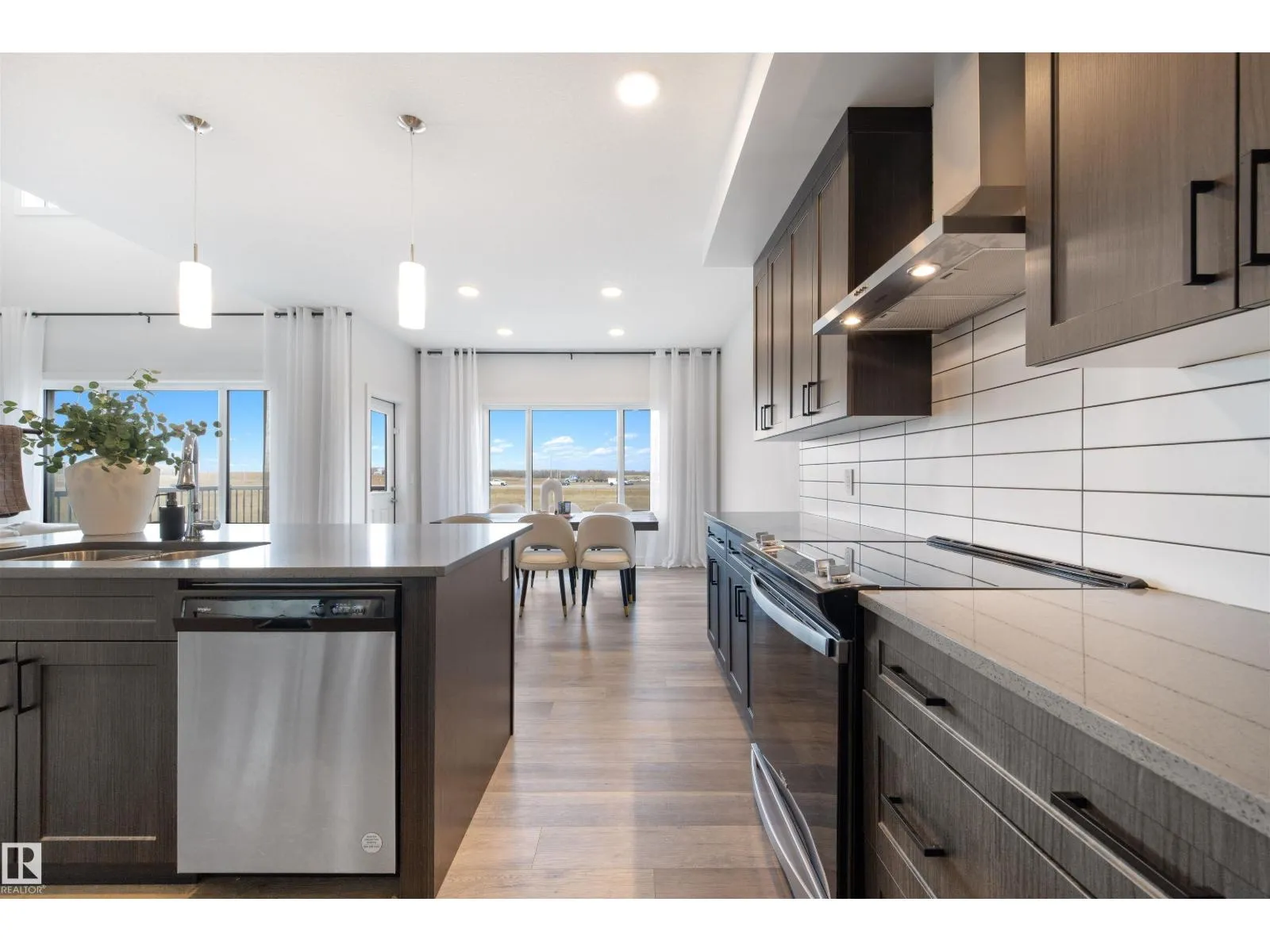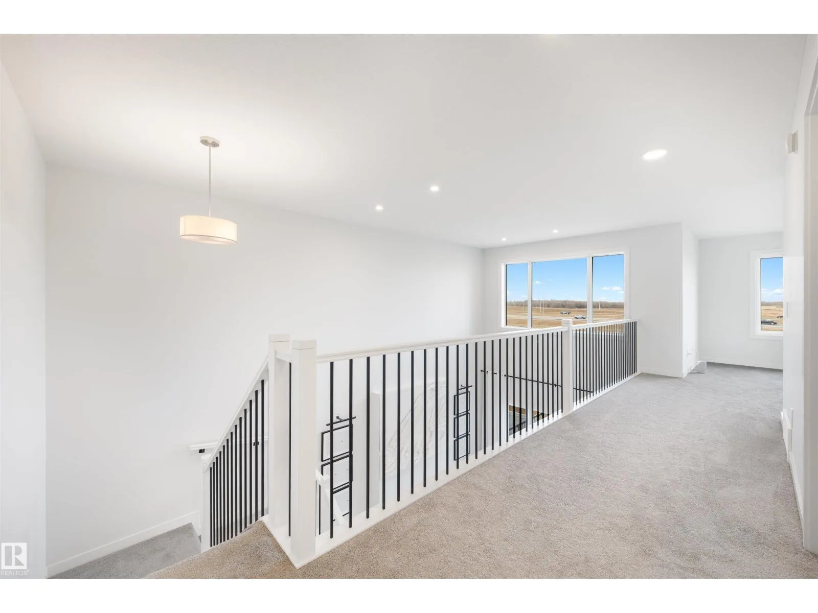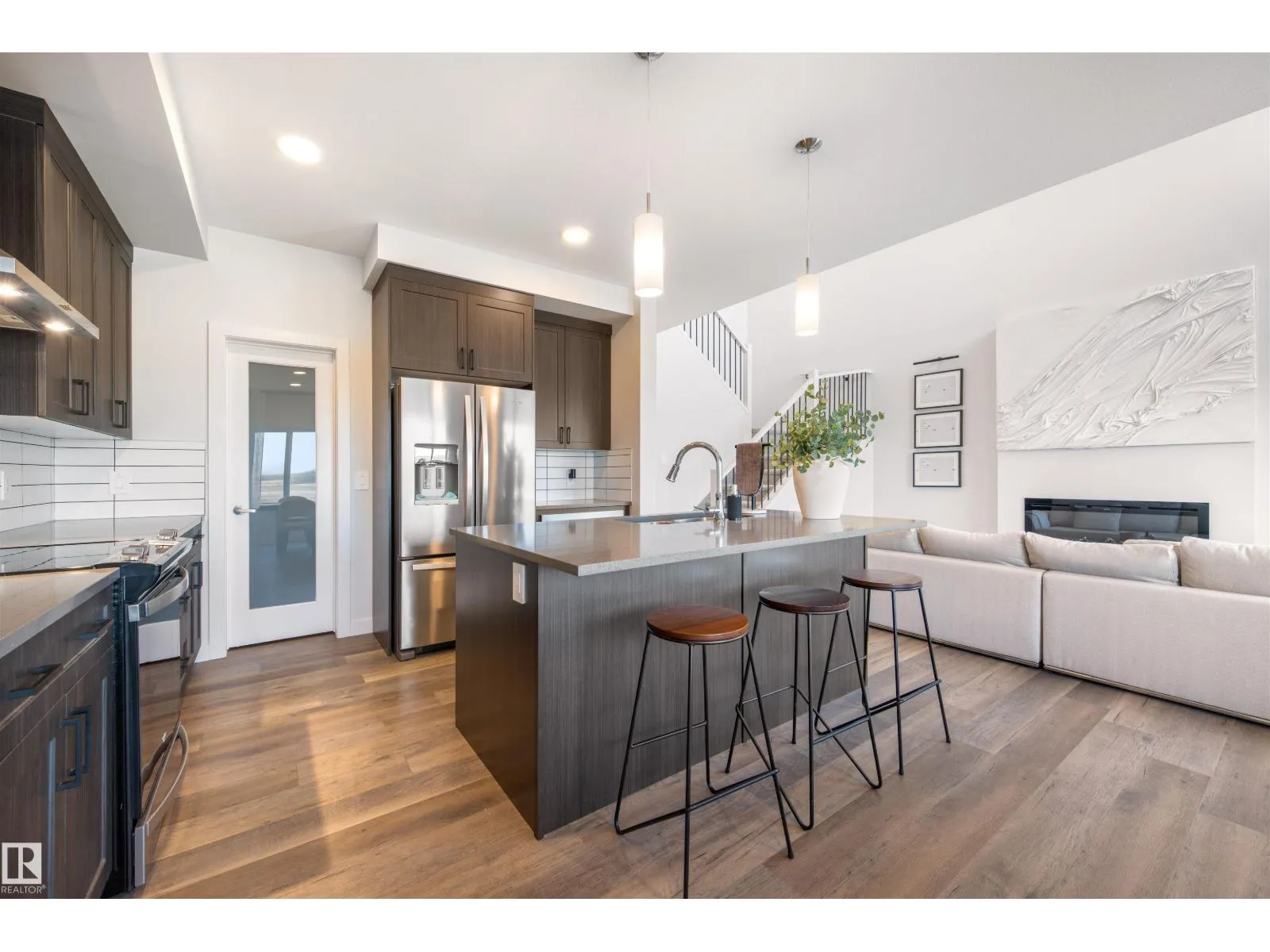 Welcome to the community of Klarvatten, located in North Edmonton. This stunning open-to-below walkout home offers 2,056 Sq.Ft. of beautifully designed living space with an open-concept main floor. Featuring LVP flooring, a gourmet kitchen with quartz countertops throughout, upgraded cabinetry, walk-in pantry and equipped with 5 piece stainless steel appliances perfect for the modern home chef. The impressive 2-storey Great Room with soaring ceilings invites you to unwind by the cozy fireplace or step onto the deck with a gas line ready for your BBQ. Upstairs, youâll find a convenient walk-in laundry room, a spacious bonus room, and three generous bedrooms, including the primary suite with a walk-in closet and spa-inspired ensuite featuring a soaker tub and separate shower. The walkout basement with side entrance offers endless potential for future development. Conveniently located near schools, parks, shopping, and quick access to Anthony Henday Drive. A must-see home for families and entertainers alike! (id:27476)