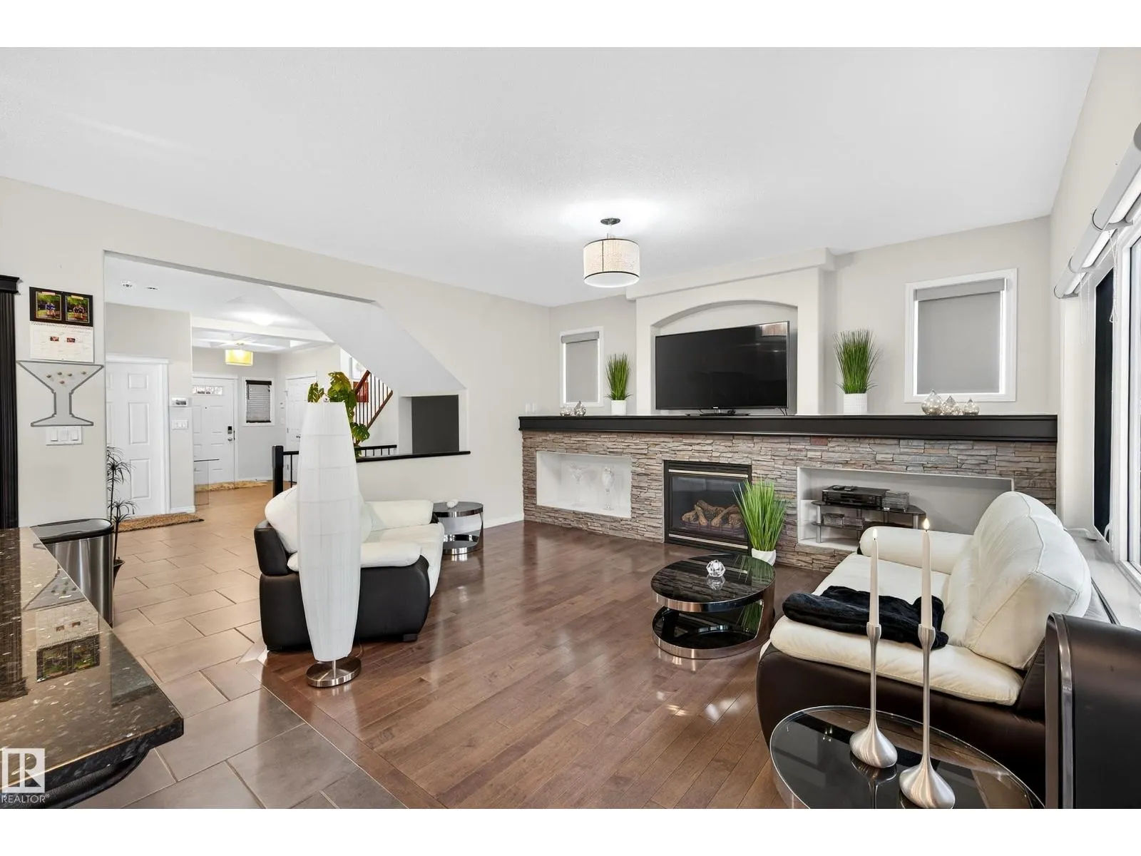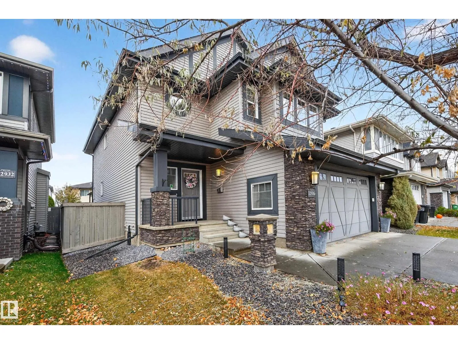 Welcome to a masterpiece of custom-built luxury in prestigious Trumpeter! This stunning 2-storey home offers an unparalleled blend of elegance, comfort, and nature-inspired living in Edmonton's coveted Big Lake area. Spanning 2,411 square feet, this 3-bedroom, 2.5-bathroom home boasts a beautiful open-concept floor plan with 9-foot ceilings on both the main and upper levels, creating a grand, airy feel throughout. The heart of the home is the chef's dream kitchen, featuring a stylish granite island and countertops, and a walk-through pantry, also including a gas fireplace in the living room. Escape to your private retreat with a huge primary bedroom complete with vaulted ceilings, a spacious walk-in closet, and a lavish ensuite bathroom. Upstairs also features a large bonus room perfect for movie nights or a play area, plus two additional bedrooms that each have a walk-in closet and share a clever Jack & Jill bathroom. The tandem, heated garage has hot & cold water taps, and will easily house 3 vehicles! (id:27476)