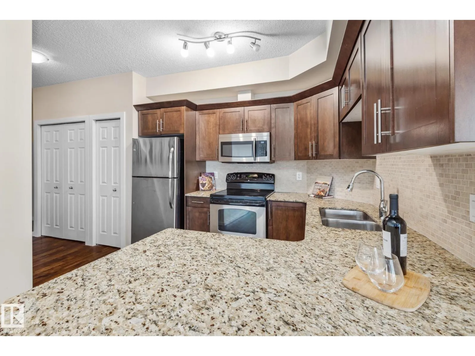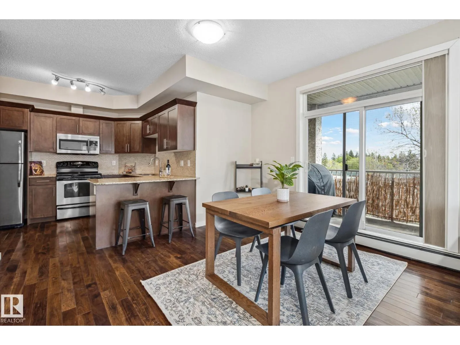 This bright, SOUTH-facing, TOP-floor CORNER unit with 9â ceilings in a well-managed building offers 2 bedrooms, 2 bathrooms, AND parking for 2 vehicles. The open-concept layout is bathed in natural light from large south-facing windows overlooking a park and school, creating a warm, inviting ambiance. The modern kitchen features granite countertops, quality stainless-steel appliances, and plenty of cabinetryâperfect for cooking and entertaining. The spacious primary bedroom includes a private ensuite and walk-through closet, while the second bedroom and bathroom are ideal for guests, a home office, or roommates. Located minutes from the University of Alberta, UofA Hospital, schools, and excellent transit, this condo offers unbeatable convenience for work, study, and play. Enjoy the vibrant energy and charm of nearby Whyte Avenue. Additional highlights include parking for TWO vehicles in the heated parkade, a storage cage, in-suite laundry, and a pet-friendly building with a fitness centre and social room. (id:27476)