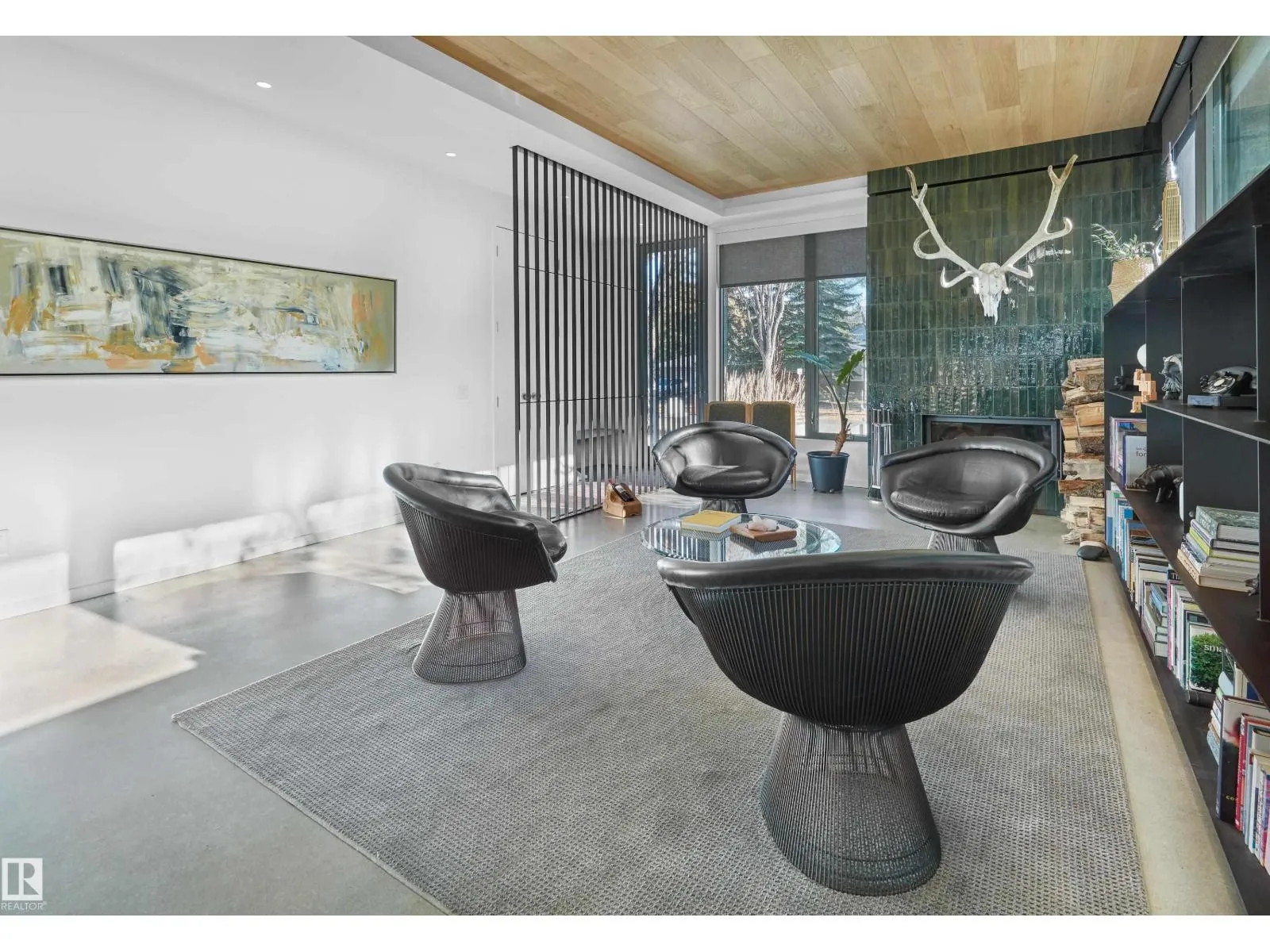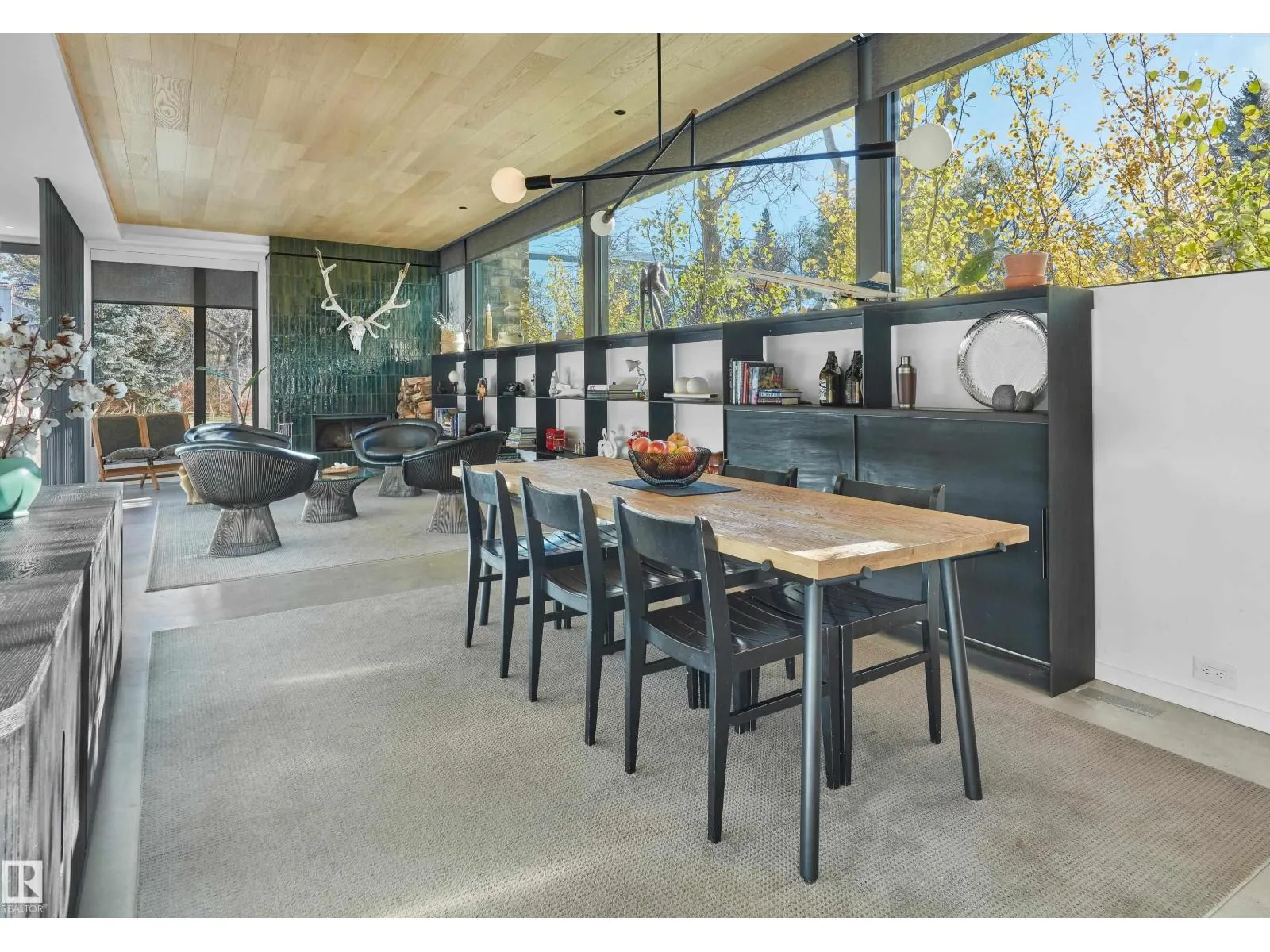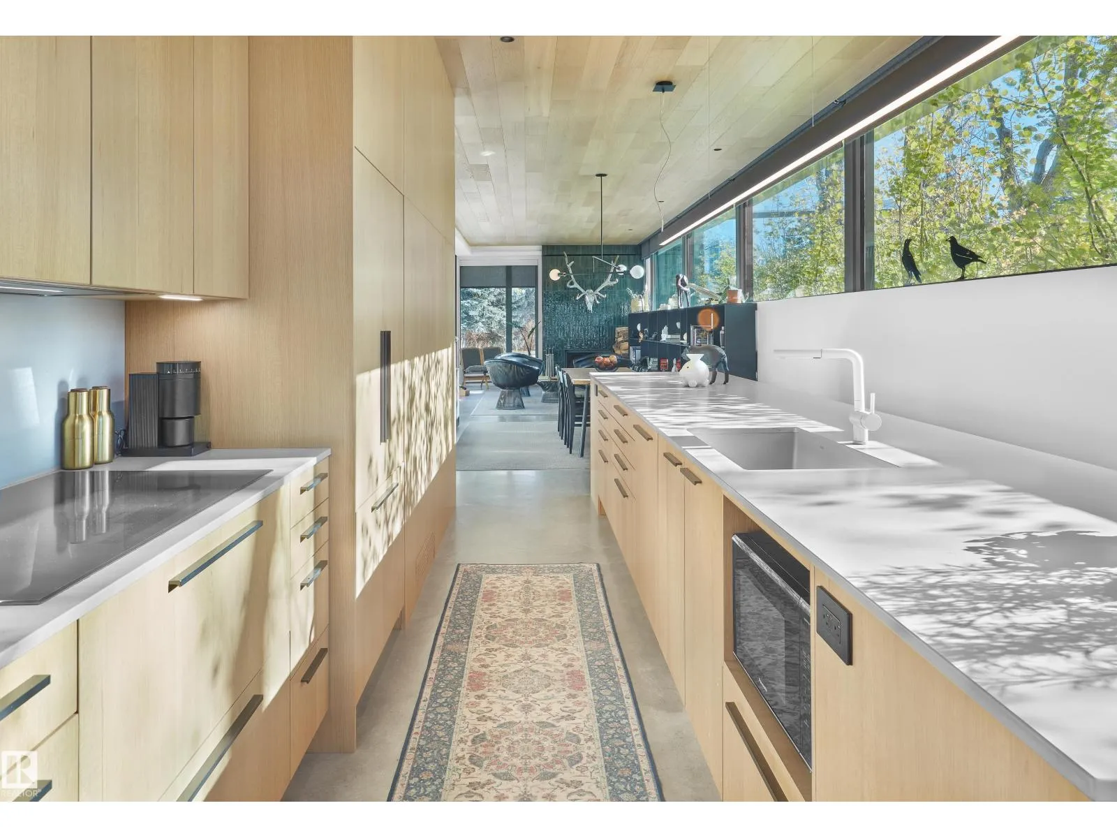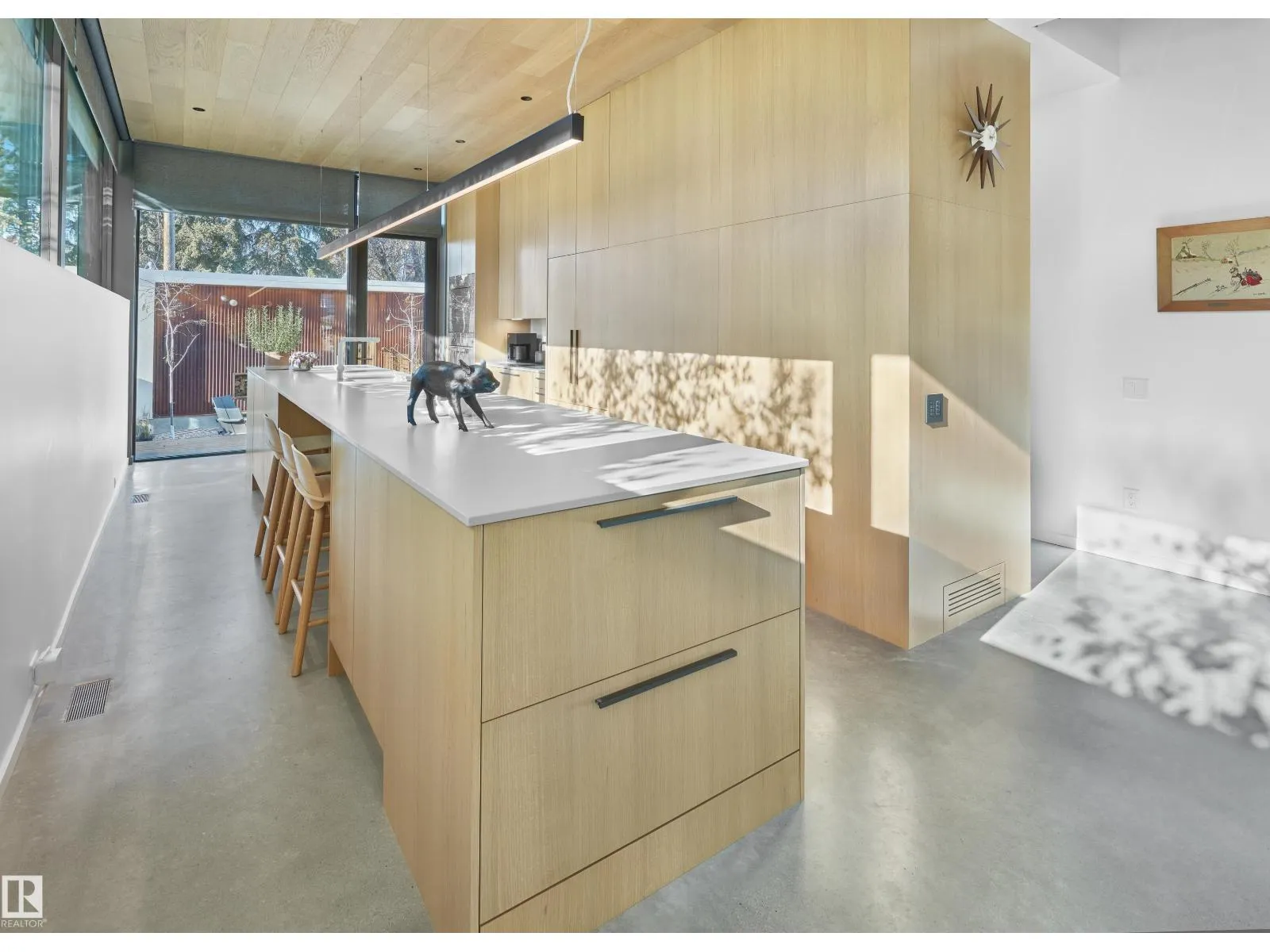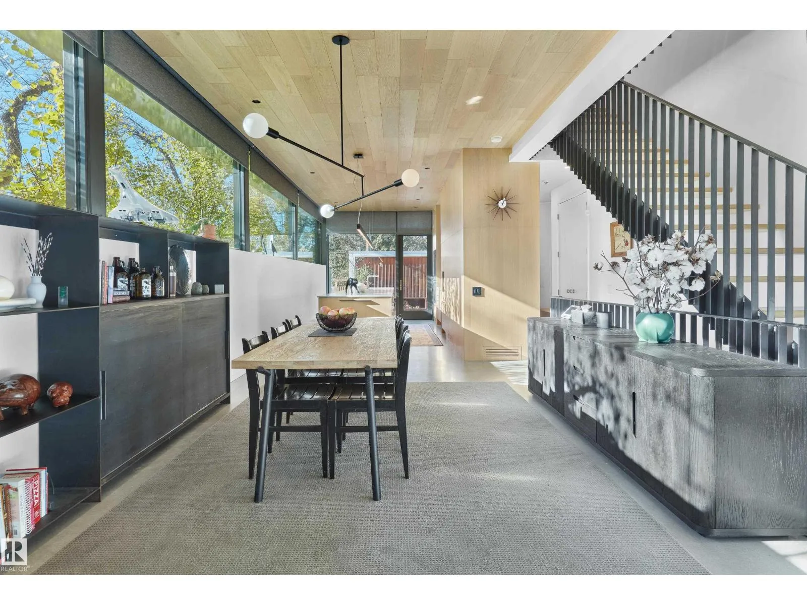 Designed by Edmonton City Architect Carol Belanger, this remarkable Old Glenora residence reinterprets the low-slung modernist home that once stood on the site. With over 2,800 sq. ft. of finished living space, it balances heritage and innovation with quiet confidence. The striking stone chimney, painstakingly rebuilt from salvaged materials, anchors the home in its history while defining a new architectural chapter. Inside, a luminous ribbon window traces the south façade, framing open horizons and intimate moments in equal measure. Wrapped in warm wood and textural stone, the upper level appears to float, a refined nod to a modern tree fort. Light shifts gently across each surface throughout the day, revealing new tones and textures. Every material, polished concrete, natural textural wood, cold-rolled steel, and verdant tile, contributes to an atmosphere of enduring craftsmanship and understated luxury. This is contemporary Edmonton living, rooted in legacy and elevated by design. (id:27476)