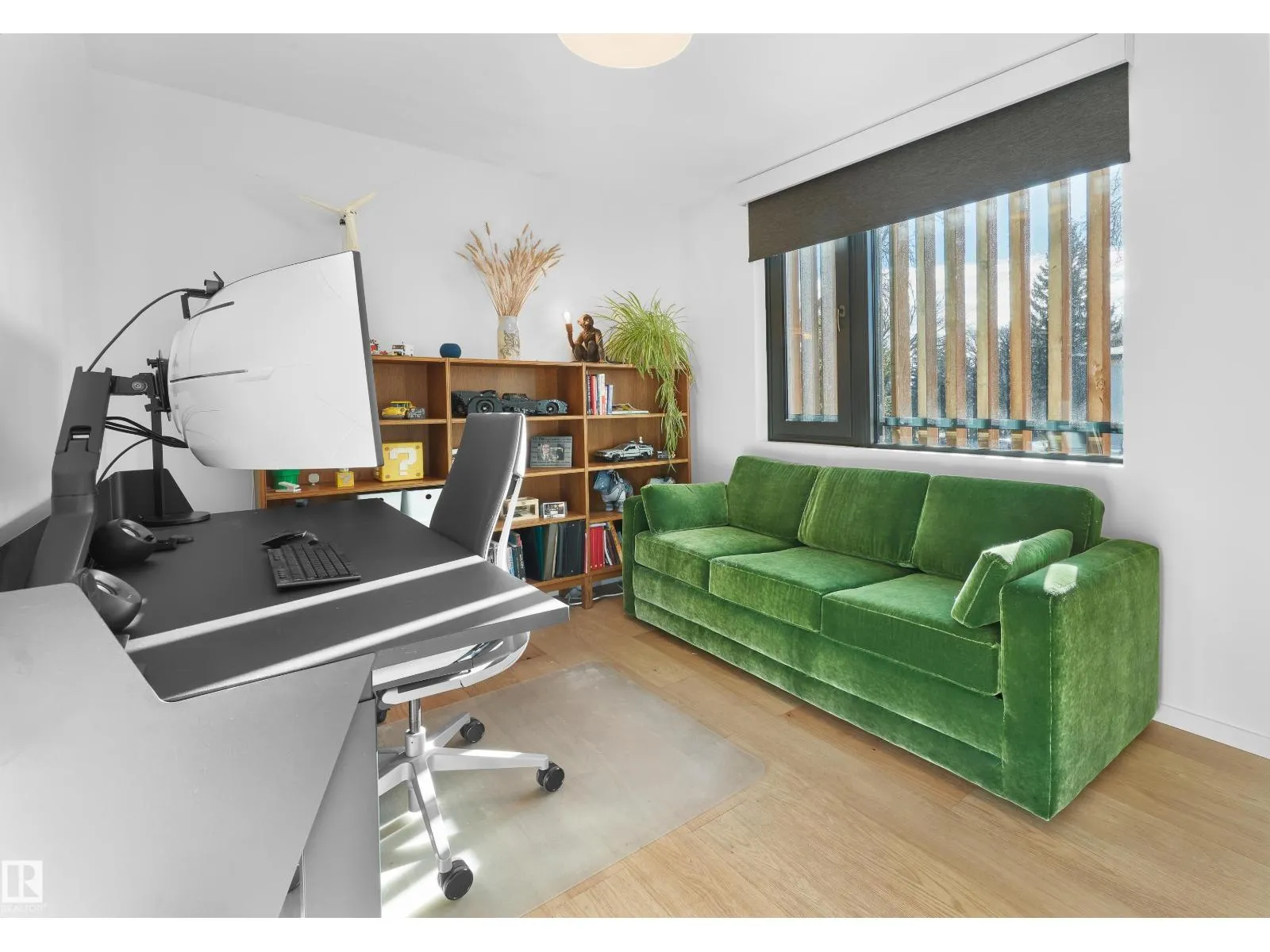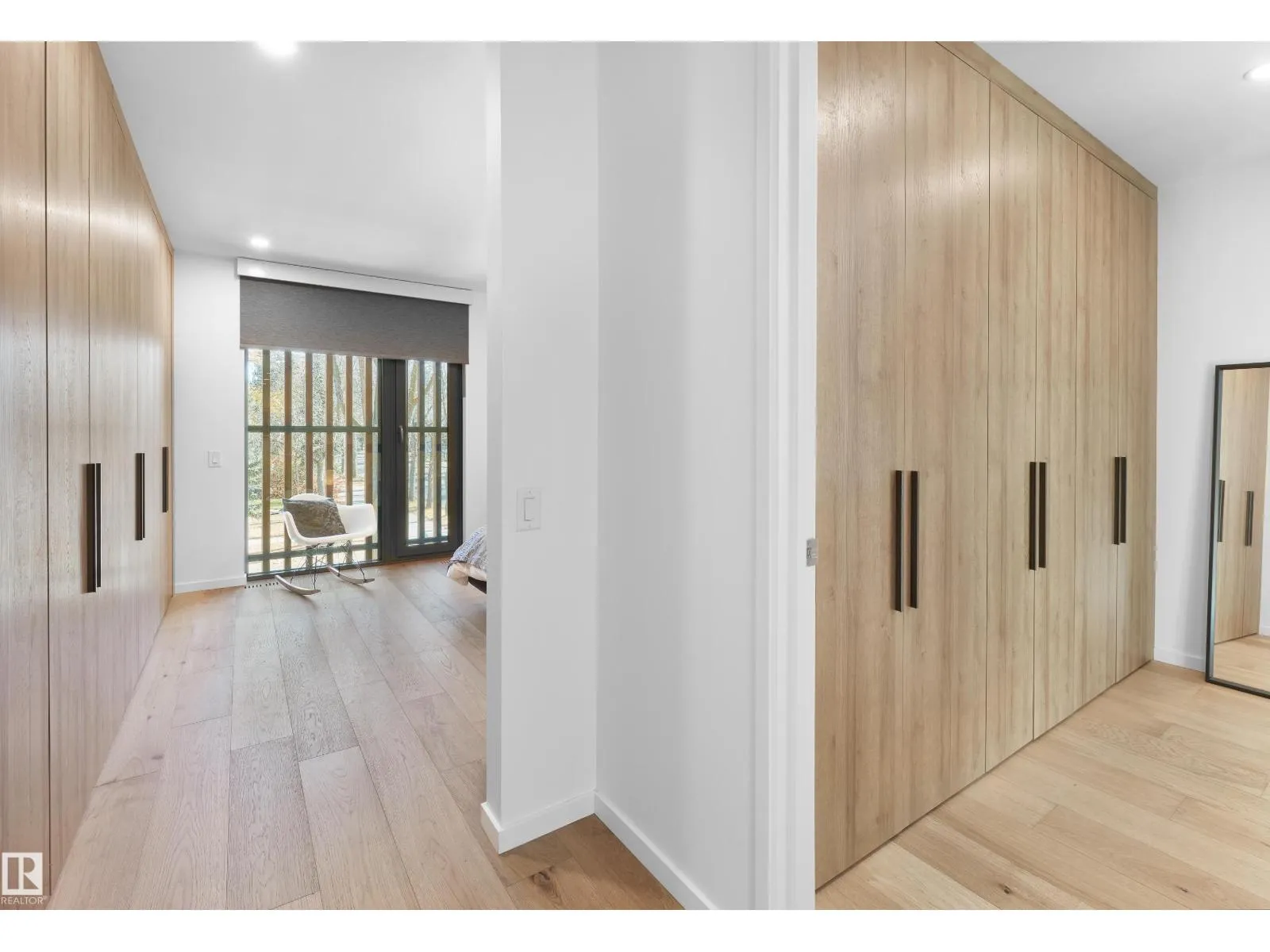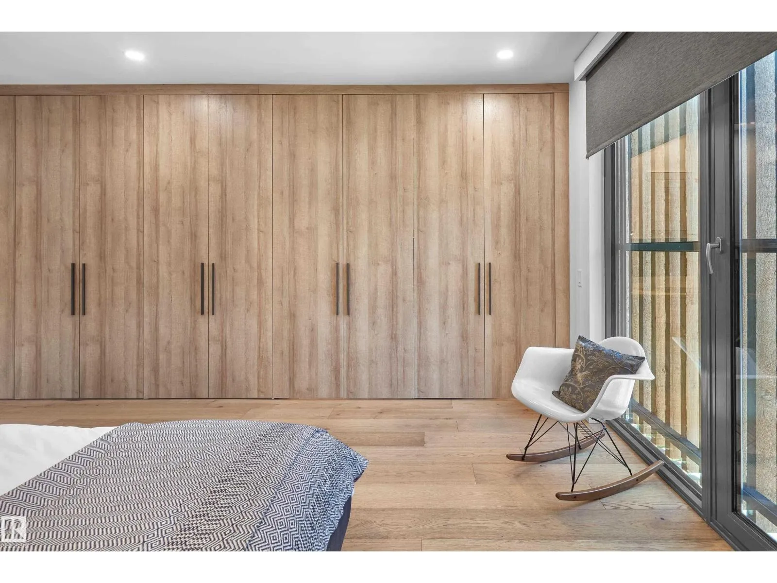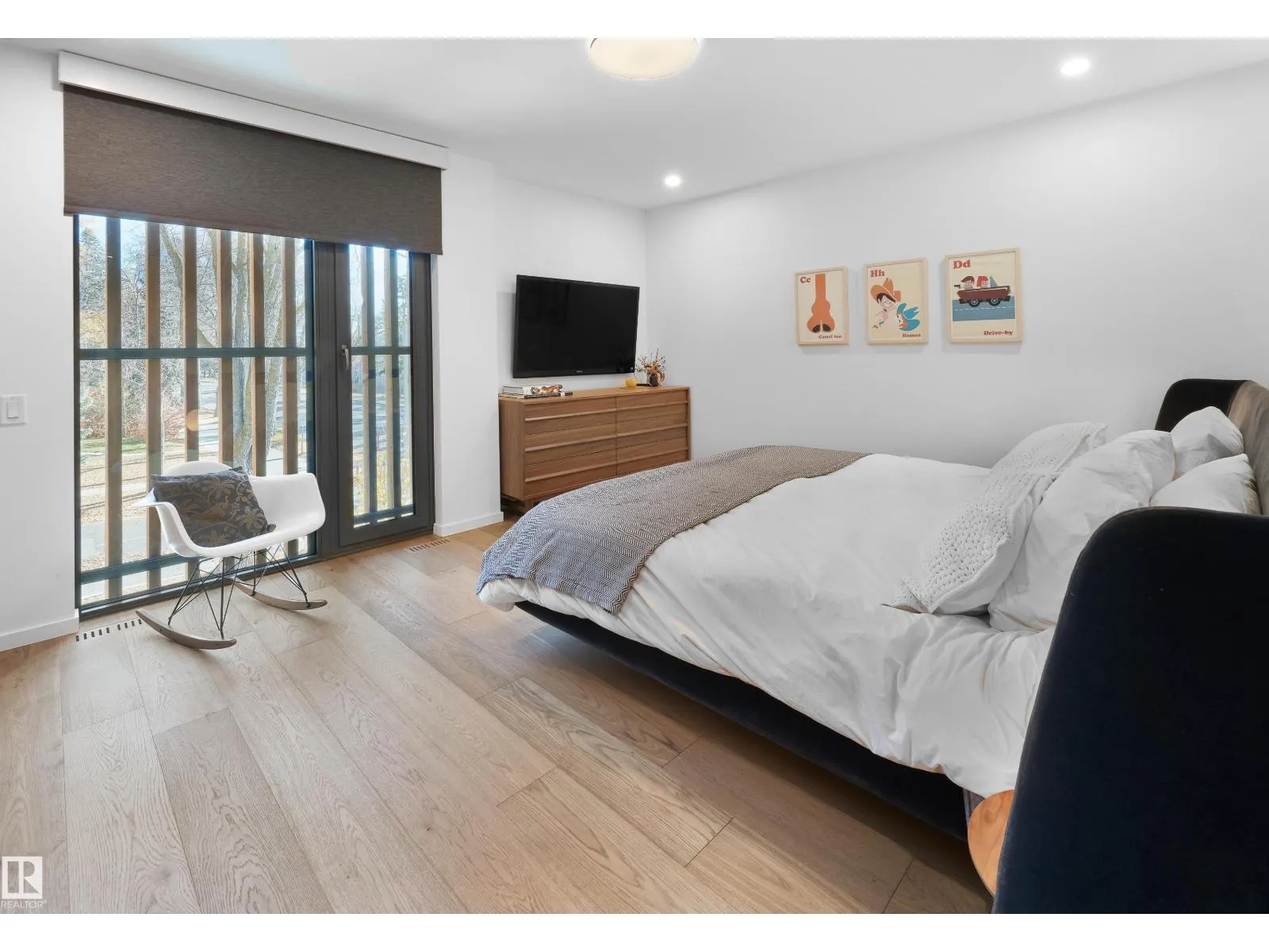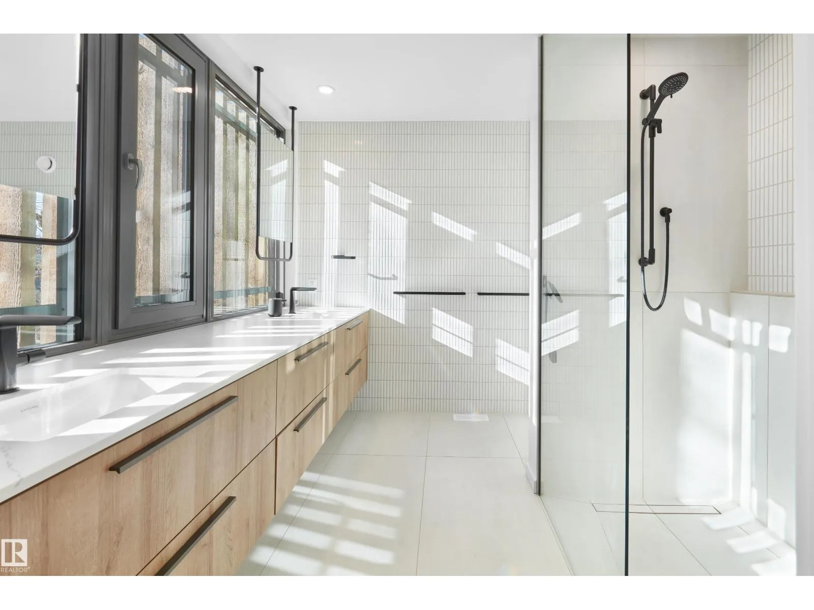 Designed by Edmonton City Architect Carol Belanger, this remarkable Old Glenora residence reinterprets the low-slung modernist home that once stood on the site. With over 2,800 sq. ft. of finished living space, it balances heritage and innovation with quiet confidence. The striking stone chimney, painstakingly rebuilt from salvaged materials, anchors the home in its history while defining a new architectural chapter. Inside, a luminous ribbon window traces the south façade, framing open horizons and intimate moments in equal measure. Wrapped in warm wood and textural stone, the upper level appears to float, a refined nod to a modern tree fort. Light shifts gently across each surface throughout the day, revealing new tones and textures. Every material, polished concrete, natural textural wood, cold-rolled steel, and verdant tile, contributes to an atmosphere of enduring craftsmanship and understated luxury. This is contemporary Edmonton living, rooted in legacy and elevated by design. (id:27476)