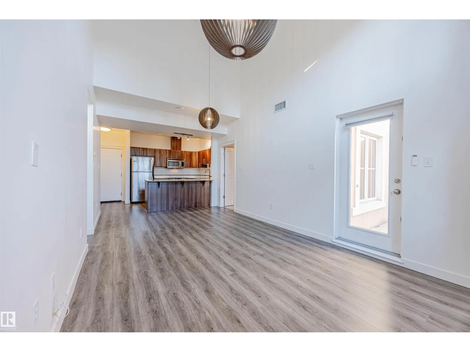 STUNNING TOP FLOOR 2 BDRM CONDO WITH SOARING 16' CEILING ALONG WITH TITLED UNDERGROUND PARKING. the main floor and modern WIDE PLANK vinyl flooring in the main living area. The u-shaped kitchen has subway back splash tile, GRANITE counter tops and STAINLESS appliances. The living room offers nice space and teh extra windows allows for the space to bathed in light and show off the gorgeous hanging light fixtures. Enjoy morning coffee from your balcony; with a natural gas hook-up, summer bbqâs will be epic. 2 bedrooms separated by the living space give privacy for a roommate, guest or home office, enjoy a full 4pc bath for the main area. Relax in the master bedroom with a view of the balcony and east downtown; the ensuite has CORIAN counters and a double wide shower. SITUATED STEPS FROM THE ICE DISTRICT THIS CONDO IS SURE TO IMPRESS! IMMEDIATE POSSESSION AVAILABLE! (id:27476)