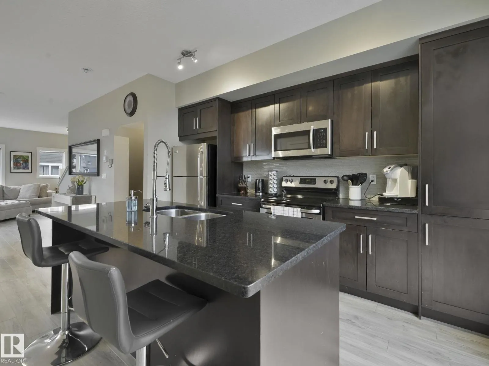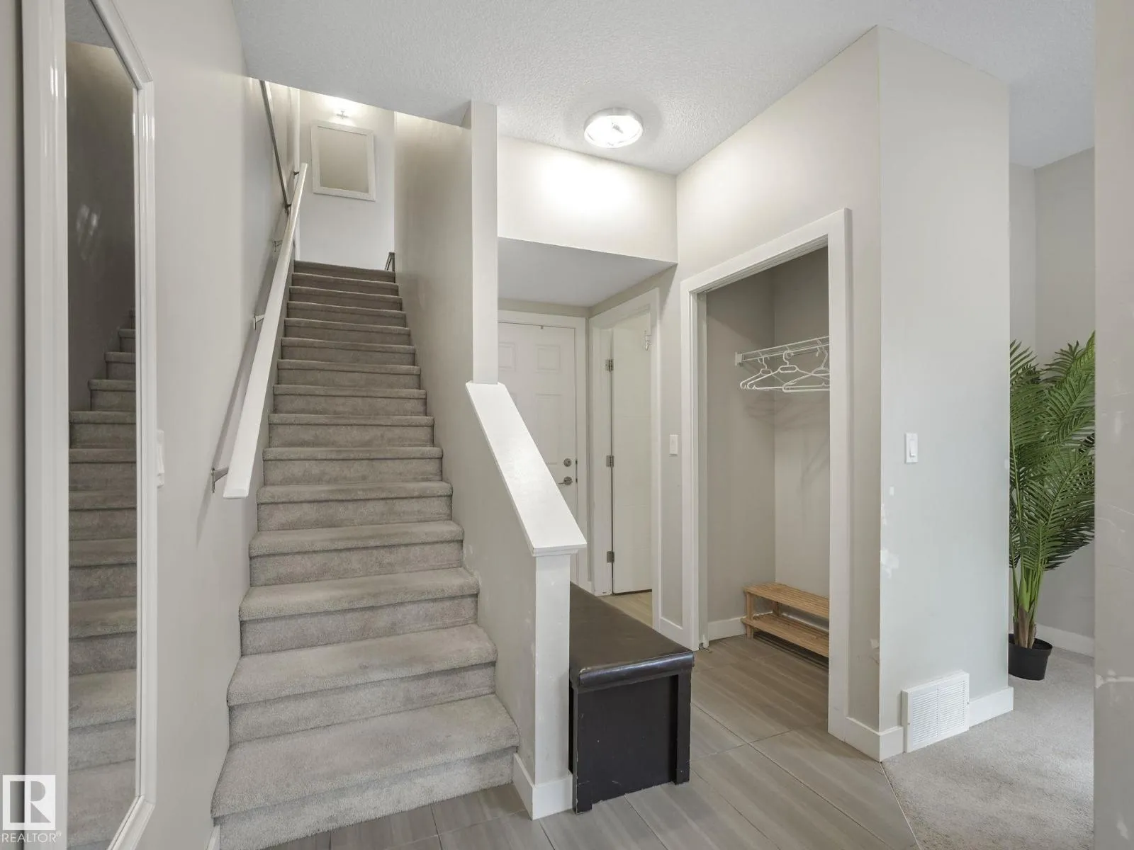 Welcome to this spacious and modern 3-story END UNIT townhome in the centre of Griesbach with AC! Stepping inside, everything you are looking for in your next home is here. On the lower level is a den, a 2-piece bathroom, storage, and access to your OVERSIZED SINGLE ATTACHED GARAGE! Upstairs is the main living area, greeted with the kitchen with quartz countertops, S/S appliances, and the centre island as the focal point. From the kitchen is direct access to your private BALCONY! Situated is the dining room & living room with massive windows bringing in tons of natural light. Upstairs are 2 well-sized bedrooms. The primary bedroom offers direct access to the 4-piece ensuite and HIS & HERS closets. On the other side of the home is the second bedroom separated by the shared 4 pc bathroom and a second flex/den space on the upper floor! Located 15 mins from downtown, nearby schools, walking trails, and shopping along 97 ST & Northgate Centre. Professionally managed complex with LOW CONDO FEES of $318/mo. (id:27476)