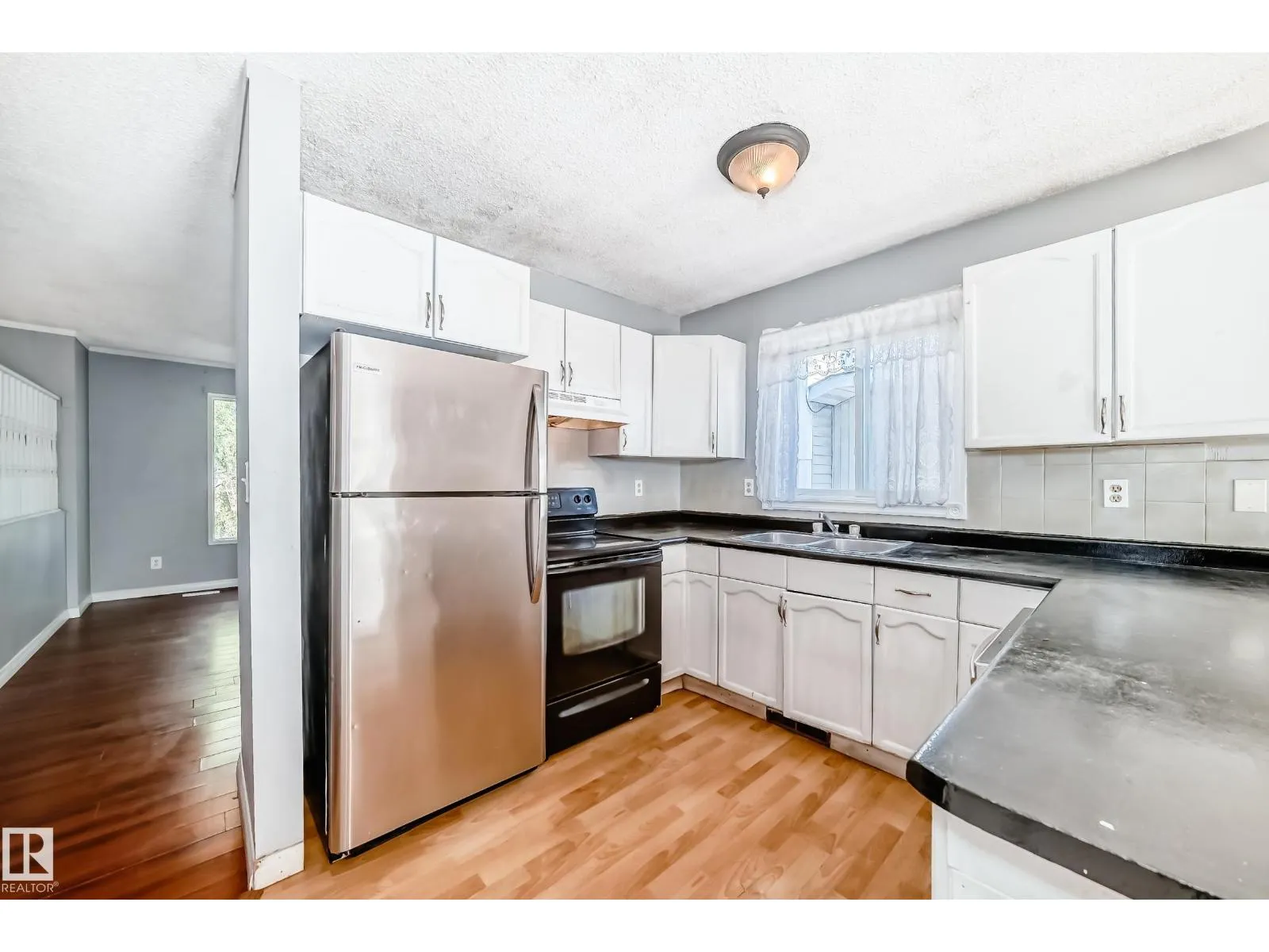 Castledowns 1,006 sq ft 3 bedroom, 3 bathroom bilevel located on a large reverse pie shaped lot on a quiet street in the northwest neighborhood of Dunluce. The home was built in 1985 and has some newer windows, a very open floor plan with a large livingroom on the main floor and a very spacious kitchen with laminate flooring throughout. The primary bedroom has a 2 piece ensuite and the main bathroom is a 4 piece . The basement of the home has large windows and is another 900 sq feet partially finished and ready for completion, flooring etc. This home is located in a nice community with lots of schools close by, parks, shopping, and transit. The front of the property has a concrete driveway to the corner of the house and there has plenty of room for a double garage. This home is a great starter home or a perfect investment property. The lot is 54 feet wide frontage for lots of parking. (id:27476)