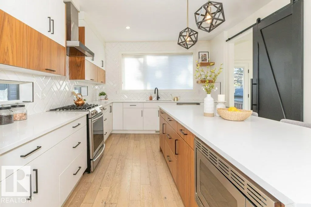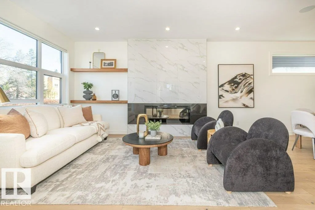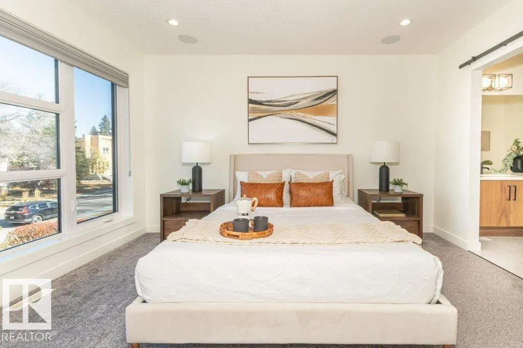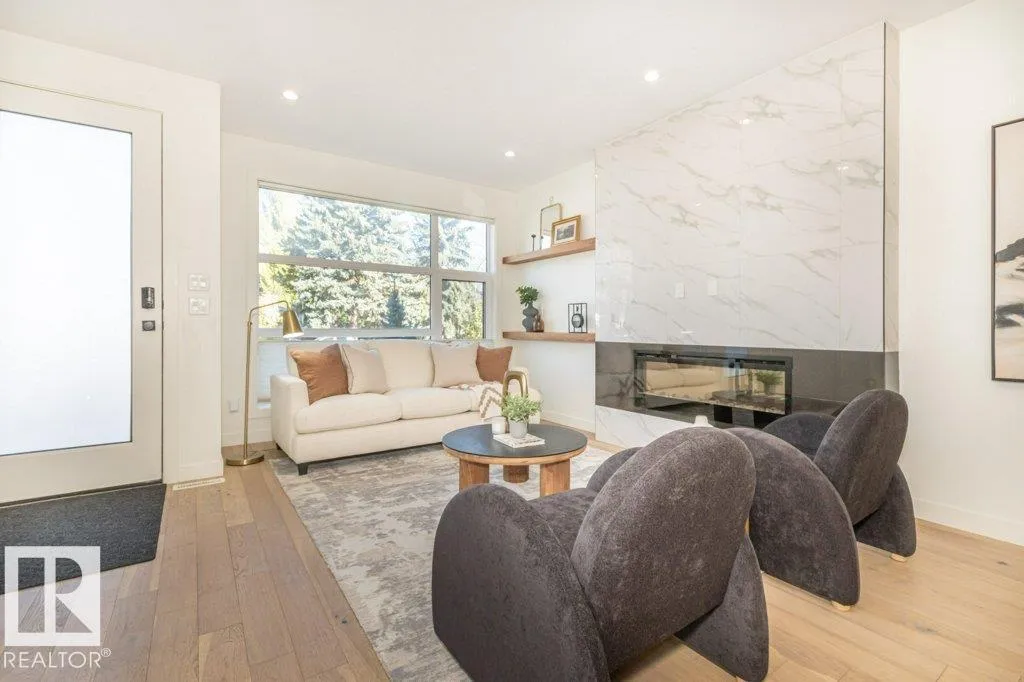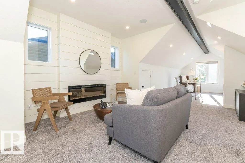 Better than new - landscaped, A/C, deck, window coverings... JUST MOVE IN! This meticulously maintained property with 1 bedroom BASEMENT SUITE is nestled into the one of the best neighborhoods in Edmonton. 1 block from Belgravia School, community league, parks, walking distance to the U of A, LRT and the River Valley! Features 4 finished levels, 4 bedrooms, 5 baths and an exceptional layout. The main floor is bright well appointed with 9' ceilings, fireplace and wood flooring. You'll love your chef's kitchen which is anchored by a massive island hosting seating for 4, gas range, tones of cabinets and a large pantry. Your primary bedroom can accommodate a king sized bed and has a large walk in closet with built ins and a luxurious ensuite with his and her sinks. The 2nd floor has 2 more large bedrooms, full bath and laundry. Upstairs your private oasis is beckoning - featuring private covered roof top patio with views of downtown, huge loft with wet bar and bathroom! (id:27476)